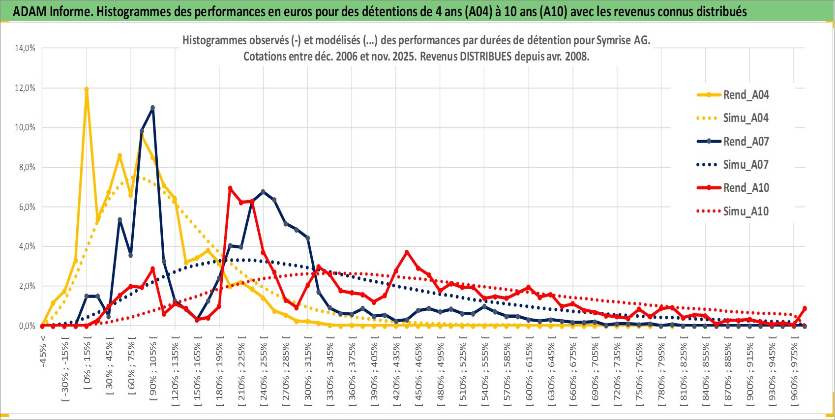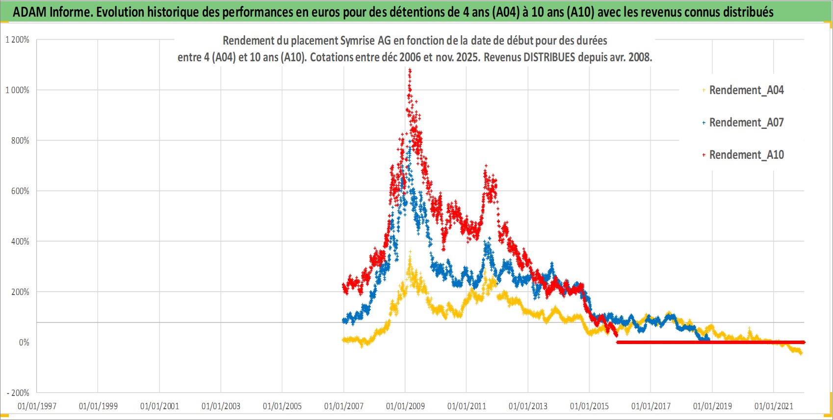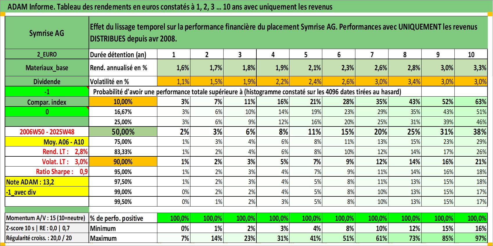 Site dédié aux investisseursPage dédiée sur site financeAnalyse des valorisations hebdomadaires de l'action Symrise AG. Cet actif est cote en EUR. Les valorisations couvrent les semaines 2006W50 a 2025W48. Les revenus de cet actif financier sont pris en compte depuis la semaine 2008W18. La note globale ESG de cet actif est estimee a 10.0 (apres rebasage entre 0 et 20).