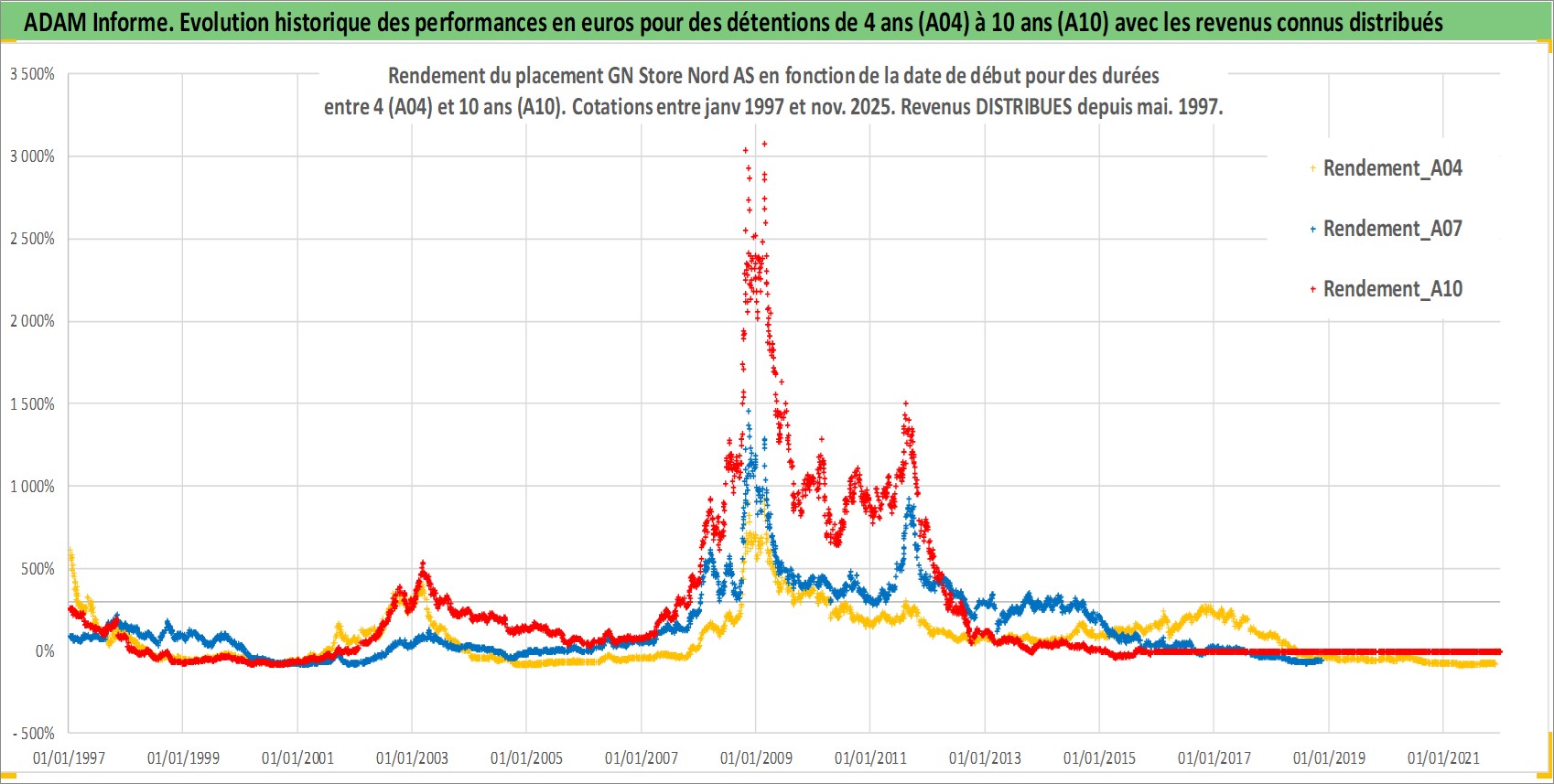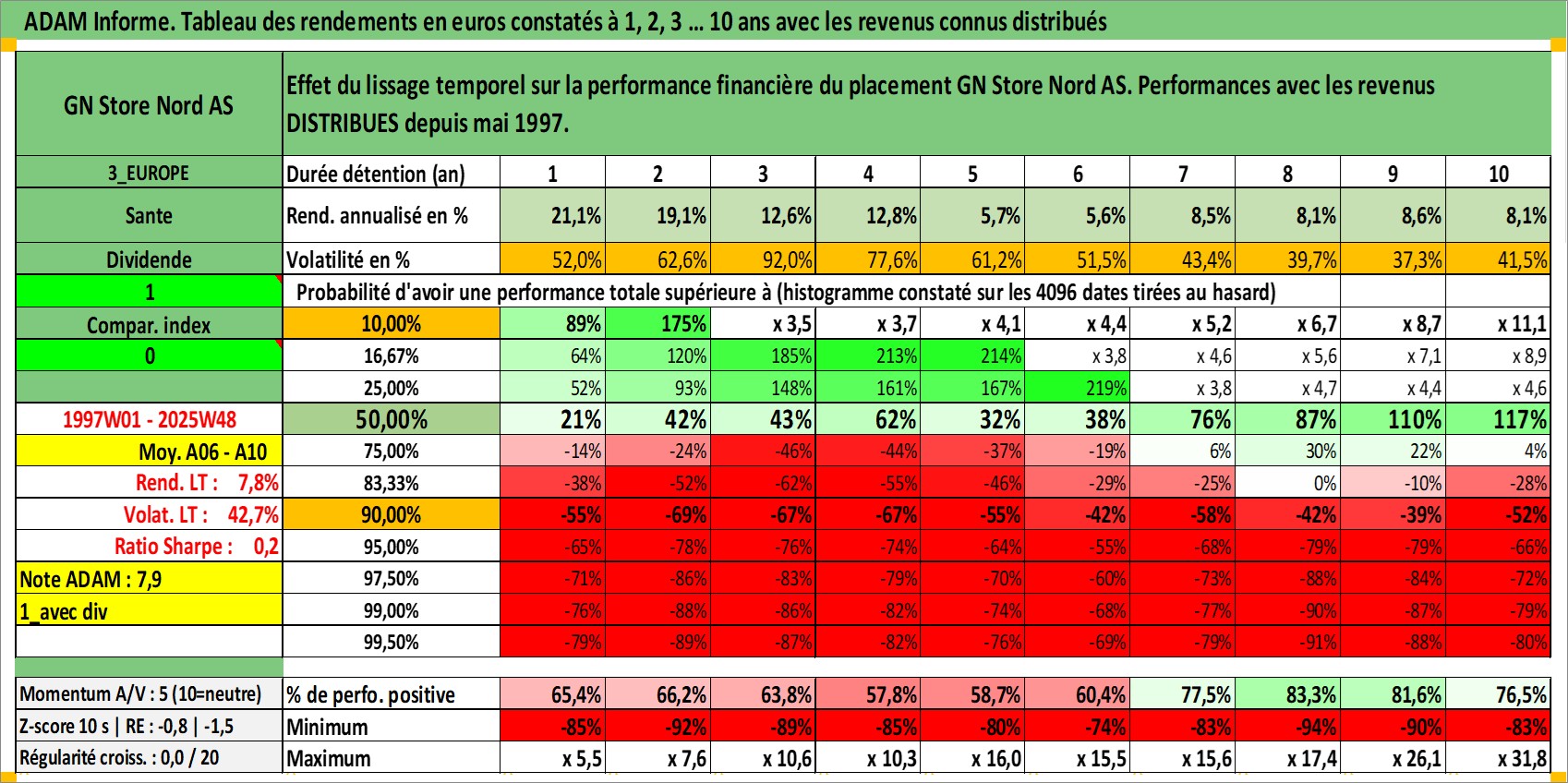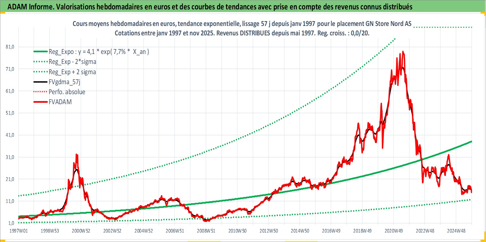 Site dédié aux investisseursPage dédiée sur site financeAnalyse des valorisations hebdomadaires de l'action GN Store Nord AS. Cet actif est cote en DKK. Les valorisations sont en contrevaleur EURO et couvrent les semaines 1997W01 a 2025W48. Les revenus de cet actif financier sont pris en compte depuis la semaine 1997W19. La note ESG de cet actif n'est pas connue.