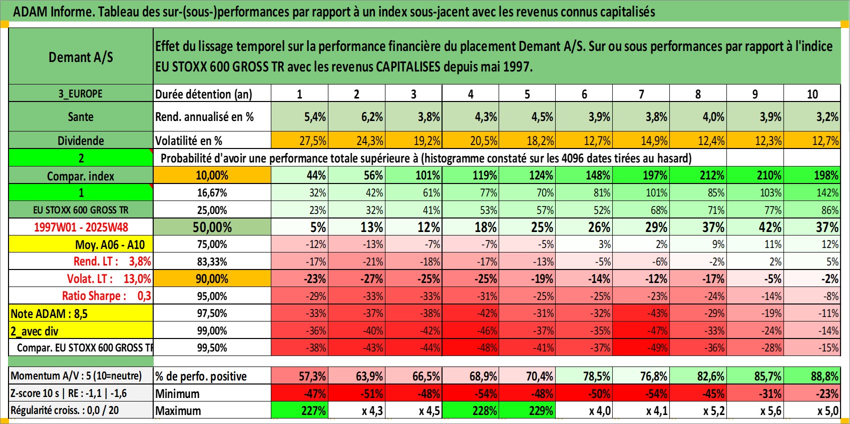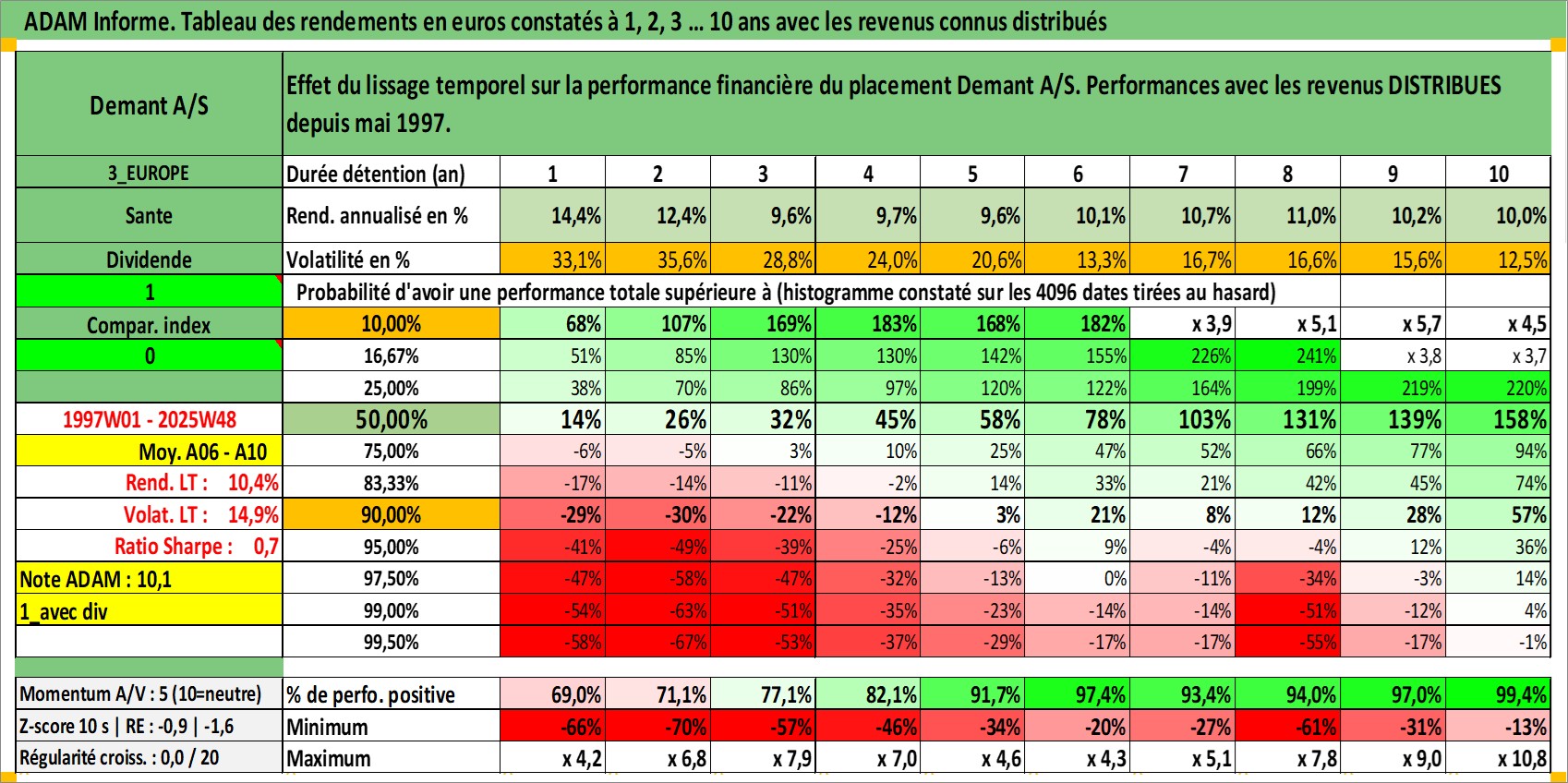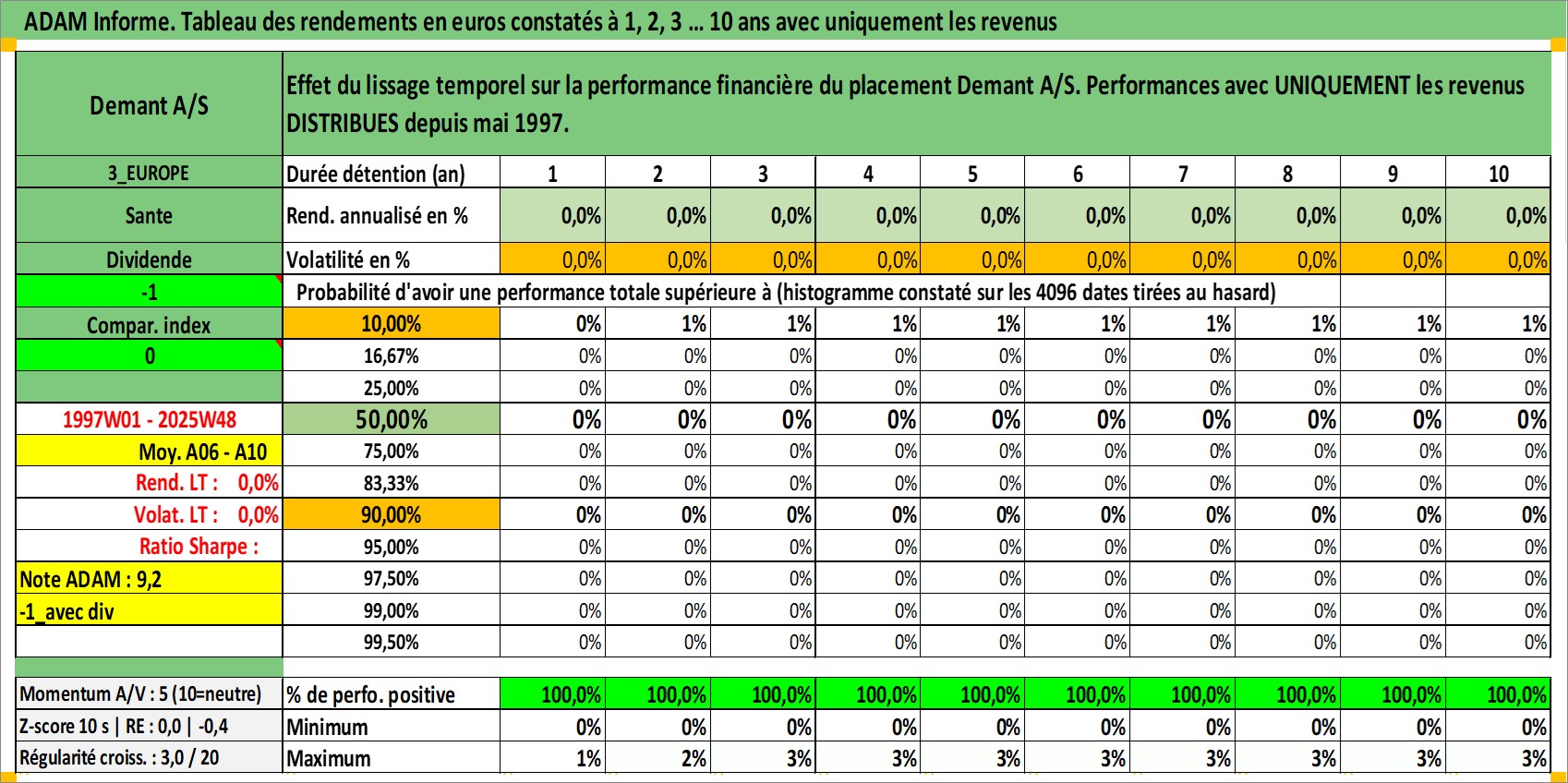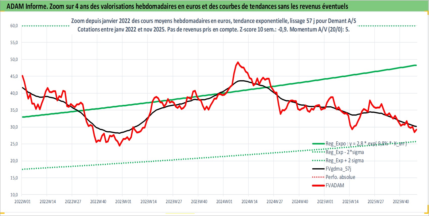 Site dédié aux investisseursPage dédiée sur site financeAnalyse des valorisations hebdomadaires de l'action Demant A/S. Cet actif est cote en DKK. Les valorisations sont en contrevaleur EURO et couvrent les semaines 1997W01 a 2025W48. Les revenus de cet actif financier sont pris en compte depuis la semaine 1997W20. La note ESG de cet actif n'est pas connue.