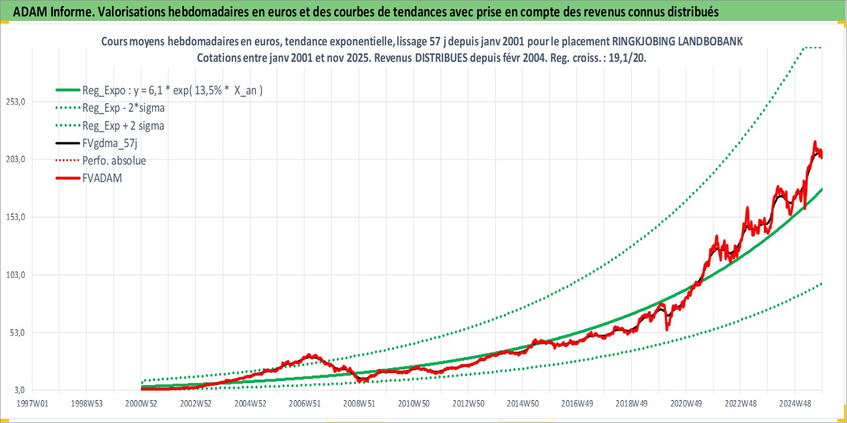 Site dédié aux investisseursPage dédiée sur site financeAnalyse des valorisations hebdomadaires de l'action RINGKJOBING LANDBOBANK. Cet actif est cote en DKK. Les valorisations sont en contrevaleur EURO et couvrent les semaines 2001W02 a 2025W48. Les revenus de cet actif financier sont pris en compte depuis la semaine 2004W09. La note ESG de cet actif n'est pas connue.