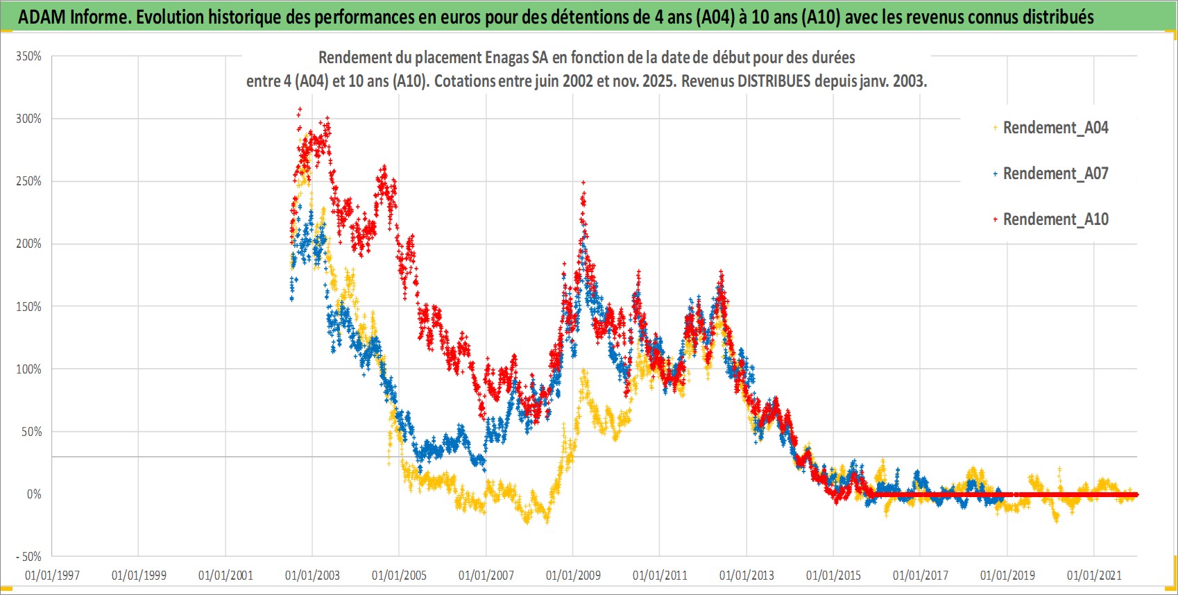 Site dédié aux investisseursPage dédiée sur site financeAnalyse des valorisations hebdomadaires de l'action Enagas SA. Cet actif est cote en EUR. Les valorisations couvrent les semaines 2002W26 a 2025W48. Les revenus de cet actif financier sont pris en compte depuis la semaine 2003W03. La note globale ESG de cet actif est estimee a 13.0 (apres rebasage entre 0 et 20).