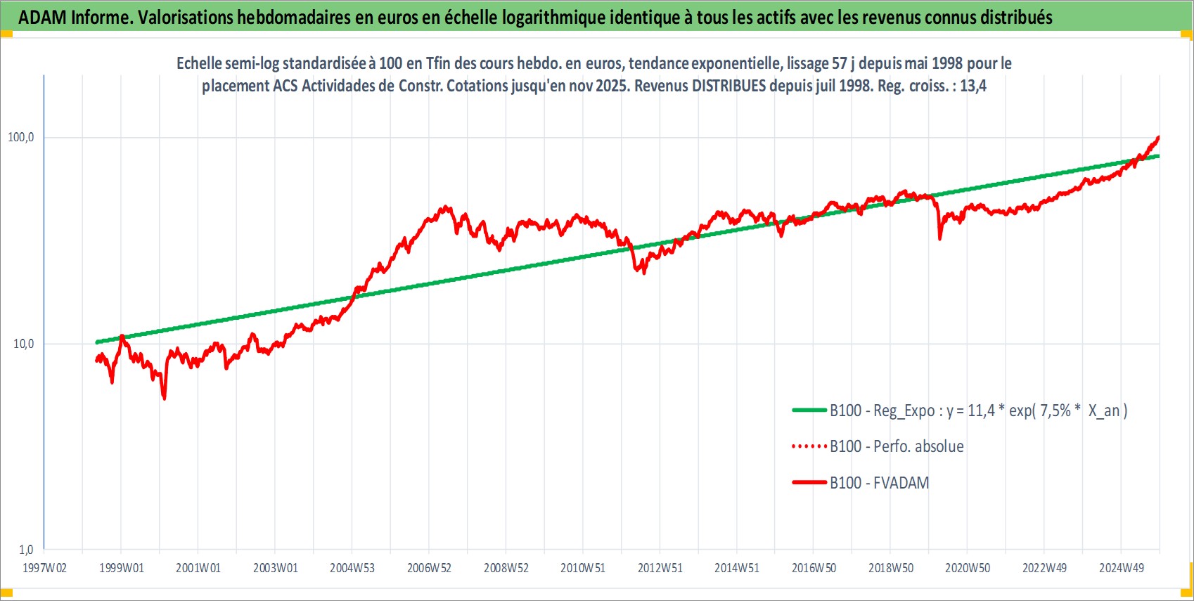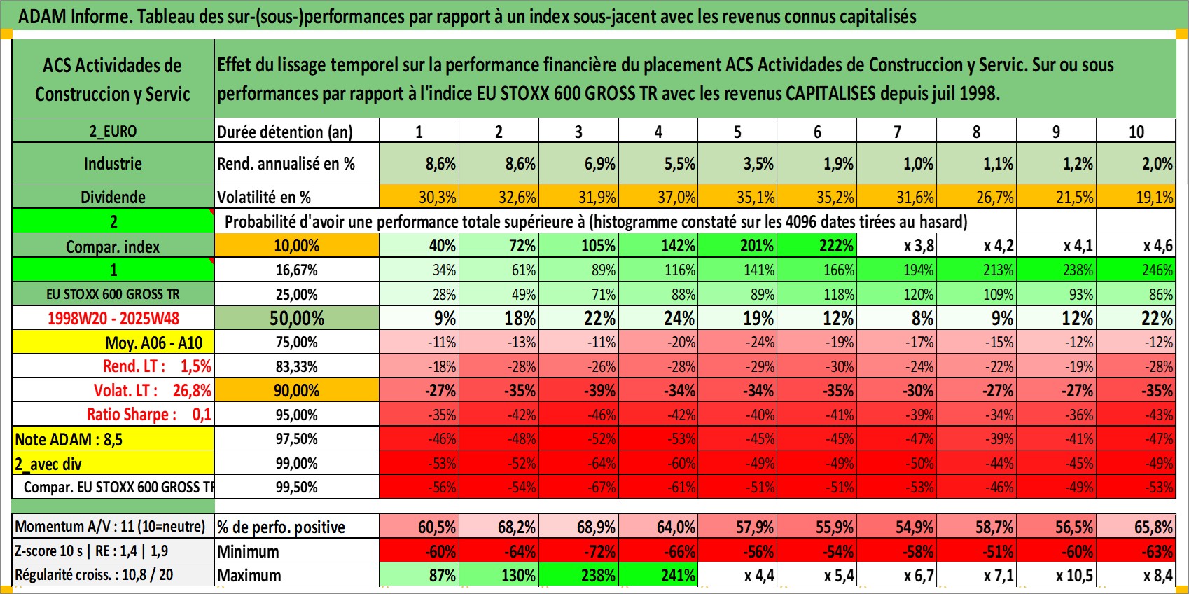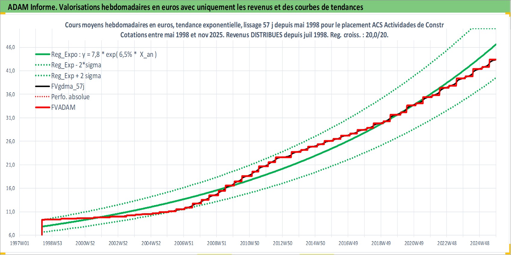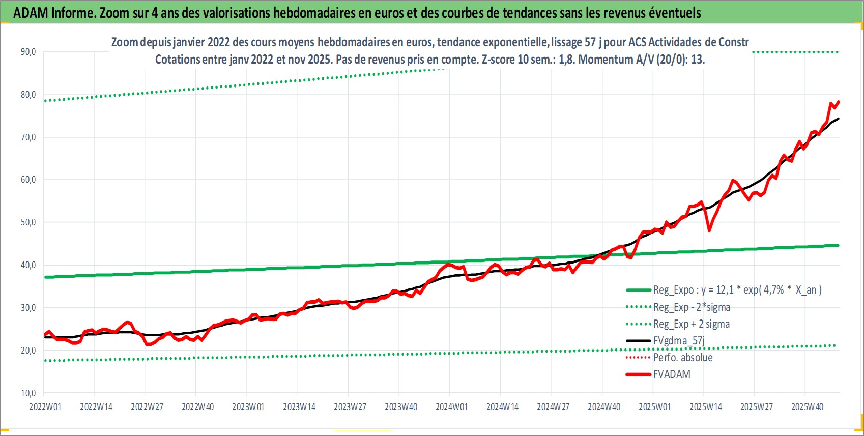 Site dédié aux investisseursPage dédiée sur site financeAnalyse des valorisations hebdomadaires de l'action ACS Actividades de Construccion y Servic. Cet actif est cote en EUR. Les valorisations couvrent les semaines 1998W20 a 2025W48. Les revenus de cet actif financier sont pris en compte depuis la semaine 1998W29. La note globale ESG de cet actif est estimee a 5.0 (apres rebasage entre 0 et 20).