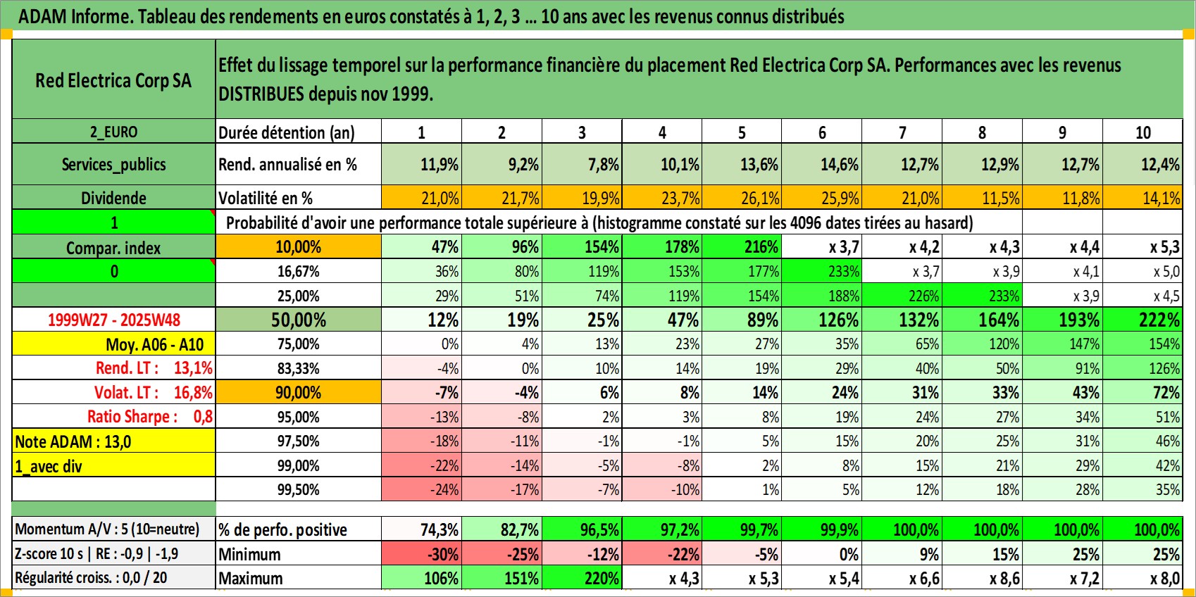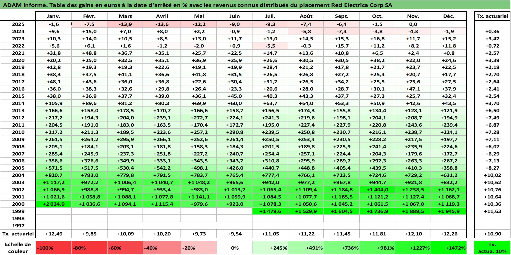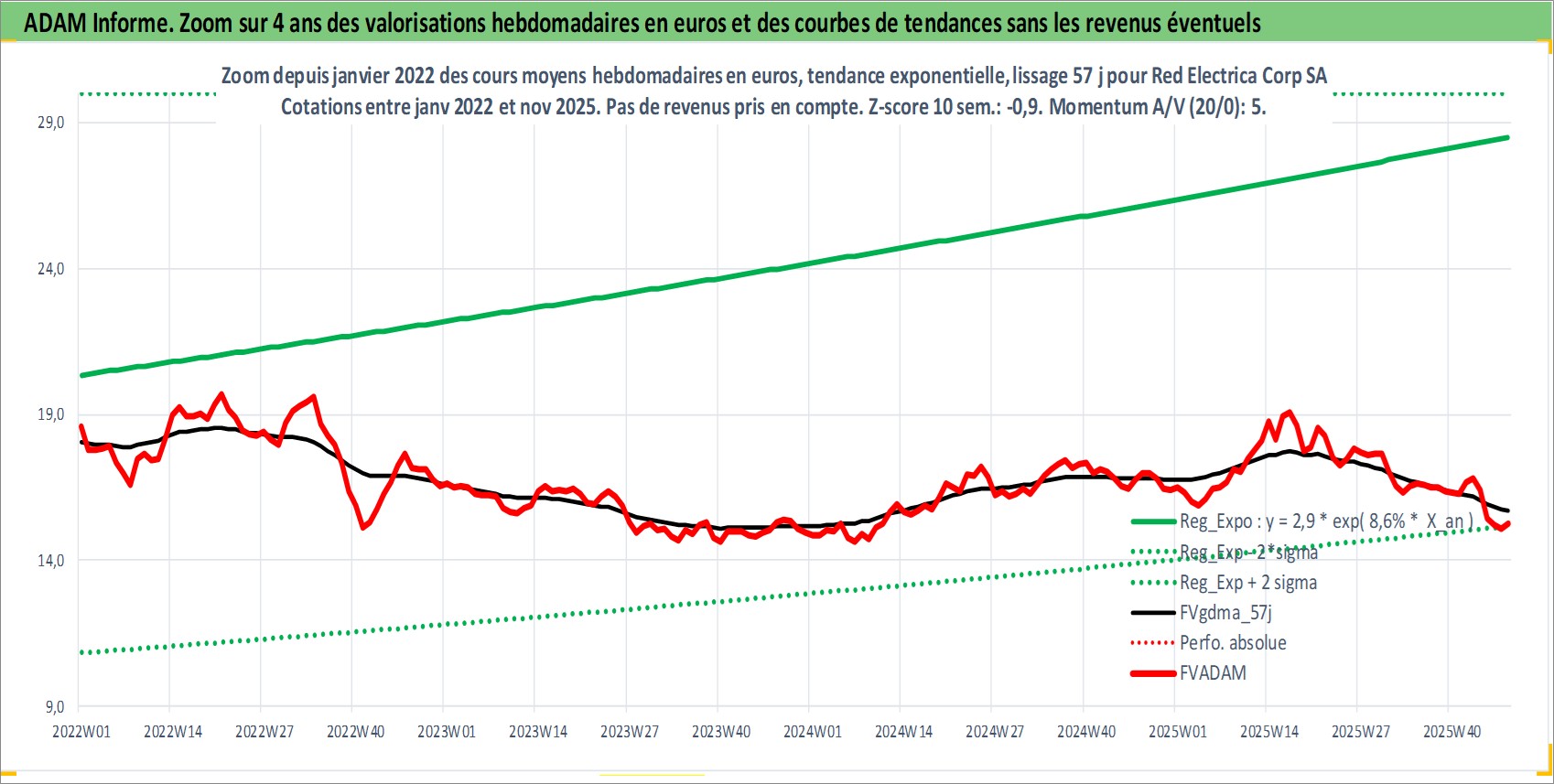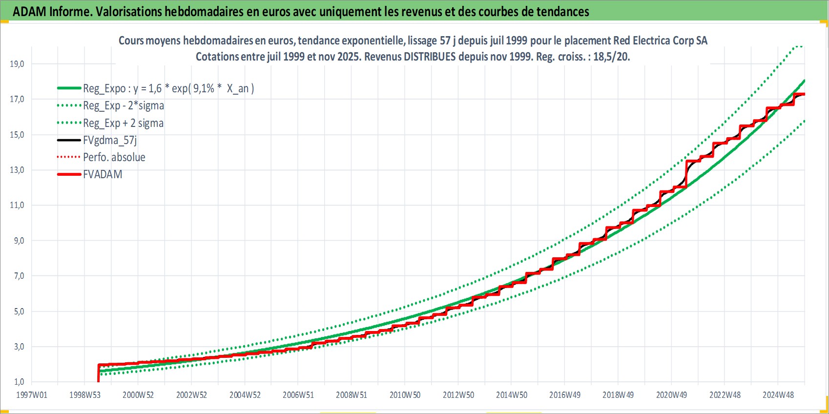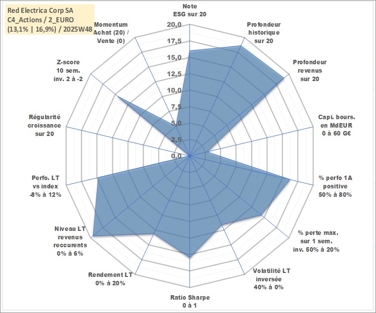 Site dédié aux investisseursPage dédiée sur site financeAnalyse des valorisations hebdomadaires de l'action Red Electrica Corp SA. Cet actif est cote en EUR. Les valorisations couvrent les semaines 1999W27 a 2025W48. Les revenus de cet actif financier sont pris en compte depuis la semaine 1999W47. La note globale ESG de cet actif est estimee a 16.0 (apres rebasage entre 0 et 20).