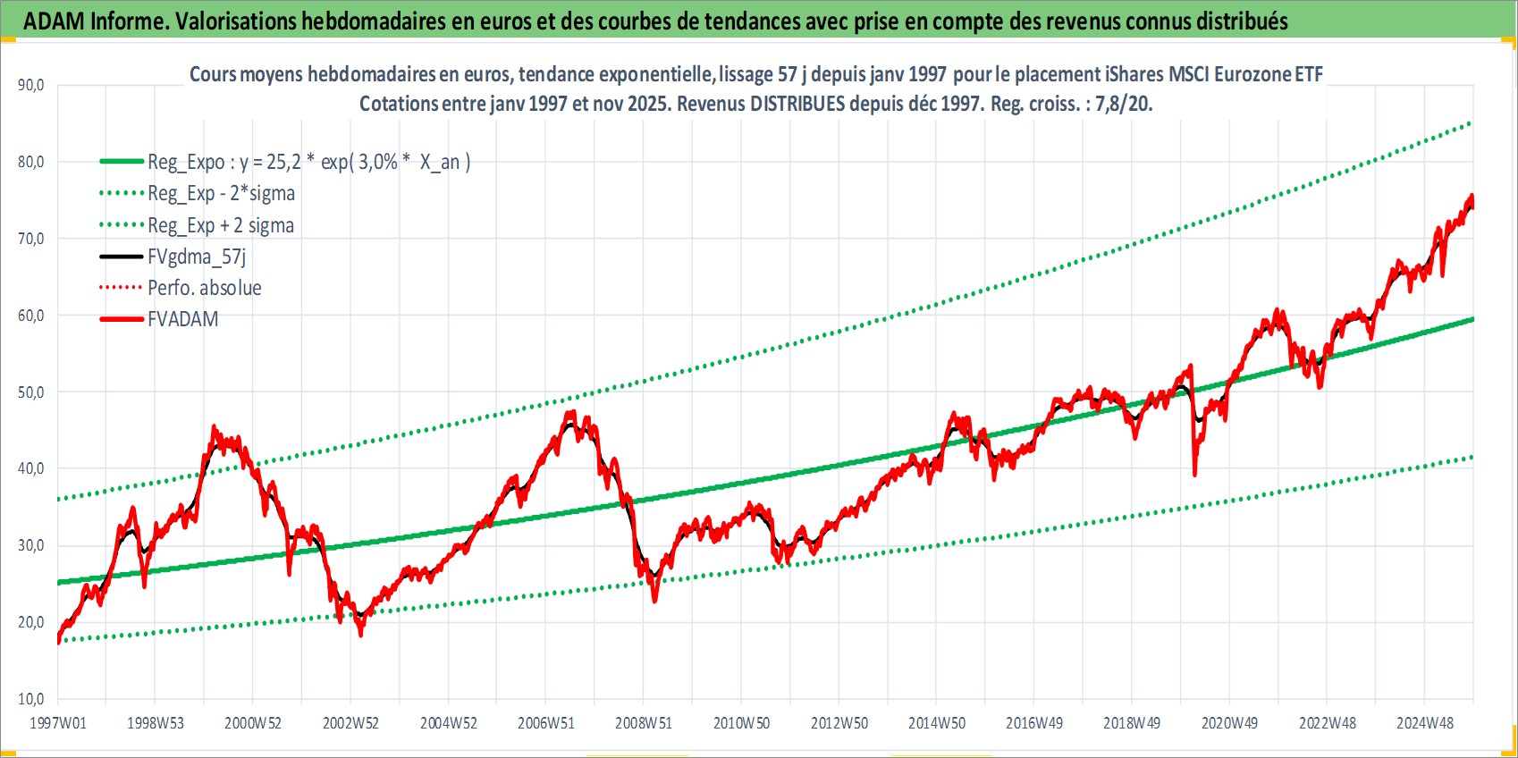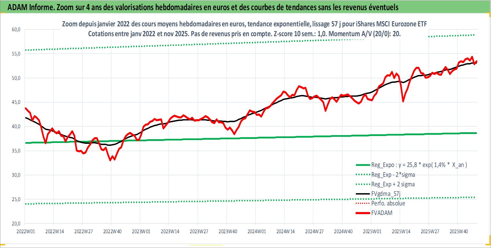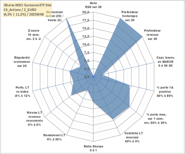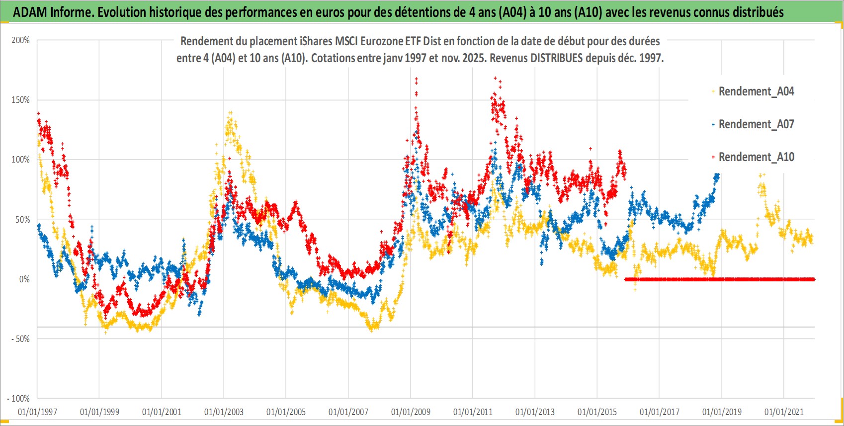 Site dédié aux investisseursPage dédiée sur site financeAnalyse des valorisations hebdomadaires du fonds iShares MSCI Eurozone ETF Dist. Cet actif est cote en USD. Les valorisations sont en contrevaleur EURO et couvrent les semaines 1997W01 a 2025W48. Les revenus de cet actif financier sont pris en compte depuis la semaine 1997W51. La note ESG de cet actif n'est pas connue.