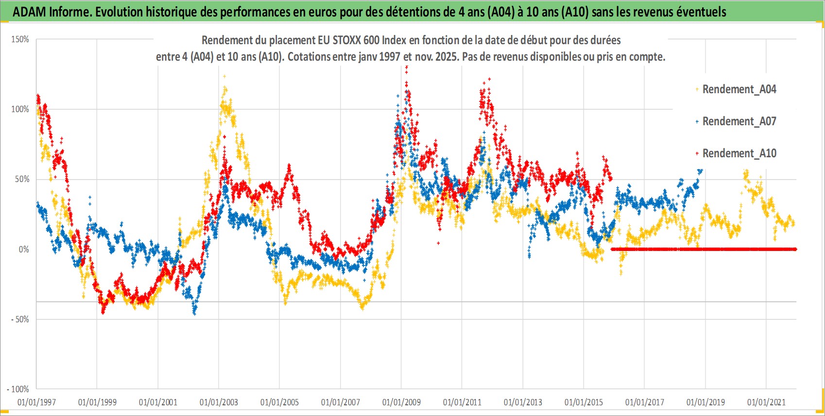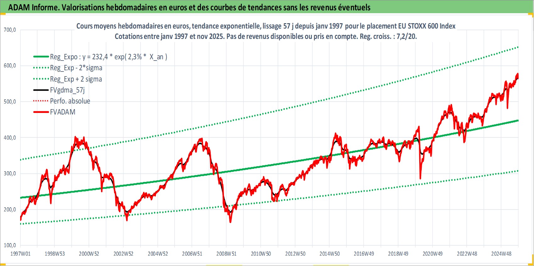 Site dédié aux investisseursPage dédiée sur site financeAnalyse des valorisations hebdomadaires de l'actif EU STOXX 600 Index. Cet actif est cote en EUR. Les valorisations couvrent les semaines 1997W01 a 2025W48. Les revenus de cet actif financier ne sont pas connus car non existants ou non disponibles sur le site Yahoo Finance. La note ESG de cet actif n'est pas connue.