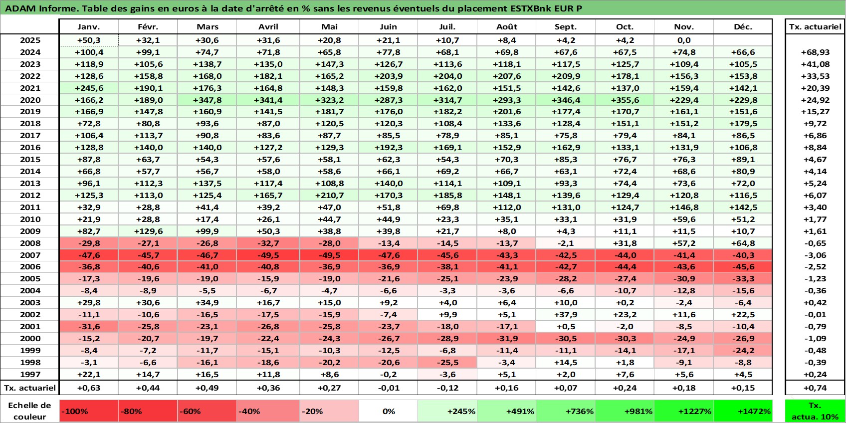 Site dédié aux investisseursPage dédiée sur site financeAnalyse des valorisations hebdomadaires de l'actif ESTXBnk EUR P. Cet actif est cote en EUR. Les valorisations couvrent les semaines 1997W01 a 2025W48. Les revenus de cet actif financier ne sont pas connus car non existants ou non disponibles sur le site Yahoo Finance. La note ESG de cet actif n'est pas connue.