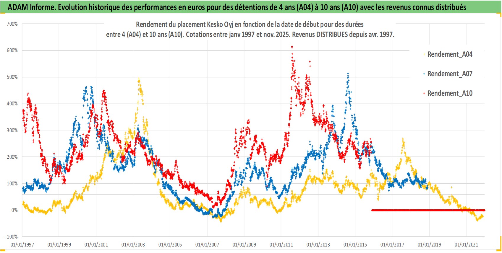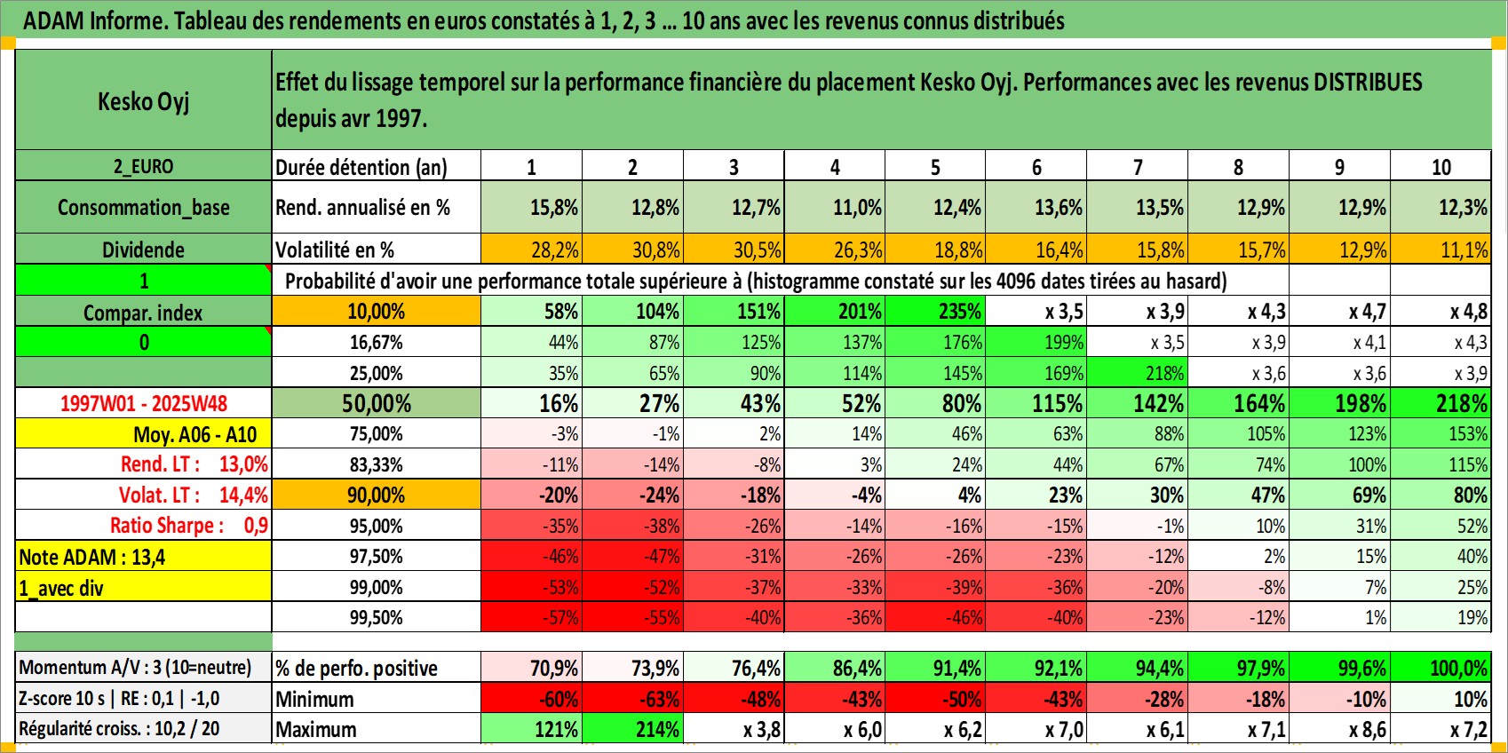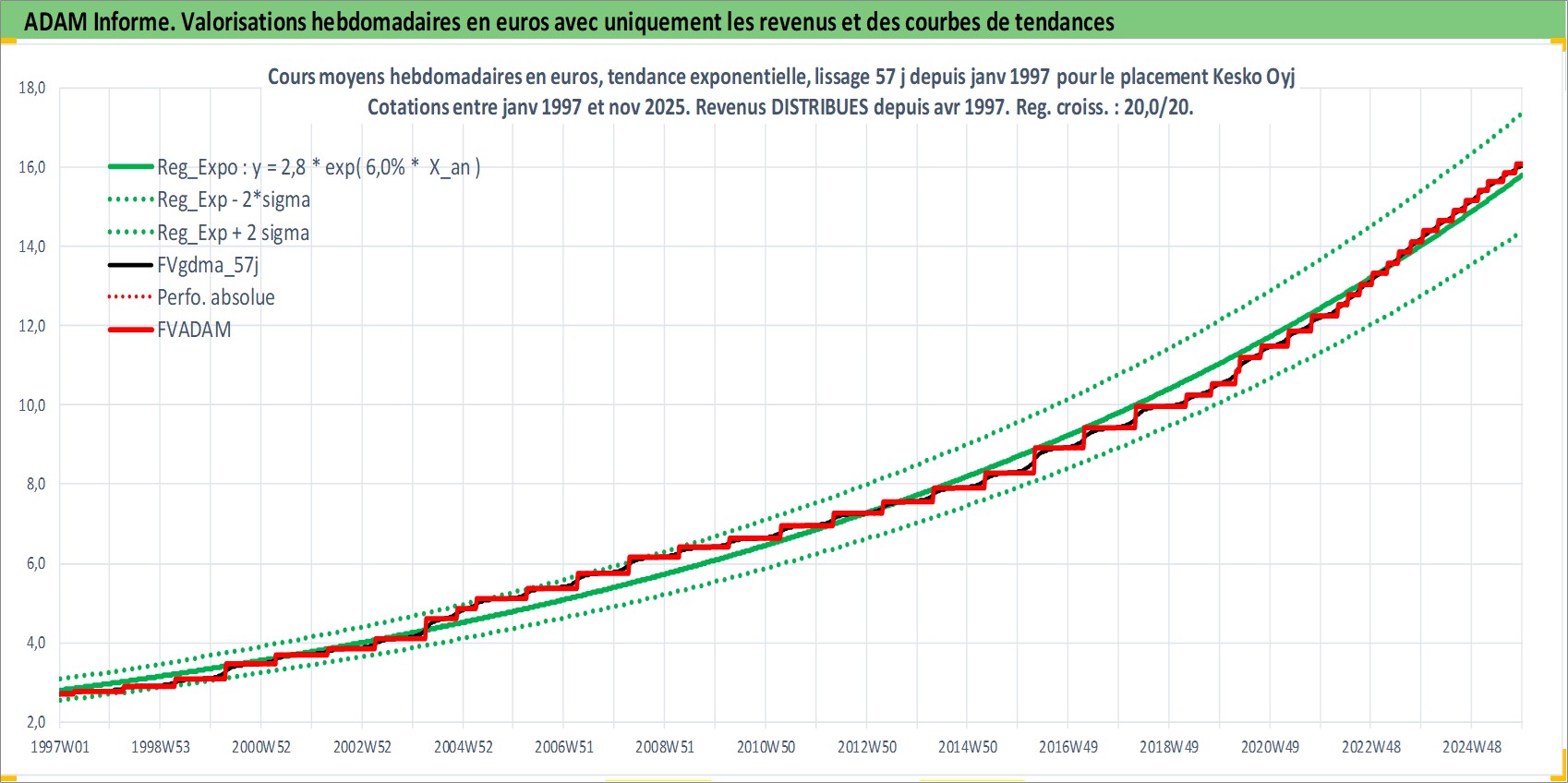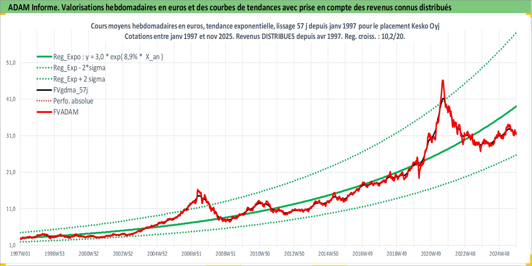 Site dédié aux investisseursPage dédiée sur site financeAnalyse des valorisations hebdomadaires de l'action Kesko Oyj. Cet actif est cote en EUR. Les valorisations couvrent les semaines 1997W01 a 2025W48. Les revenus de cet actif financier sont pris en compte depuis la semaine 1997W16. La note ESG de cet actif n'est pas connue.