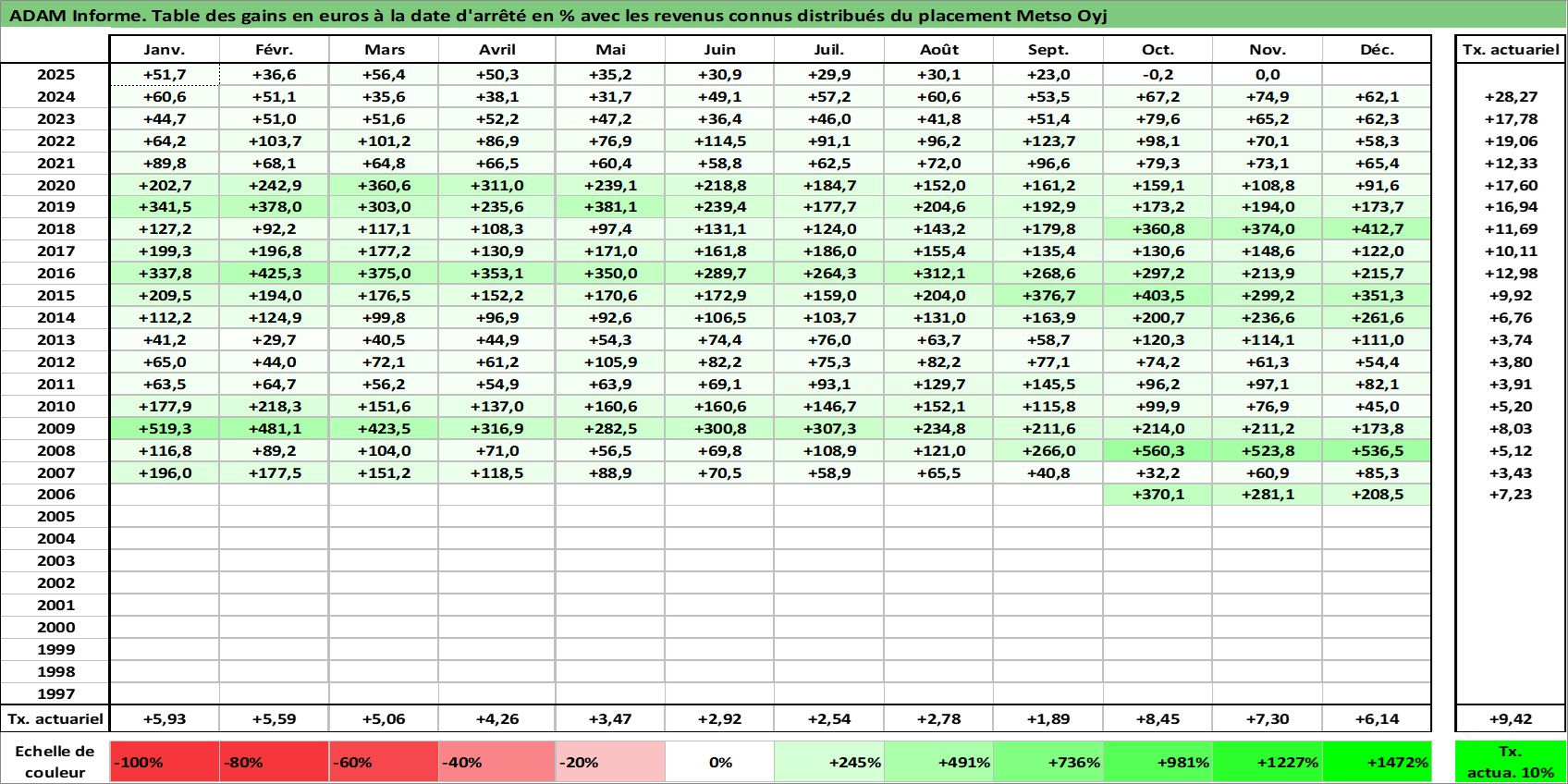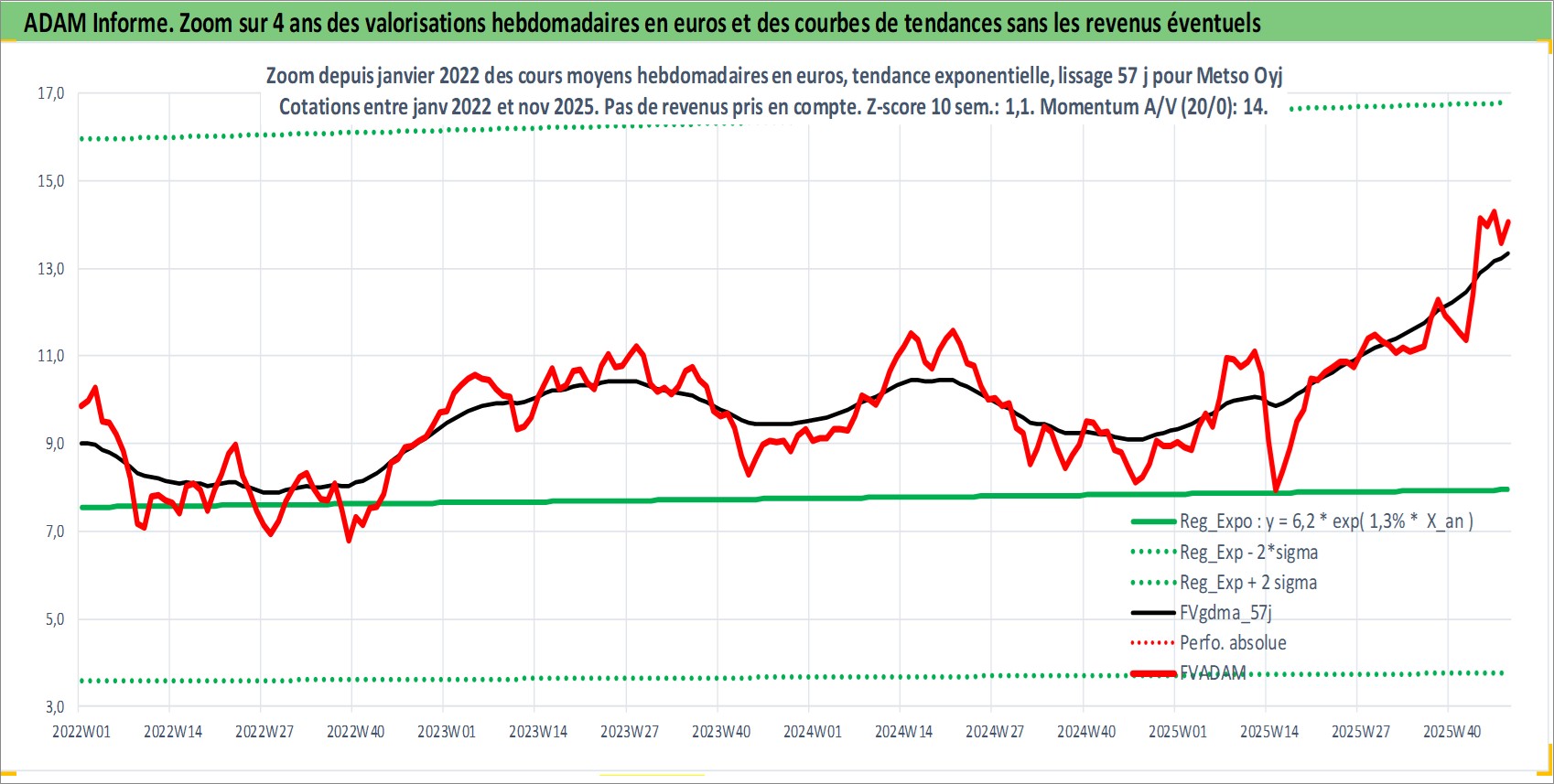 Site dédié aux investisseursPage dédiée sur site financeAnalyse des valorisations hebdomadaires de l'action Metso Oyj. Cet actif est cote en EUR. Les valorisations couvrent les semaines 2006W41 a 2025W48. Les revenus de cet actif financier sont pris en compte depuis la semaine 2007W14. La note ESG de cet actif n'est pas connue.