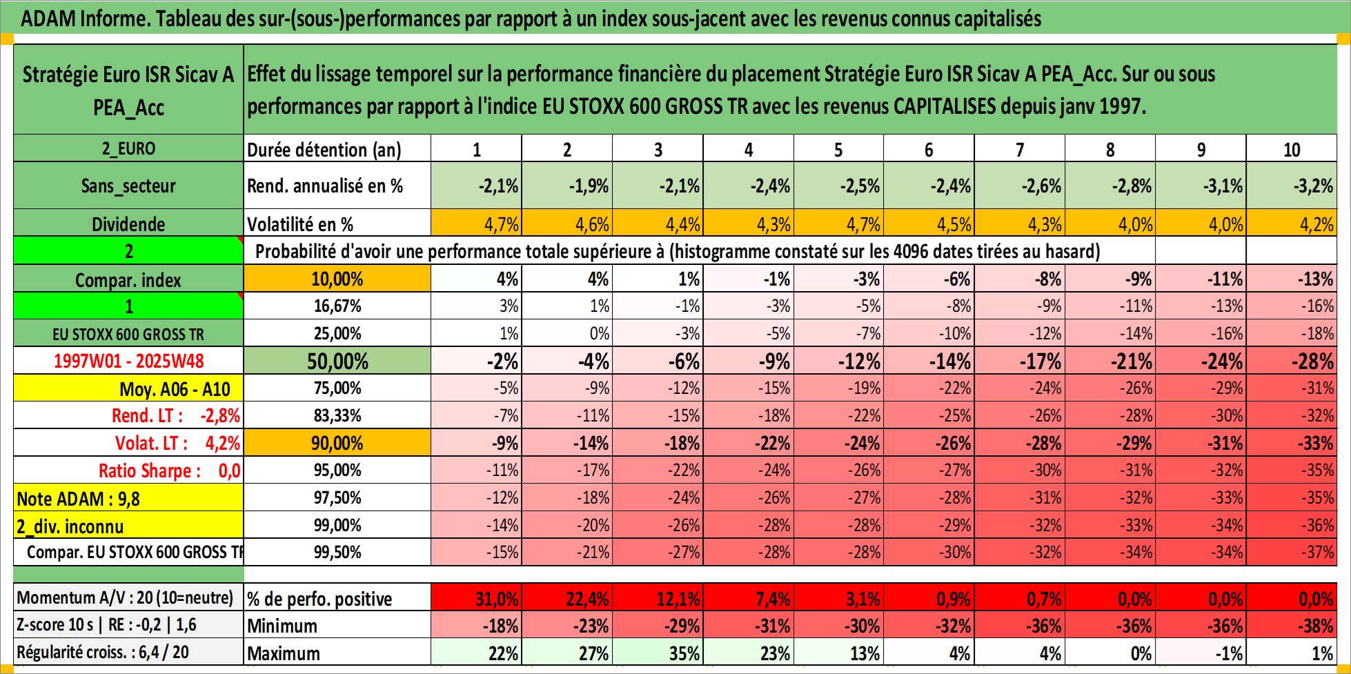 Site dédié aux investisseursPage dédiée sur site financeAnalyse des valorisations hebdomadaires du fonds Stratégie Euro ISR Sicav A PEA_Acc. Cet actif est cote en EUR. Les valorisations couvrent les semaines 1997W01 a 2025W48. Les revenus de cet actif financier sont pris en compte depuis la semaine 1997W01. La note ESG de cet actif n'est pas connue.
