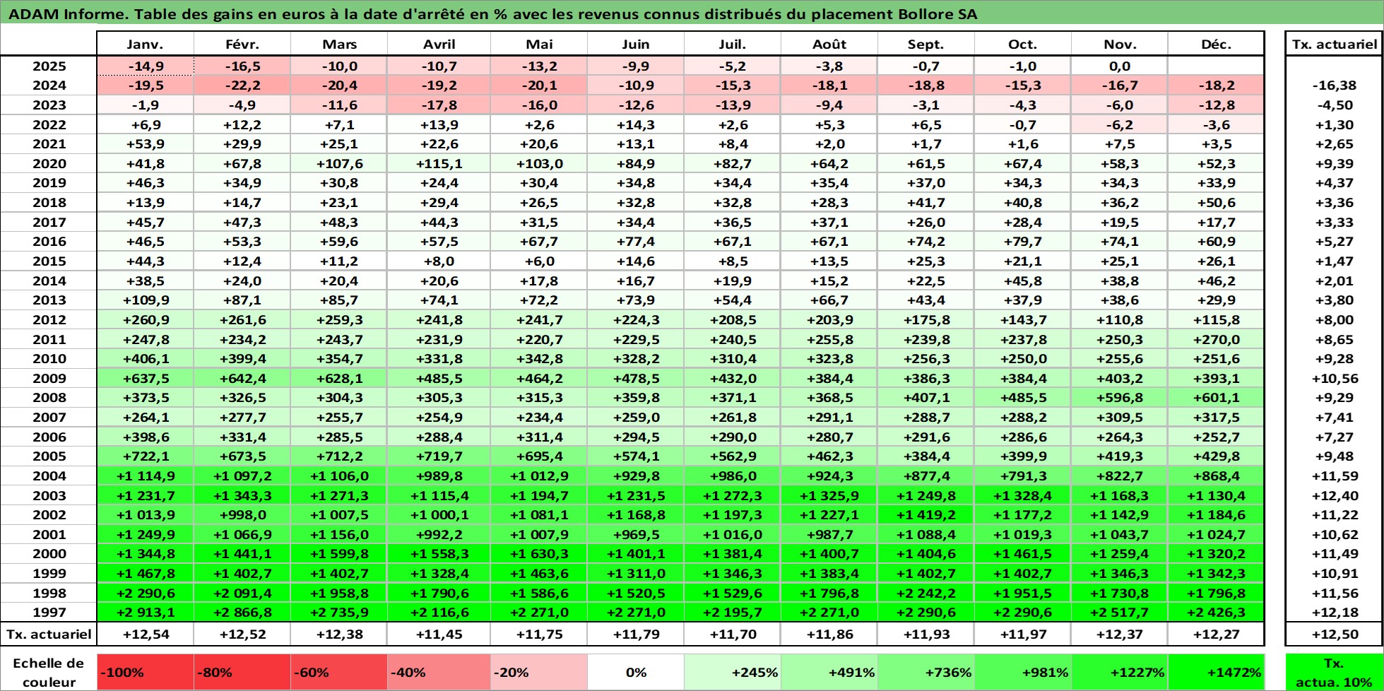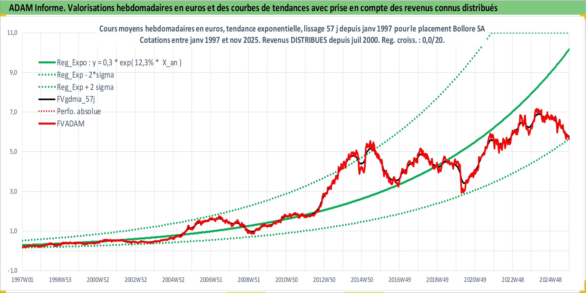 Site dédié aux investisseursPage dédiée sur site financeAnalyse des valorisations hebdomadaires de l'action Bollore SA. Cet actif est cote en EUR. Les valorisations couvrent les semaines 1997W01 a 2025W48. Les revenus de cet actif financier sont pris en compte depuis la semaine 2000W27. La note globale ESG de cet actif est estimee a 15.0 (apres rebasage entre 0 et 20).