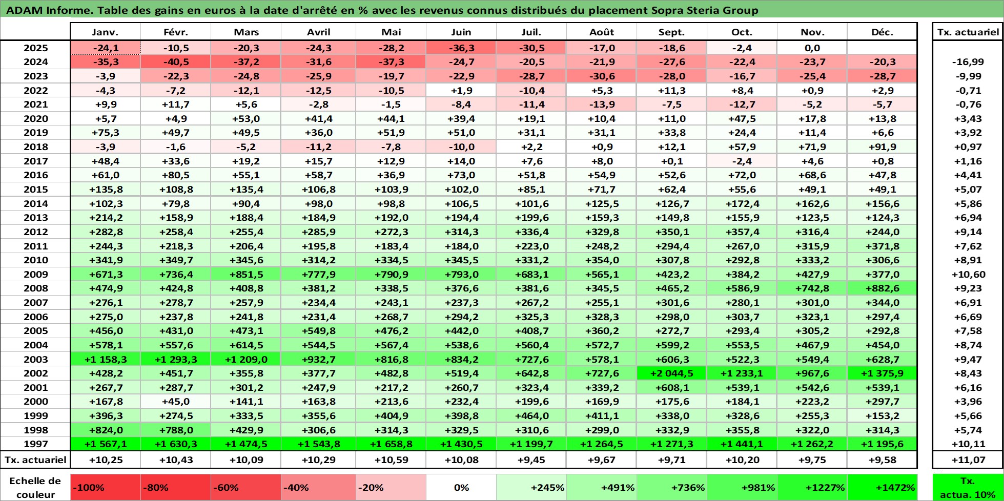 Dernière perfo 10 ans en %