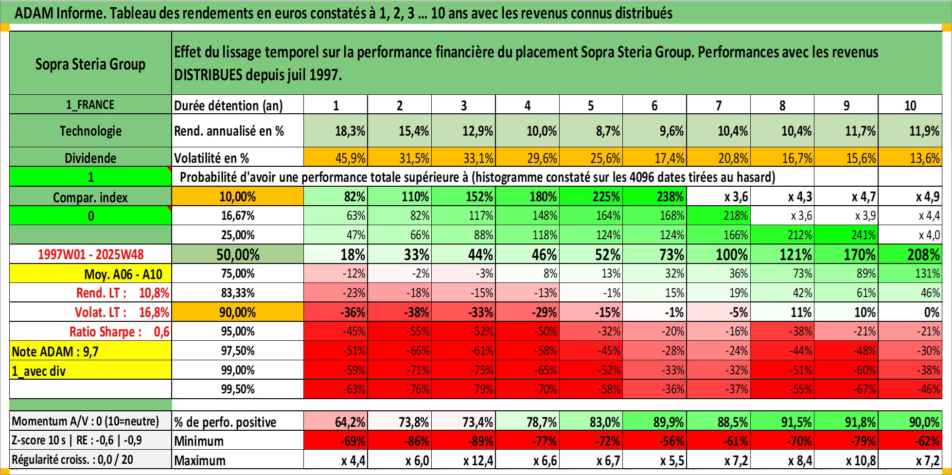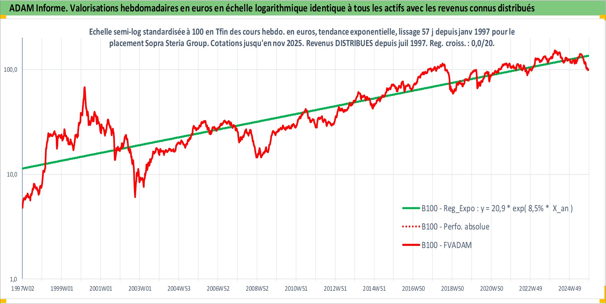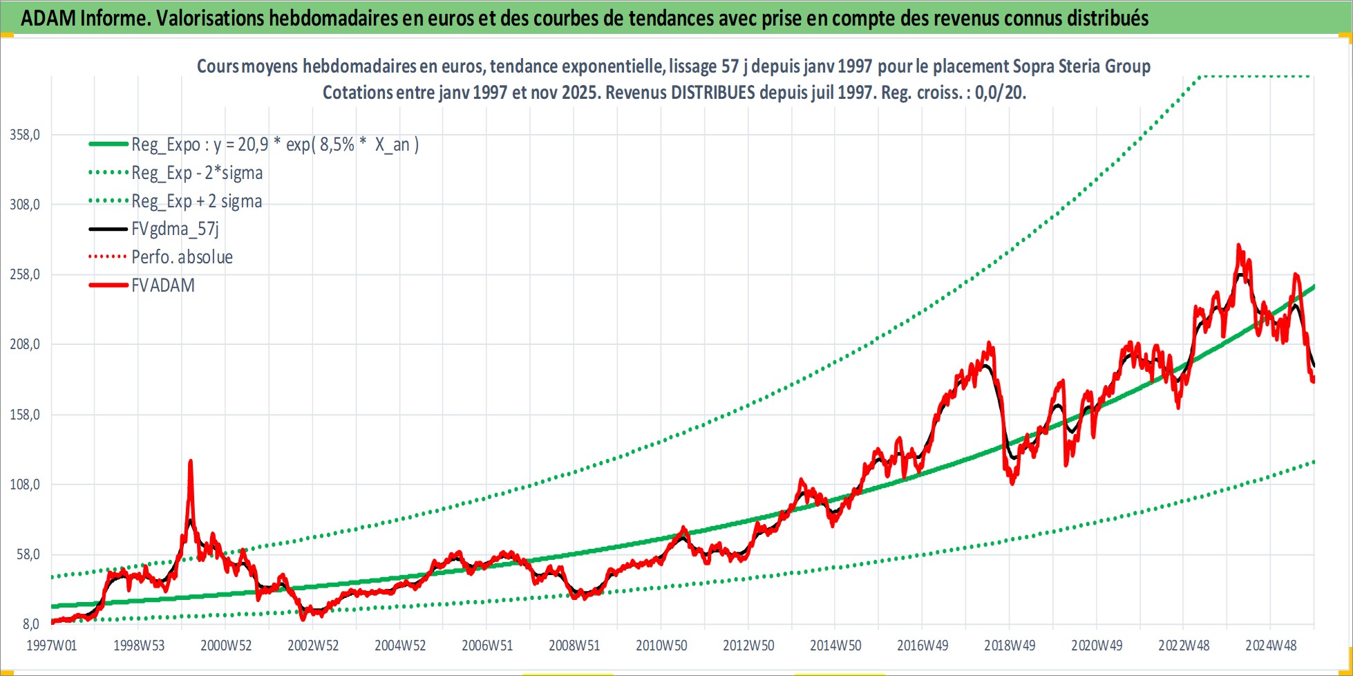 Site dédié aux investisseursPage dédiée sur site financeAnalyse des valorisations hebdomadaires de l'action Sopra Steria Group. Cet actif est cote en EUR. Les valorisations couvrent les semaines 1997W01 a 2025W48. Les revenus de cet actif financier sont pris en compte depuis la semaine 1997W29. La note ESG de cet actif n'est pas connue.