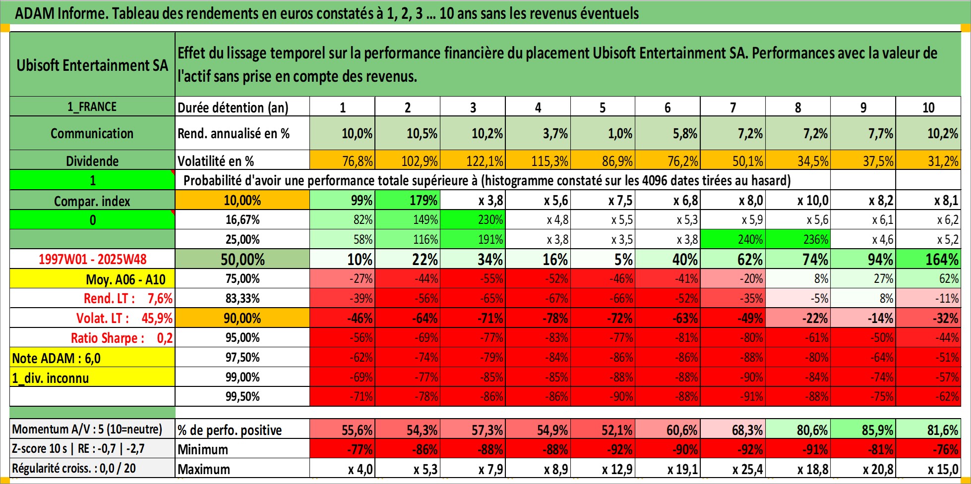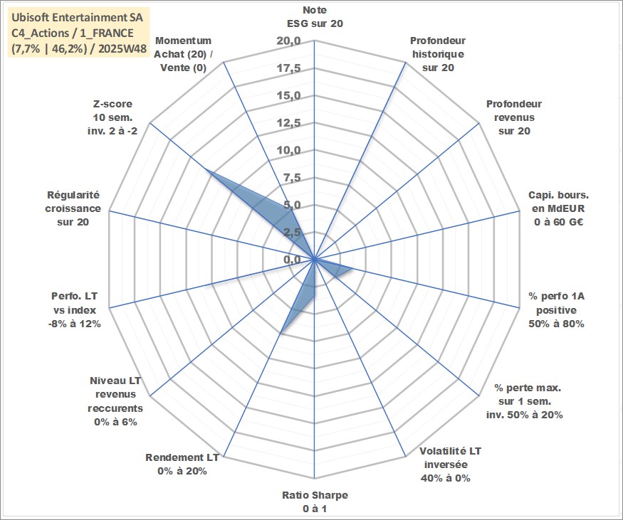Site dédié aux investisseursPage dédiée sur site financeAnalyse des valorisations hebdomadaires de l'action Ubisoft Entertainment SA. Cet actif est cote en EUR. Les valorisations couvrent les semaines 1997W01 a 2025W48. Les revenus de cet actif financier ne sont pas connus car non existants ou non disponibles sur le site Yahoo Finance. La note ESG de cet actif n'est pas connue.