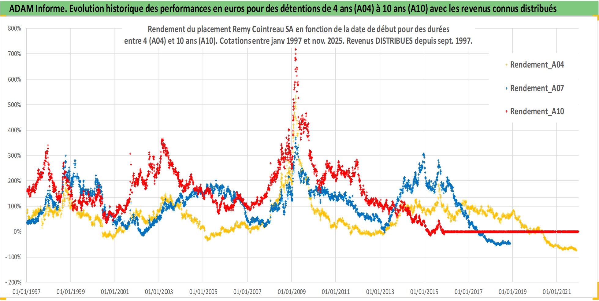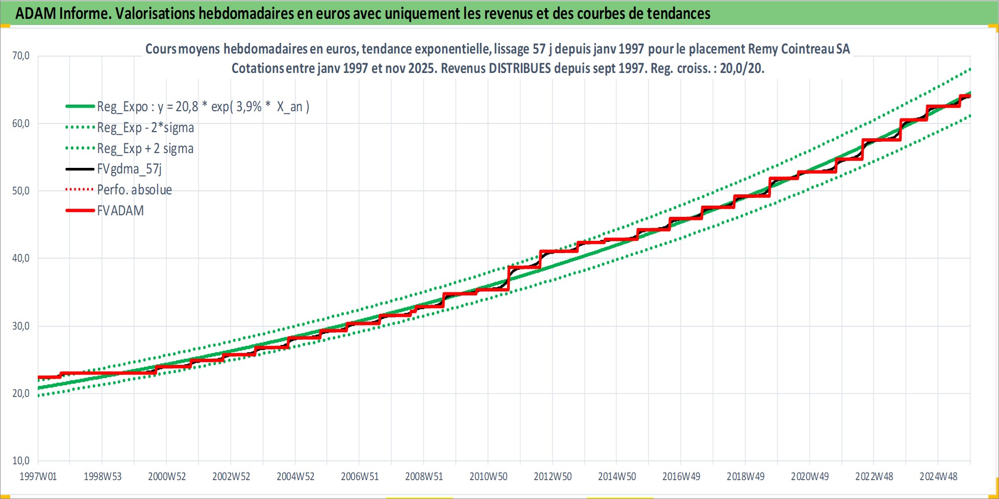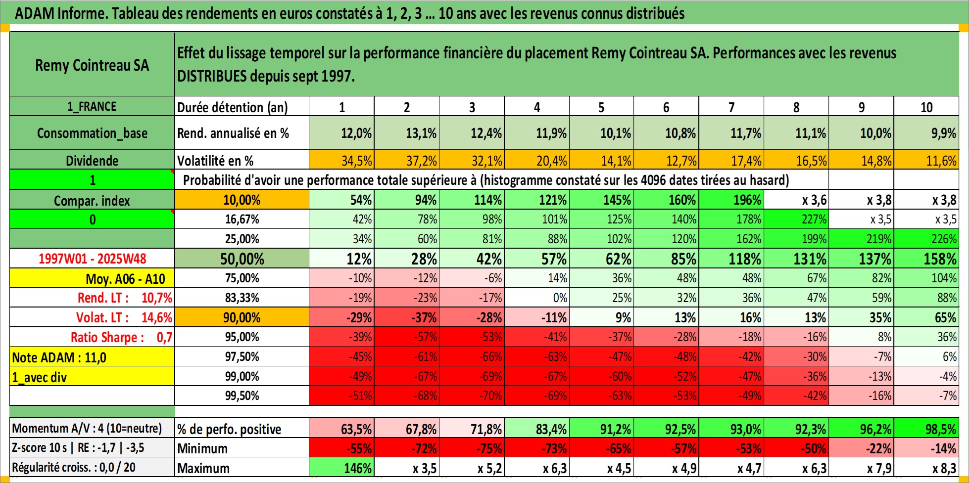 Site dédié aux investisseursPage dédiée sur site financeAnalyse des valorisations hebdomadaires de l'action Remy Cointreau SA. Cet actif est cote en EUR. Les valorisations couvrent les semaines 1997W01 a 2025W48. Les revenus de cet actif financier sont pris en compte depuis la semaine 1997W38. La note ESG de cet actif n'est pas connue.