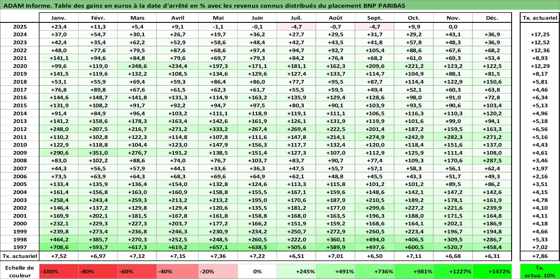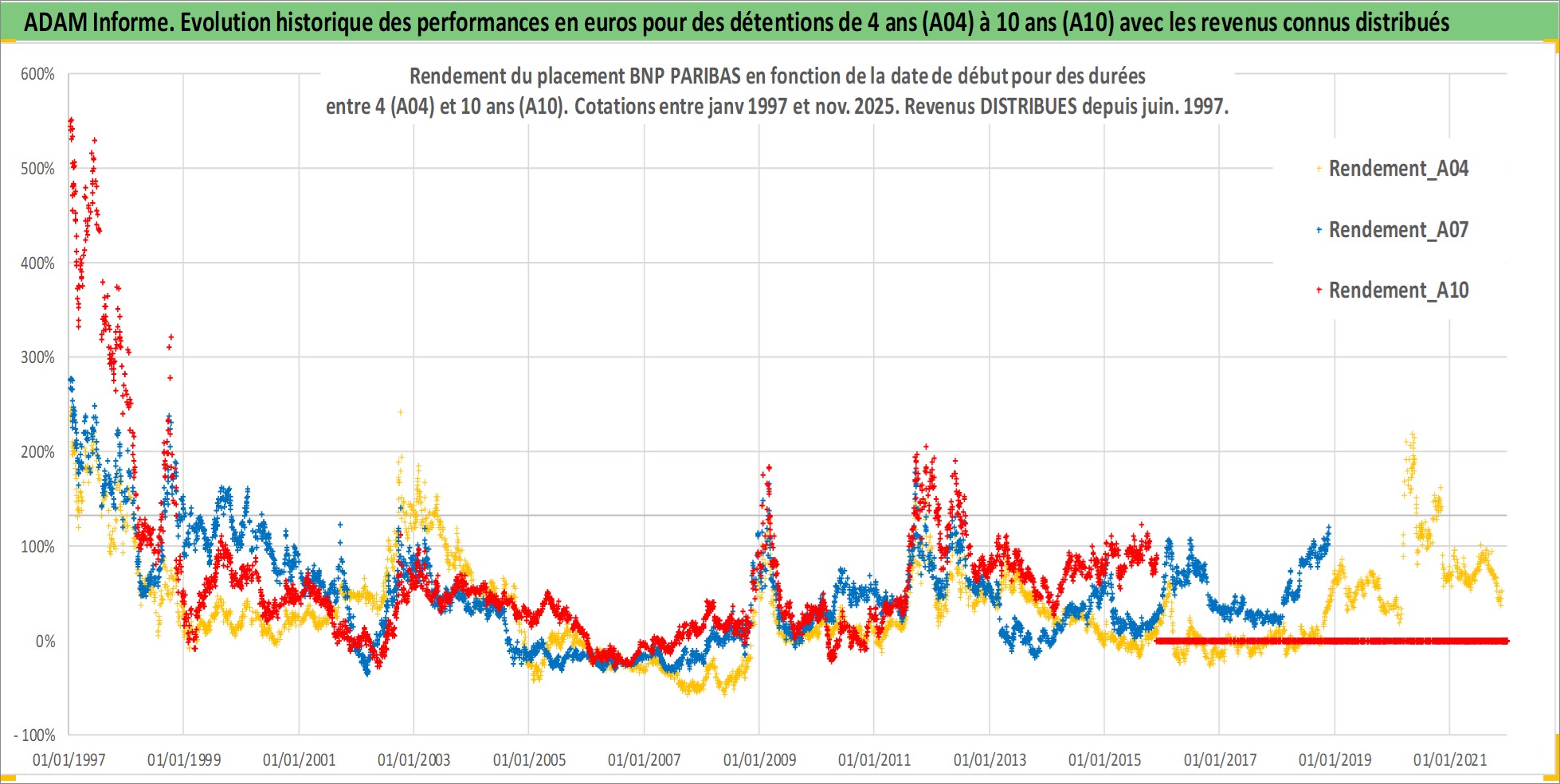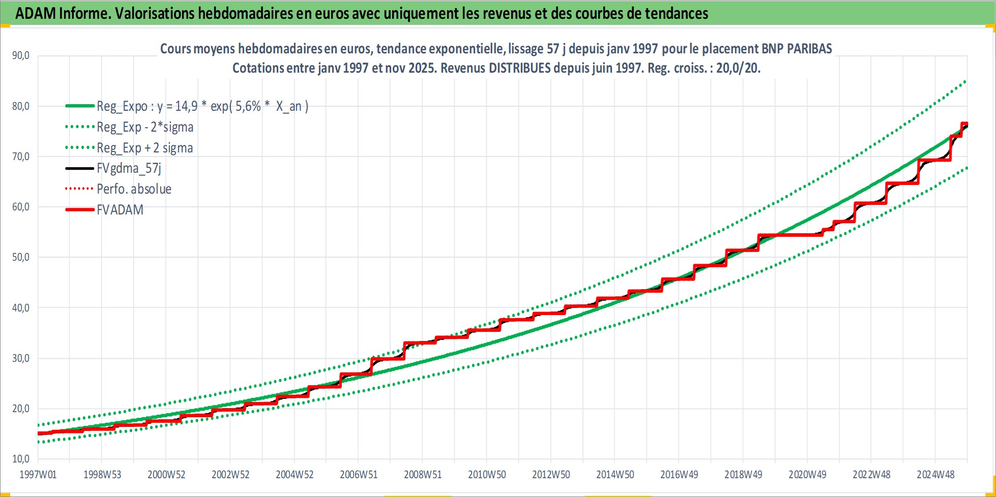 Site dédié aux investisseursPage dédiée sur site financeAnalyse des valorisations hebdomadaires de l'action BNP PARIBAS. Cet actif est cote en EUR. Les valorisations couvrent les semaines 1997W01 a 2025W48. Les revenus de cet actif financier sont pris en compte depuis la semaine 1997W24. La note globale ESG de cet actif est estimee a 7.0 (apres rebasage entre 0 et 20).