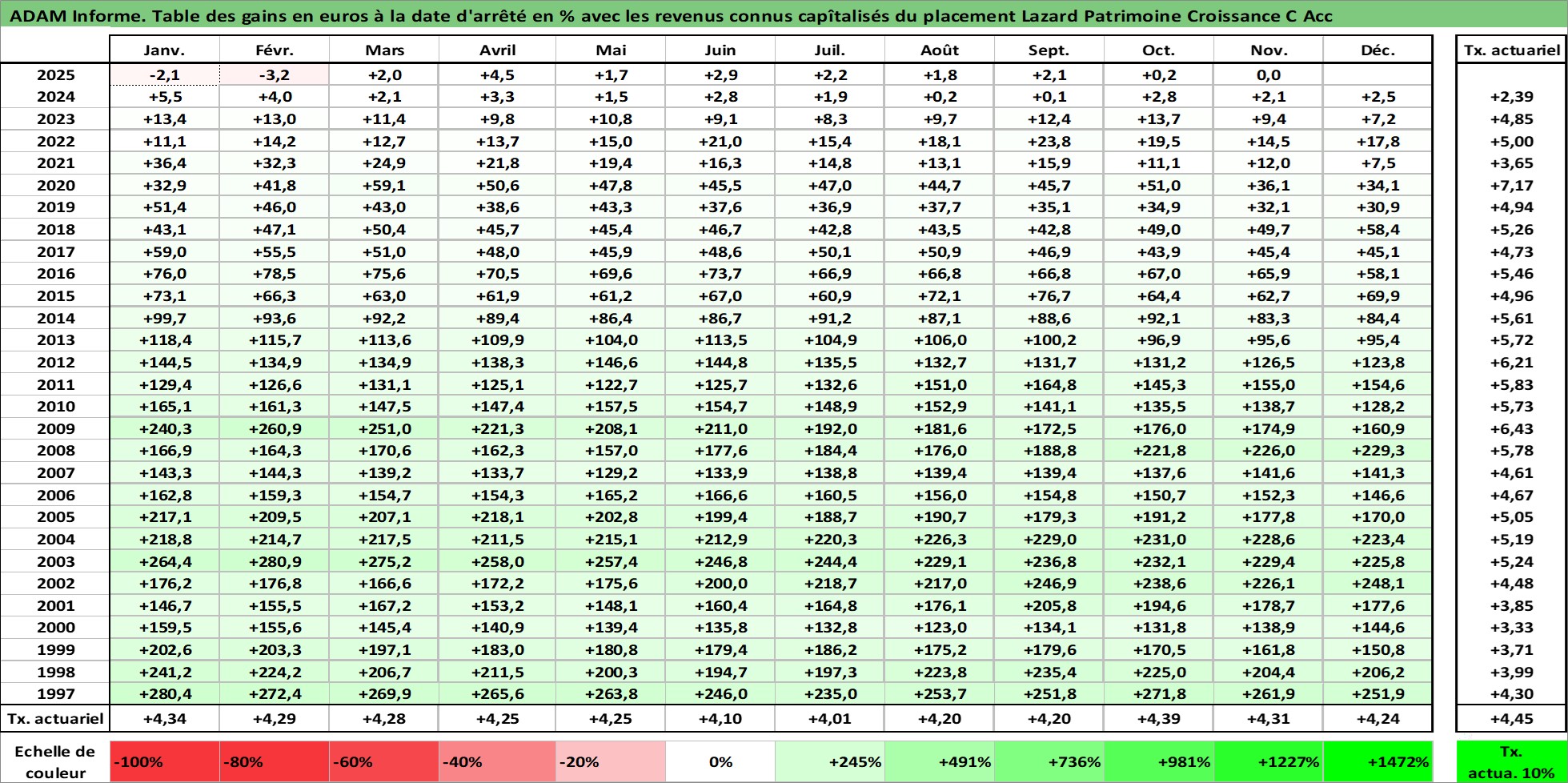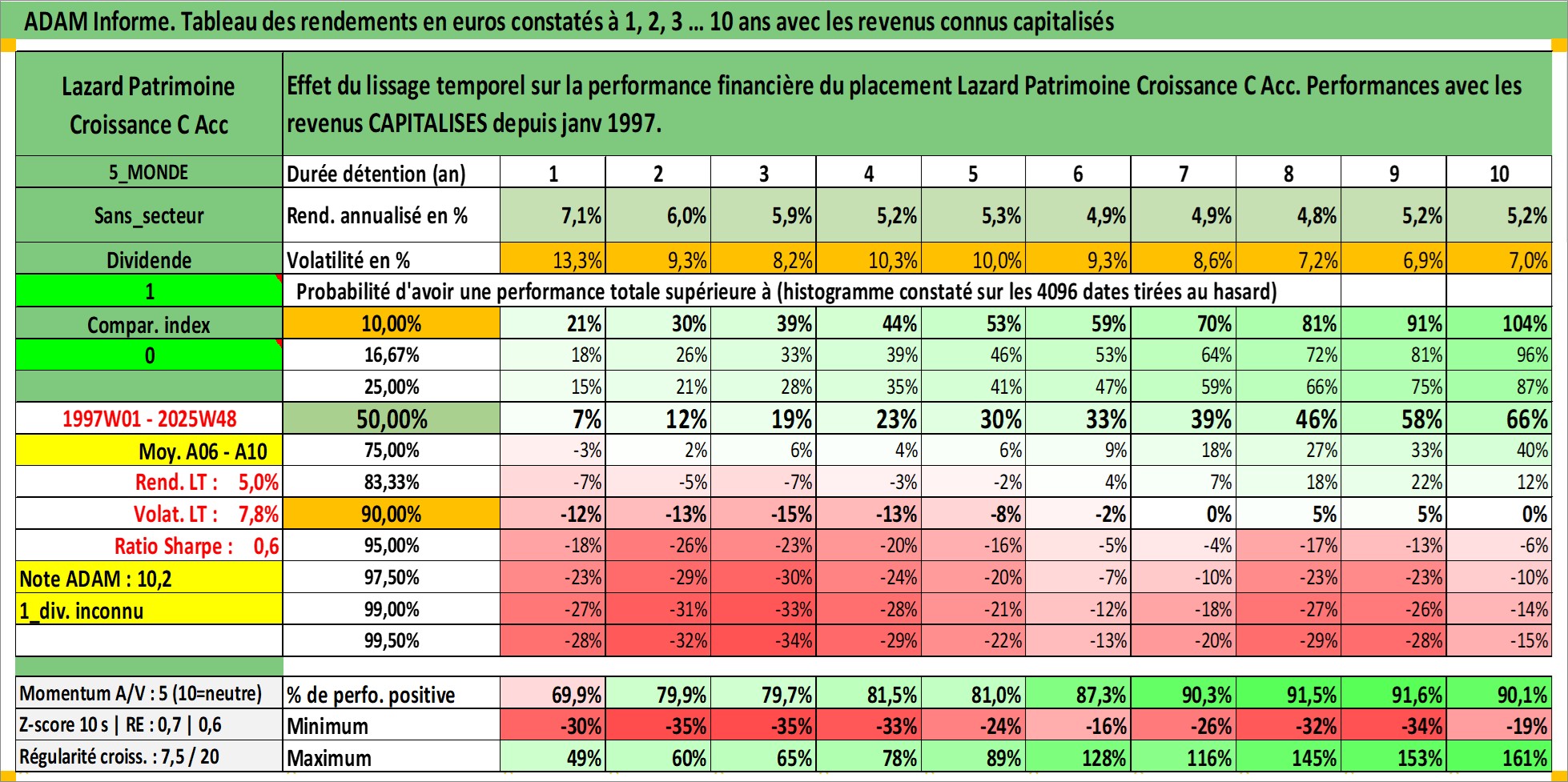Dernière perfo 10 ans en %