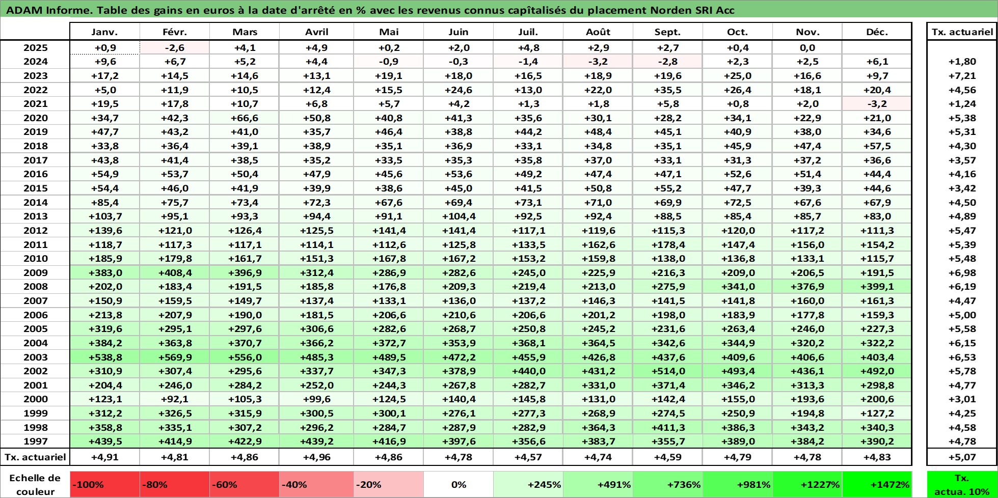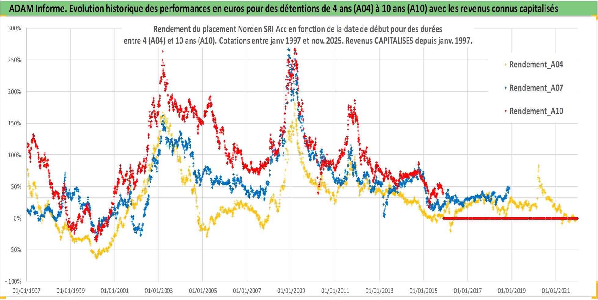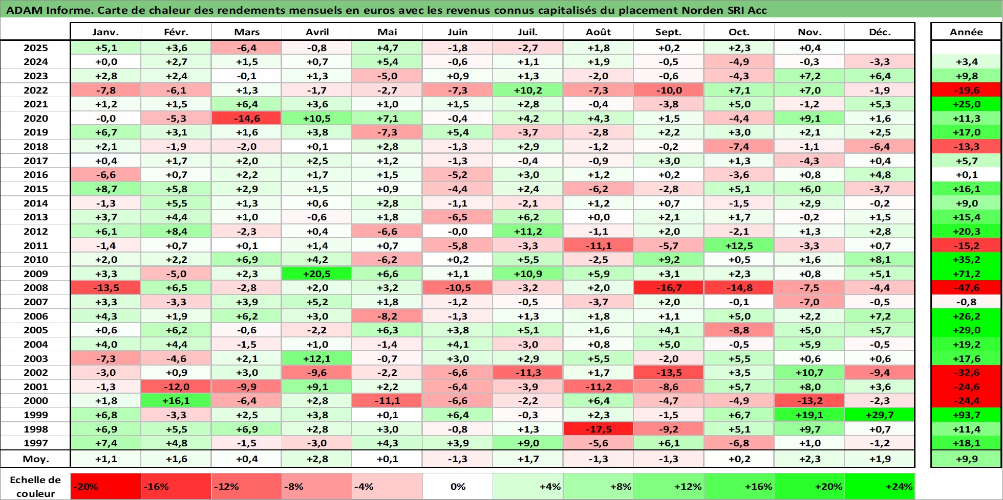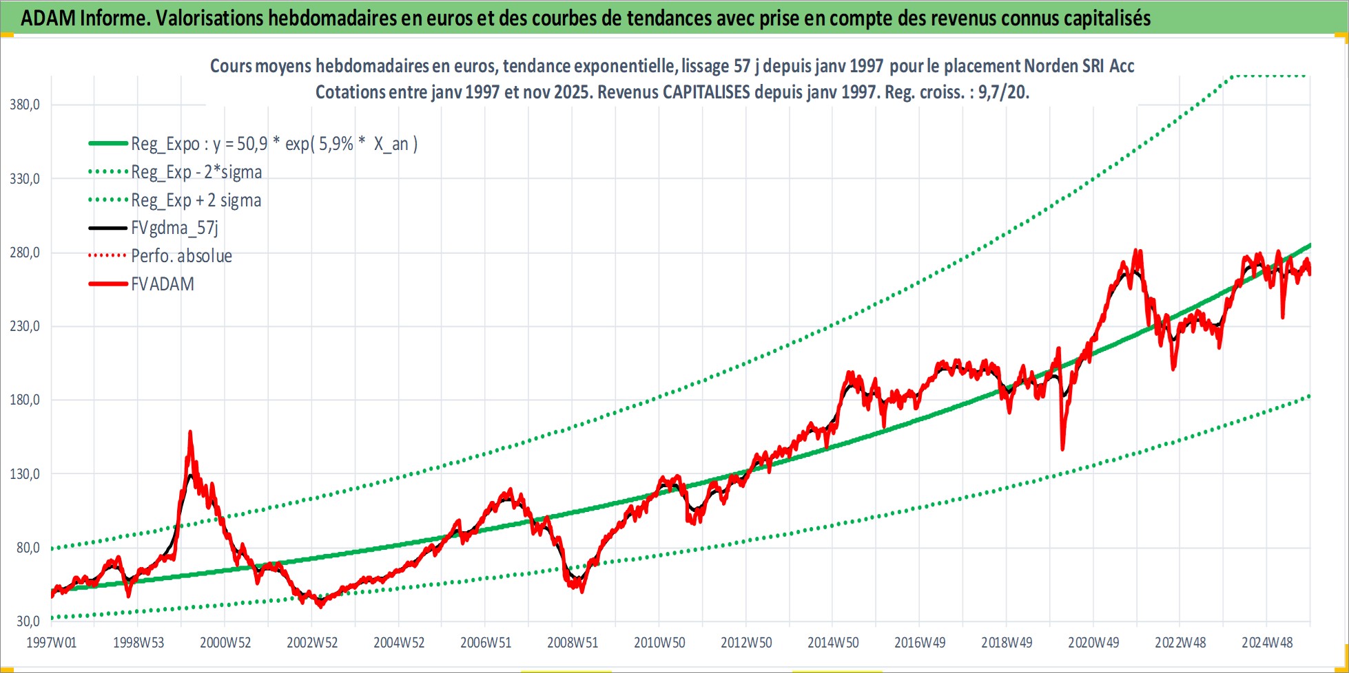 Site dédié aux investisseursPage dédiée sur site financeAnalyse des valorisations hebdomadaires du fonds Norden SRI Acc. Cet actif est cote en EUR. Les valorisations couvrent les semaines 1997W01 a 2025W48. Les revenus de cet actif financier sont pris en compte depuis la semaine 1997W01. La note globale ESG de cet actif est estimee a 10.0 (apres rebasage entre 0 et 20).