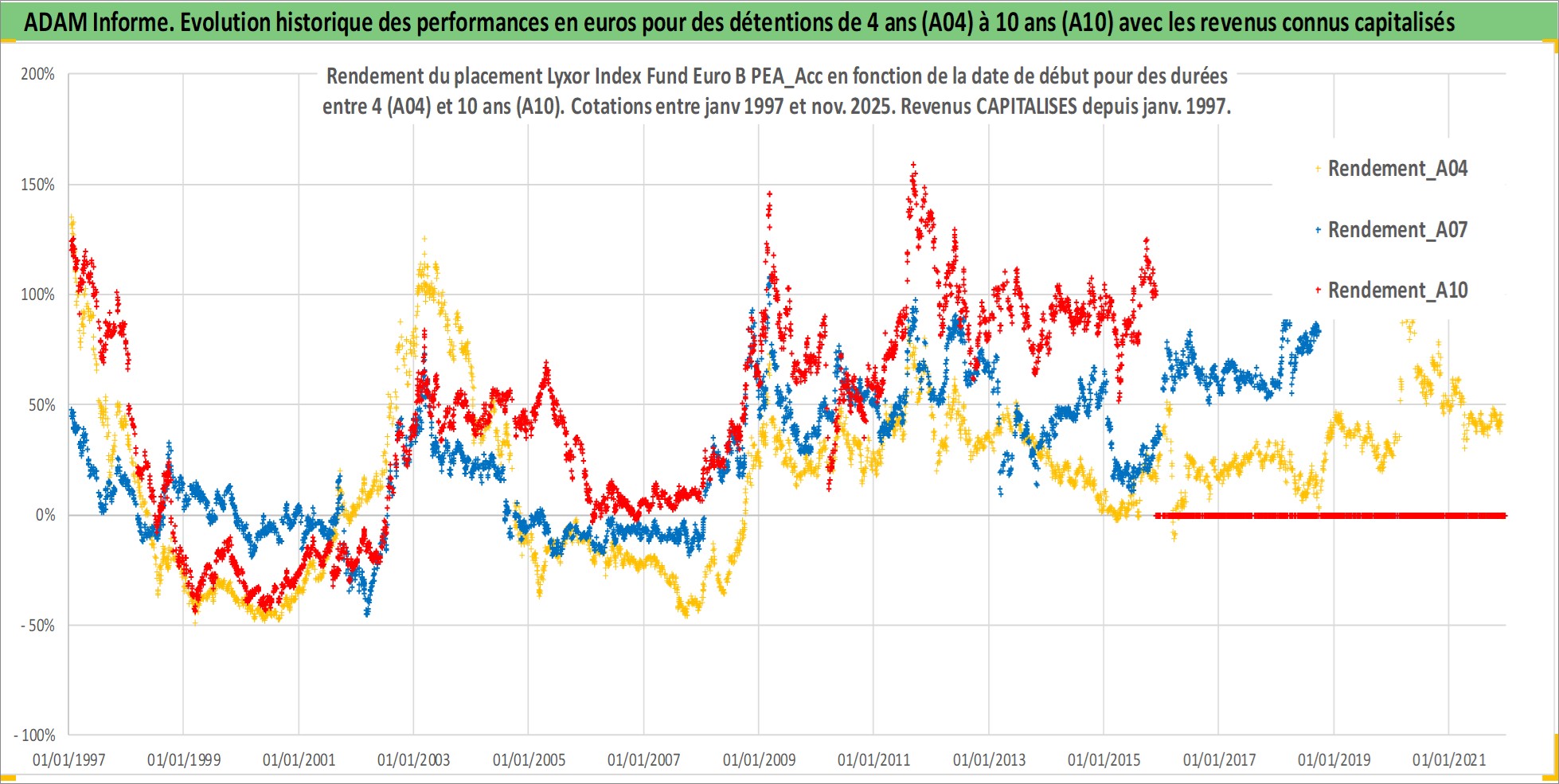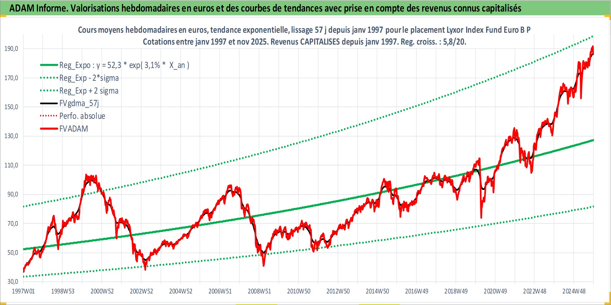 Site dédié aux investisseursPage dédiée sur site financeAnalyse des valorisations hebdomadaires du fonds Lyxor Index Fund Euro B PEA_Acc. Cet actif est cote en EUR. Les valorisations couvrent les semaines 1997W01 a 2025W48. Les revenus de cet actif financier sont pris en compte depuis la semaine 1997W01. La note ESG de cet actif n'est pas connue.