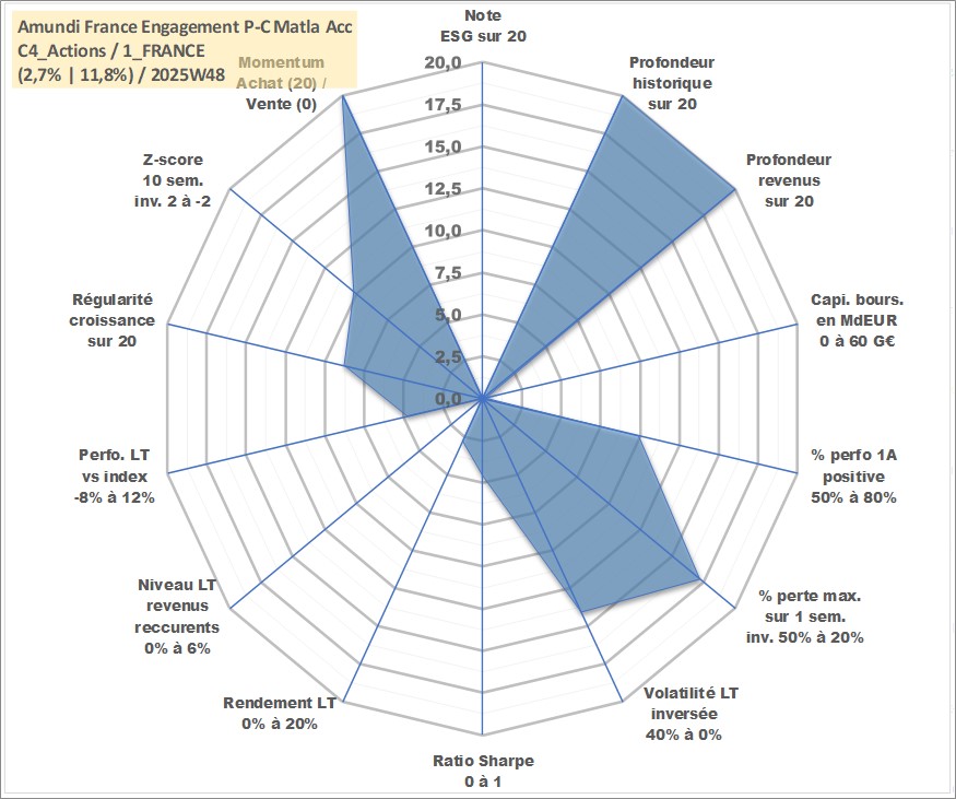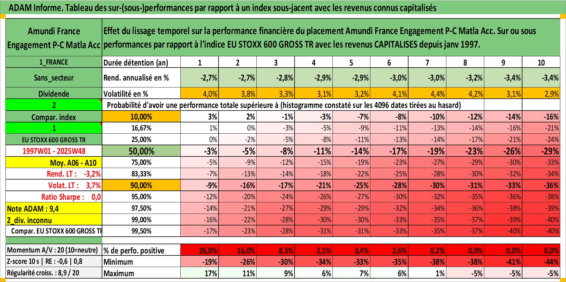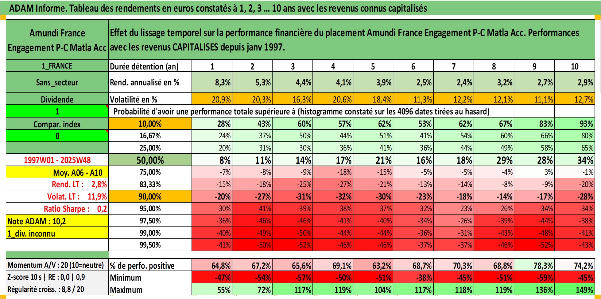 Site dédié aux investisseursPage dédiée sur site financeAnalyse des valorisations hebdomadaires du fonds Amundi France Engagement P-C Matla Acc. Cet actif est cote en EUR. Les valorisations couvrent les semaines 1997W01 a 2025W48. Les revenus de cet actif financier sont pris en compte depuis la semaine 1997W01. La note ESG de cet actif n'est pas connue.