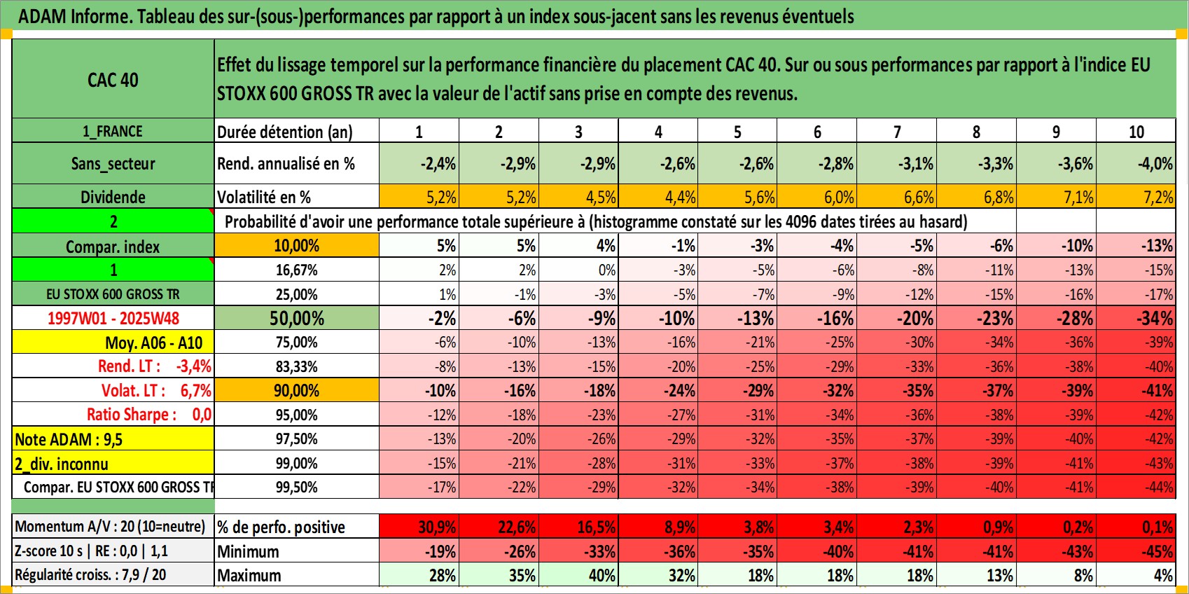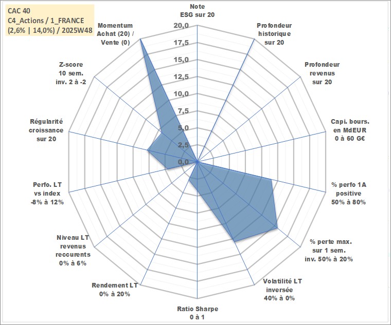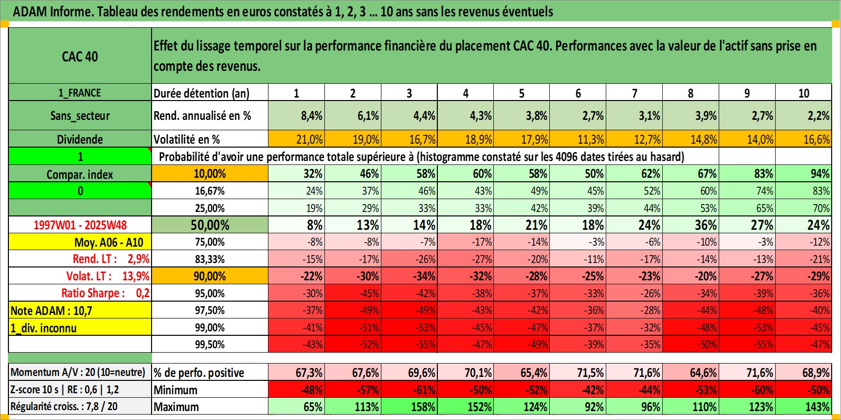 Site dédié aux investisseursPage dédiée sur site financeAnalyse des valorisations hebdomadaires de l'actif CAC 40. Cet actif est cote en EUR. Les valorisations couvrent les semaines 1997W01 a 2025W48. Les revenus de cet actif financier ne sont pas connus car non existants ou non disponibles sur le site Yahoo Finance. La note ESG de cet actif n'est pas connue.