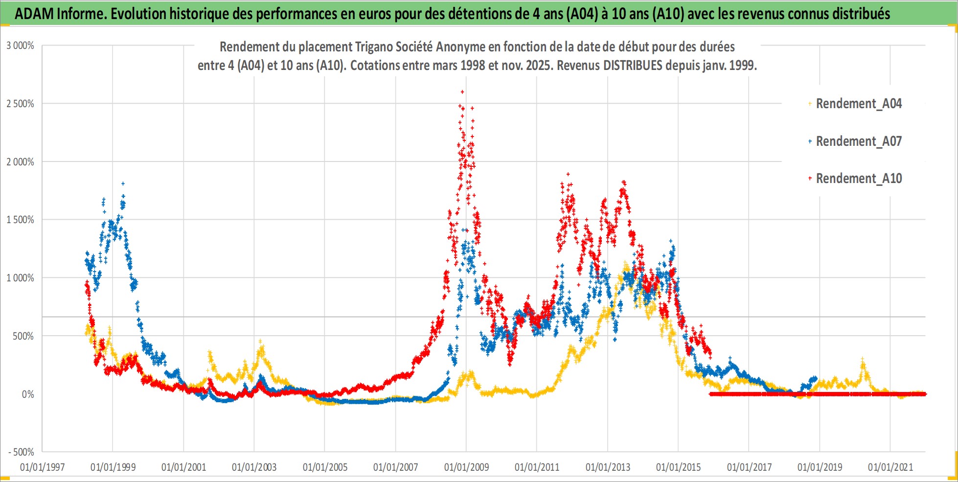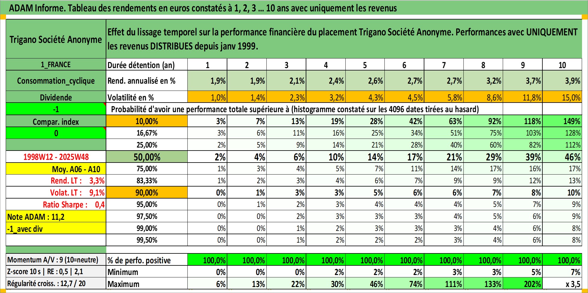 Site dédié aux investisseursPage dédiée sur site financeAnalyse des valorisations hebdomadaires de l'action Trigano Société Anonyme. Cet actif est cote en EUR. Les valorisations couvrent les semaines 1998W12 a 2025W48. Les revenus de cet actif financier sont pris en compte depuis la semaine 1999W02. La note globale ESG de cet actif est estimee a 9.0 (apres rebasage entre 0 et 20).