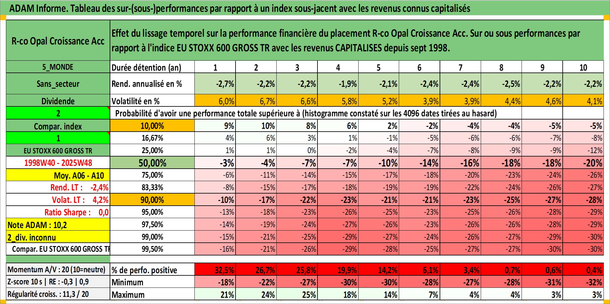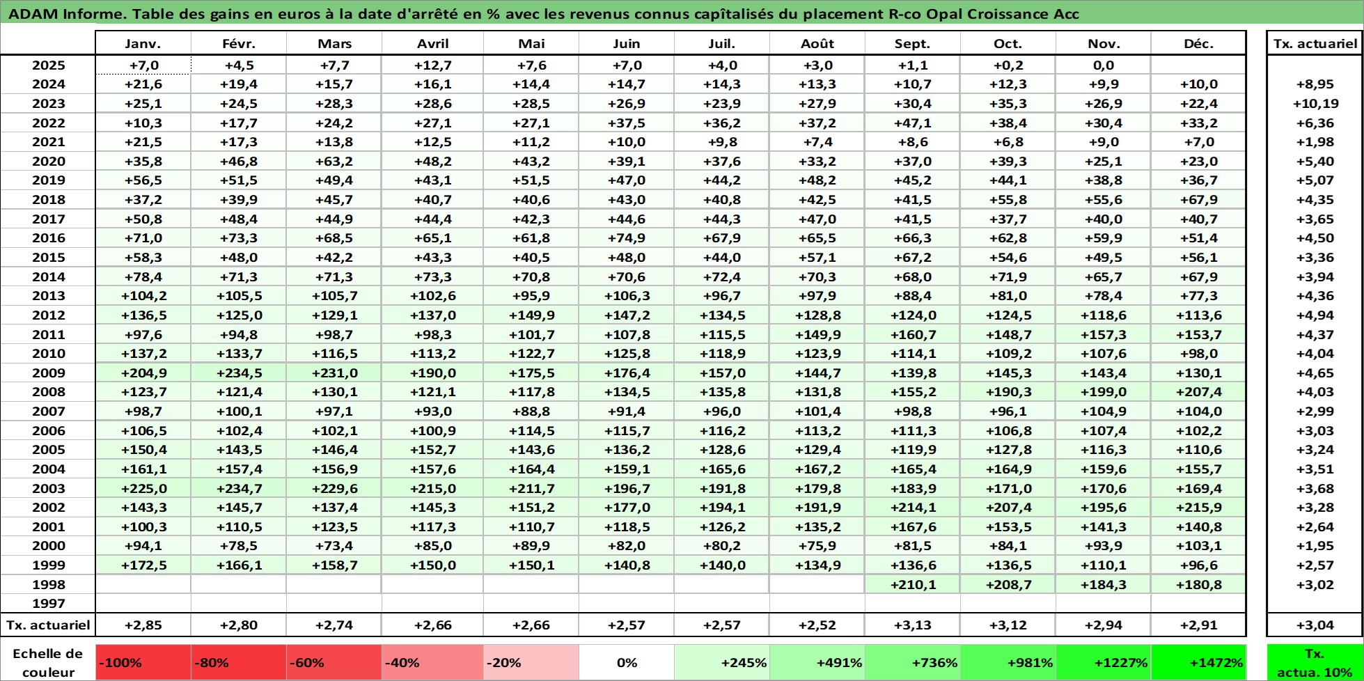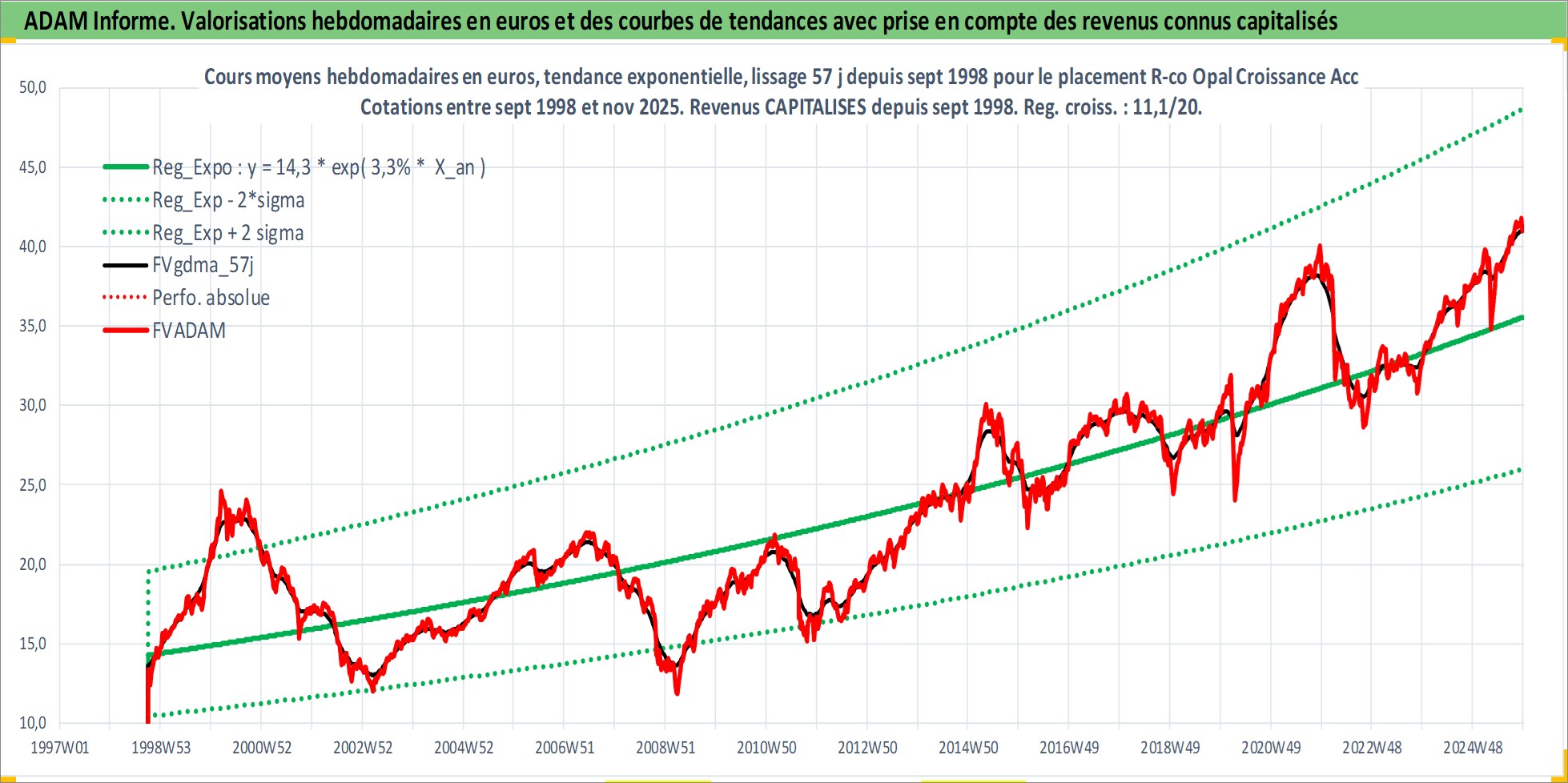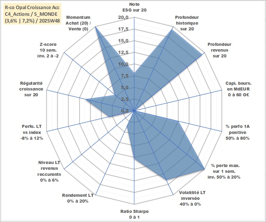 Site dédié aux investisseursPage dédiée sur site financeAnalyse des valorisations hebdomadaires du fonds R-co Opal Croissance Acc. Cet actif est cote en EUR. Les valorisations couvrent les semaines 1998W40 a 2025W48. Les revenus de cet actif financier sont pris en compte depuis la semaine 1998W40. La note globale ESG de cet actif est estimee a 8.0 (apres rebasage entre 0 et 20).