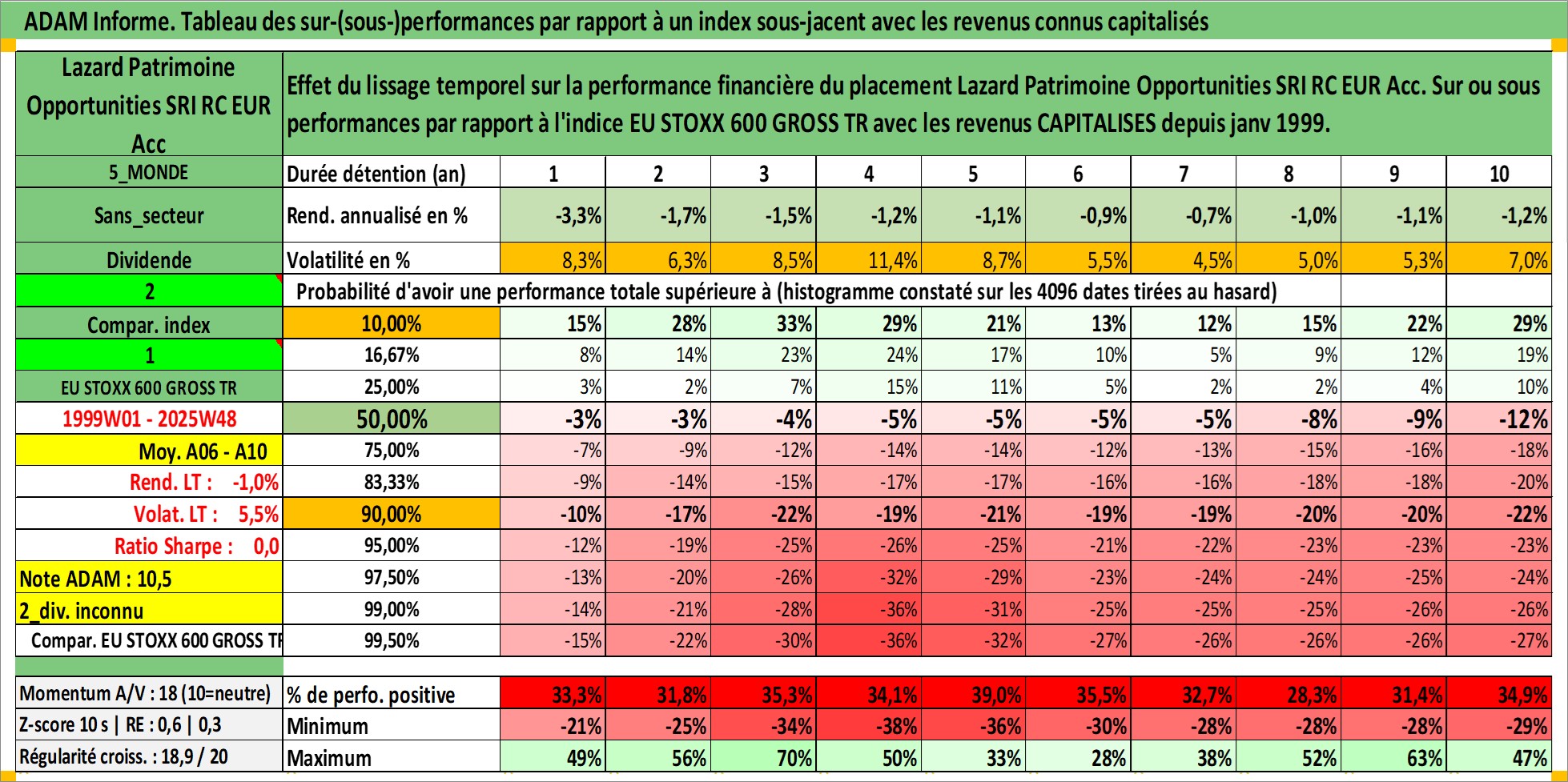 Dernière perfo 10 ans en %