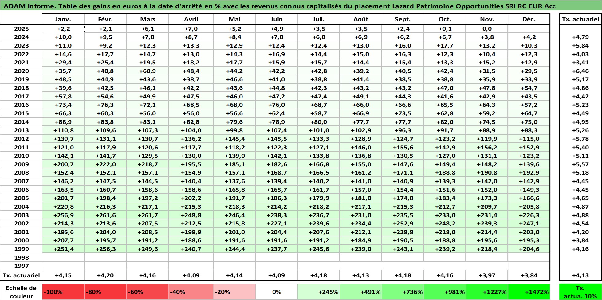 Dernière perfo 1 an en %