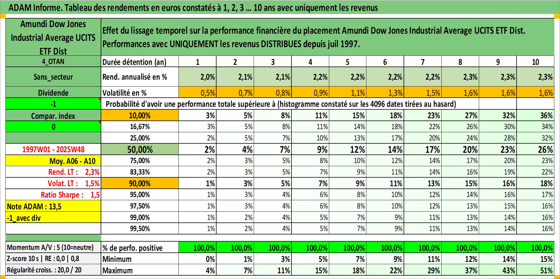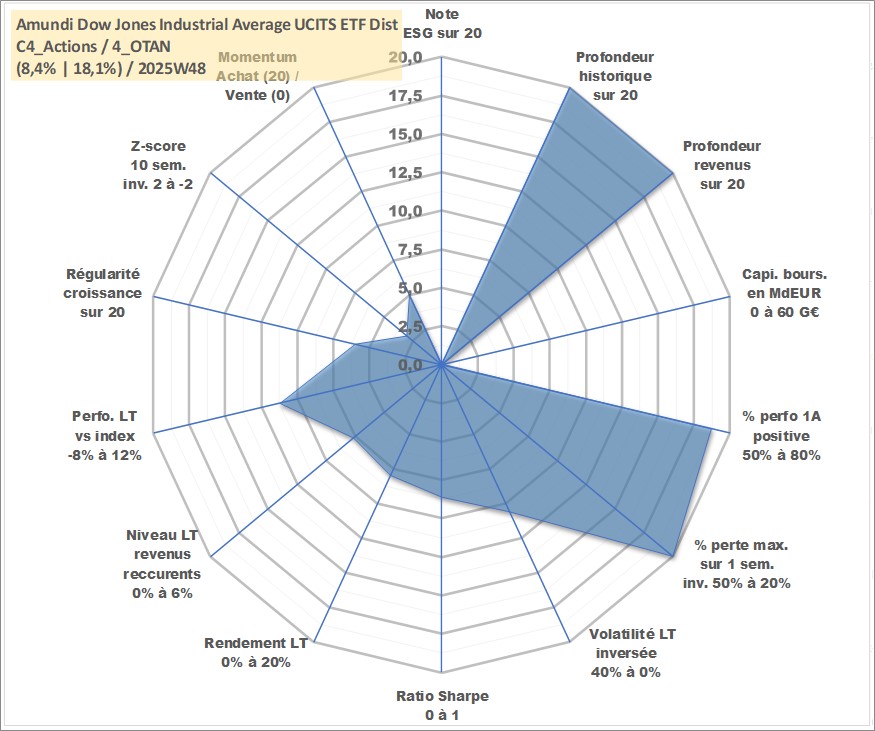 Site dédié aux investisseursPage dédiée sur site financeAnalyse des valorisations hebdomadaires du fonds Amundi Dow Jones Industrial Average UCITS ETF Dist. Cet actif est cote en EUR. Les valorisations couvrent les semaines 1997W01 a 2025W48. Les revenus de cet actif financier sont pris en compte depuis la semaine 1997W28. La note ESG de cet actif n'est pas connue.
