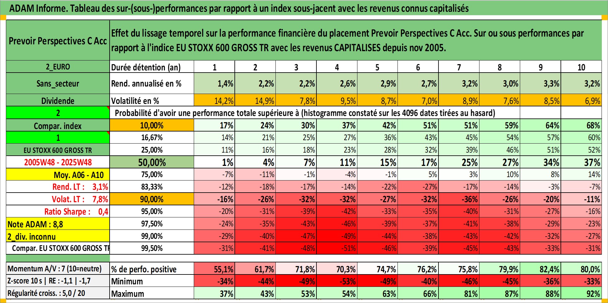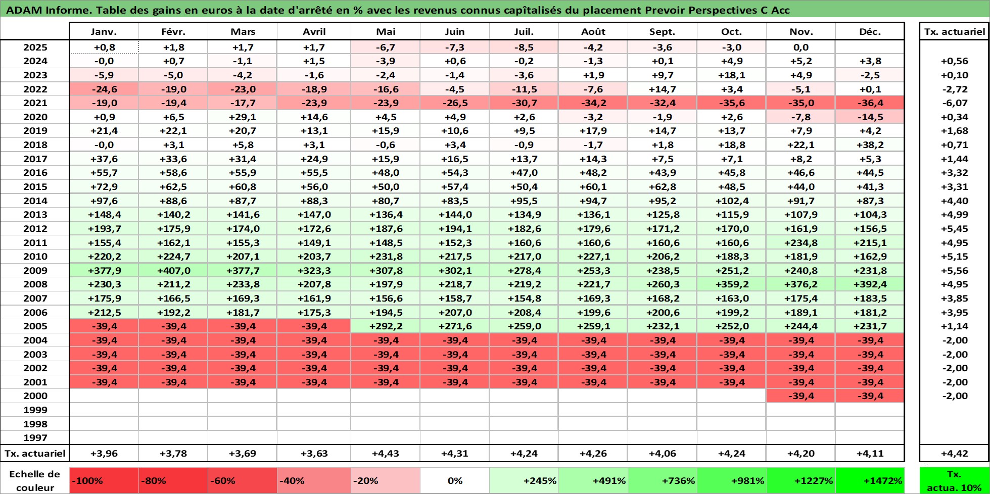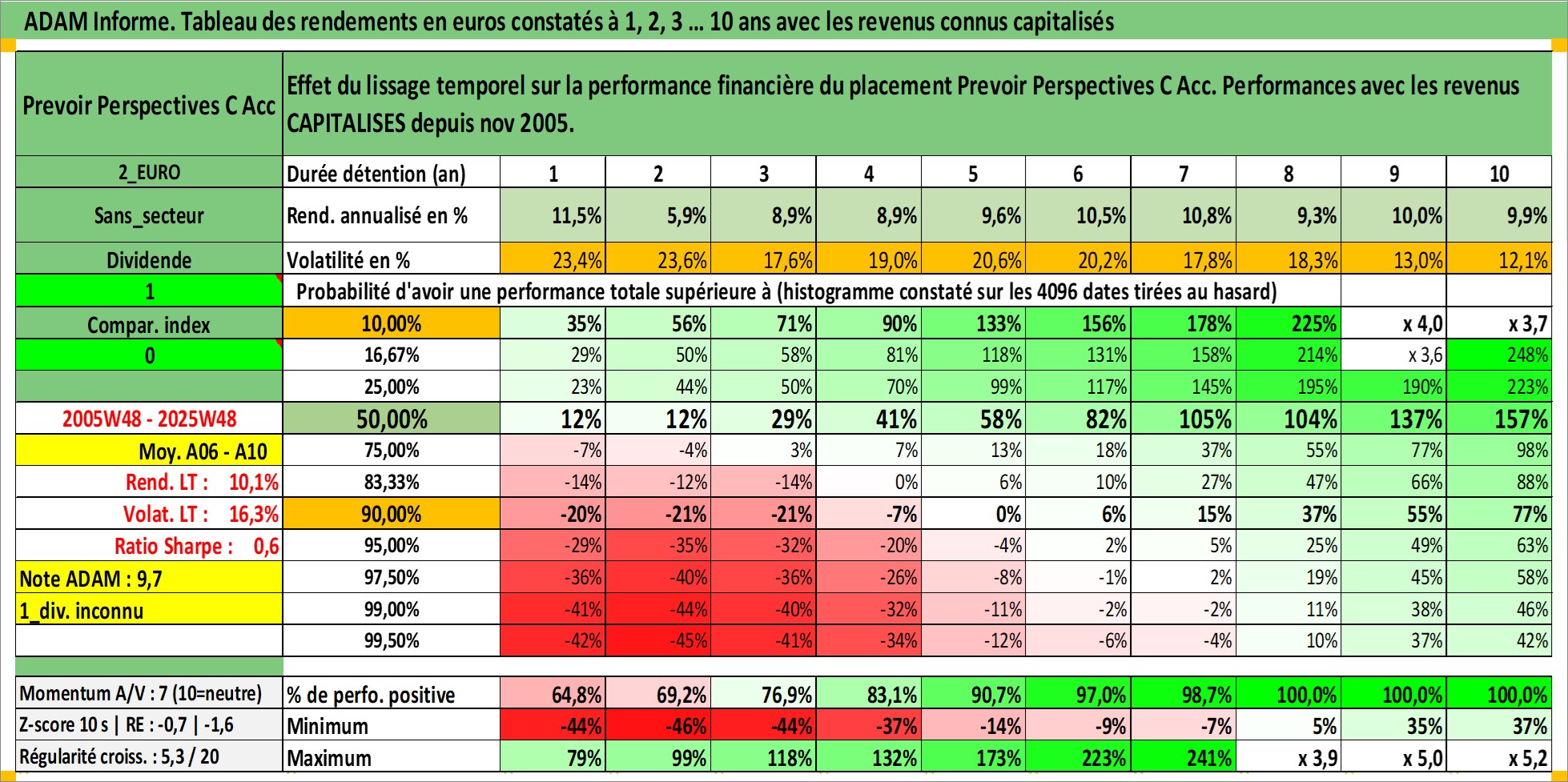 Site dédié aux investisseursPage dédiée sur site financeAnalyse des valorisations hebdomadaires du fonds Prevoir Perspectives C Acc. Cet actif est cote en EUR. Les valorisations couvrent les semaines 2005W48 a 2025W48. Les revenus de cet actif financier sont pris en compte depuis la semaine 2005W48. La note globale ESG de cet actif est estimee a 7.0 (apres rebasage entre 0 et 20).