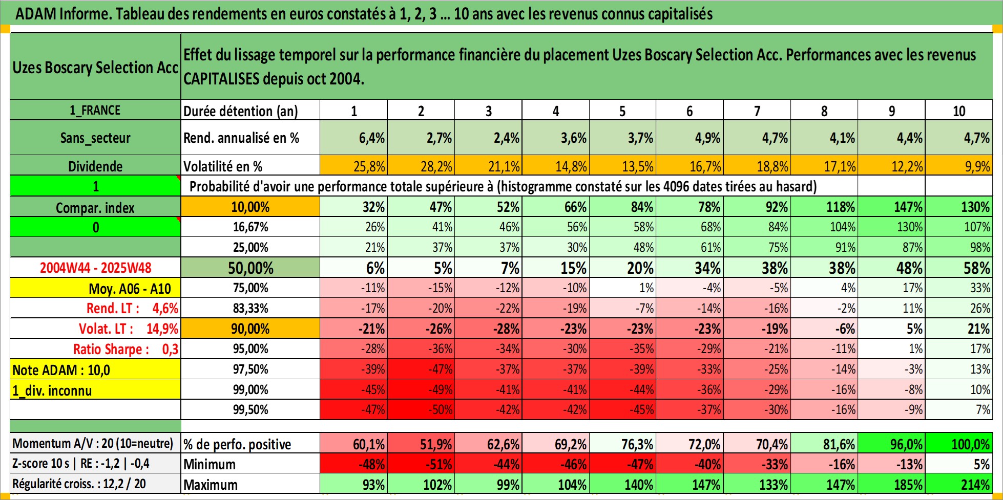 Dernière perfo 10 ans en %