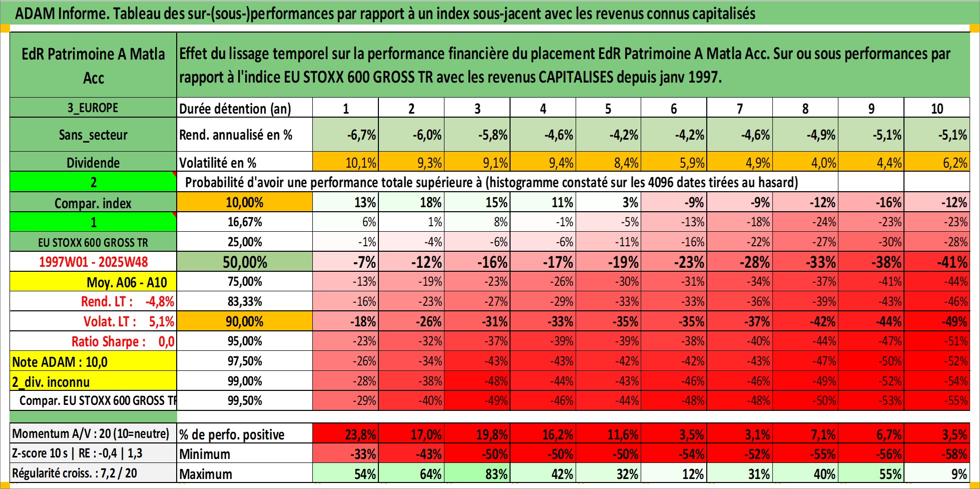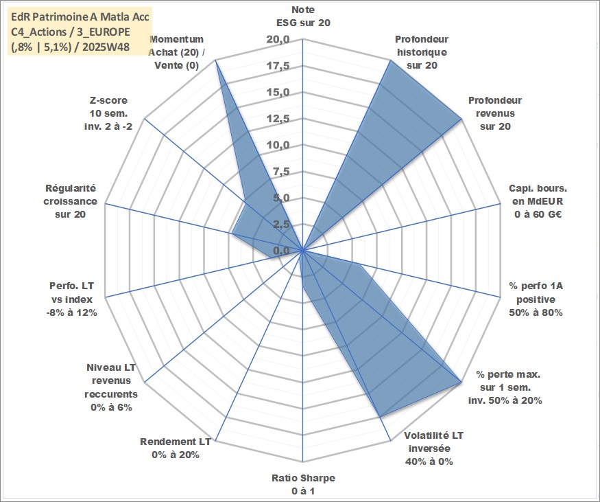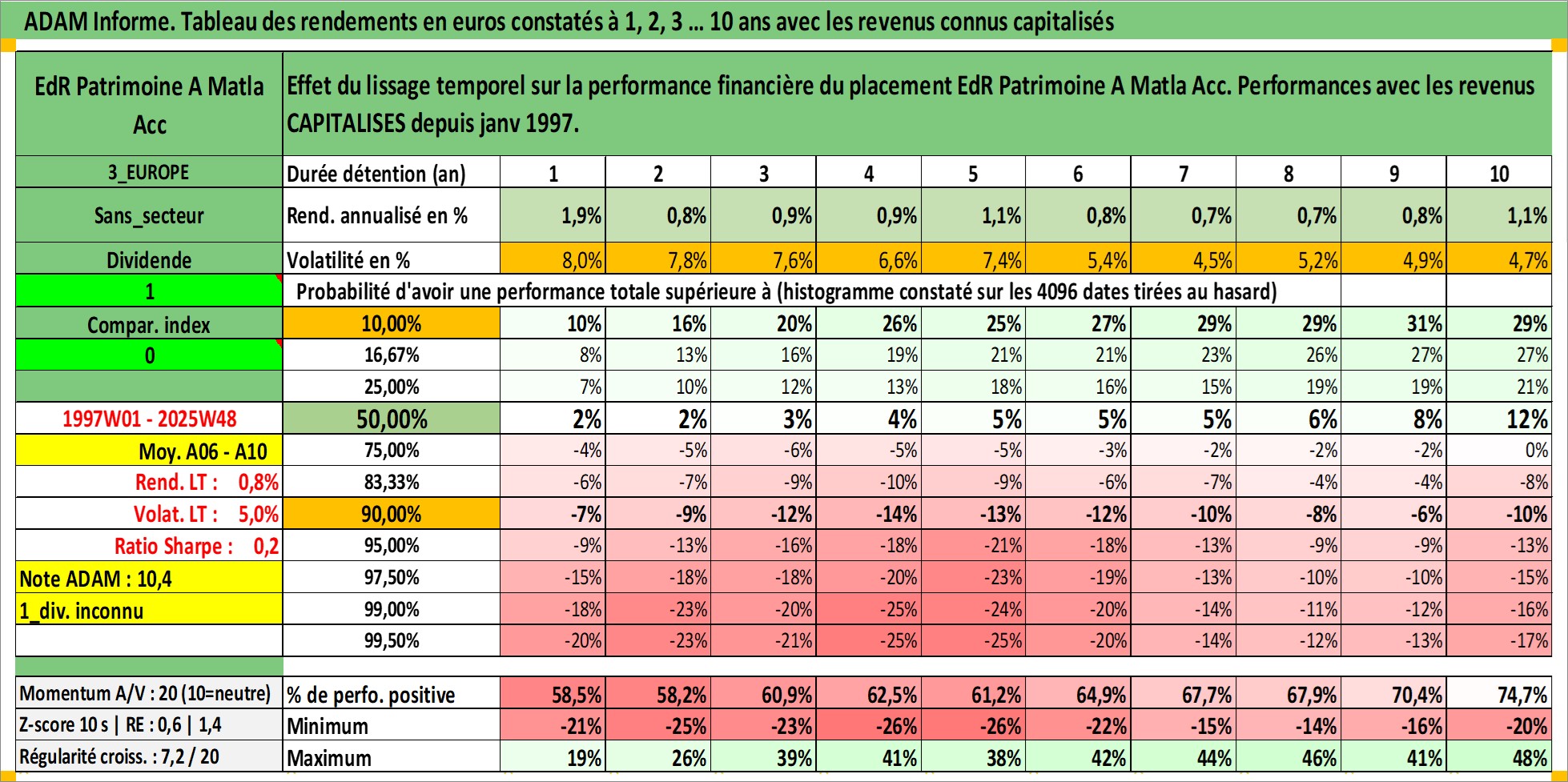 Site dédié aux investisseursPage dédiée sur site financeAnalyse des valorisations hebdomadaires du fonds EdR Patrimoine A Matla Acc. Cet actif est cote en EUR. Les valorisations couvrent les semaines 1997W01 a 2025W48. Les revenus de cet actif financier sont pris en compte depuis la semaine 1997W01. La note ESG de cet actif n'est pas connue.
