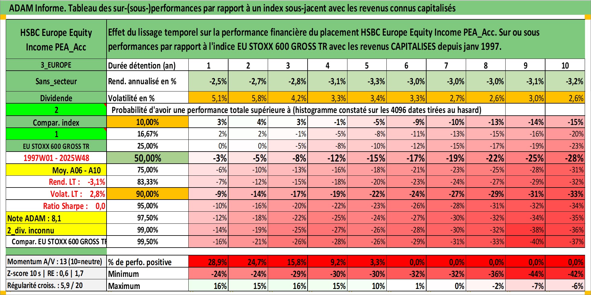 Site dédié aux investisseursPage dédiée sur site financeAnalyse des valorisations hebdomadaires du fonds HSBC Europe Equity Income PEA_Acc. Cet actif est cote en EUR. Les valorisations couvrent les semaines 1997W01 a 2025W48. Les revenus de cet actif financier sont pris en compte depuis la semaine 1997W01. La note ESG de cet actif n'est pas connue.