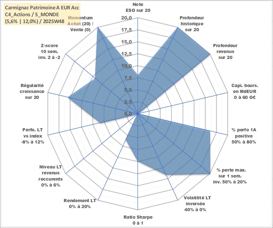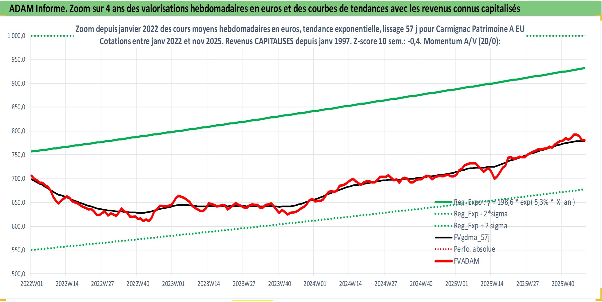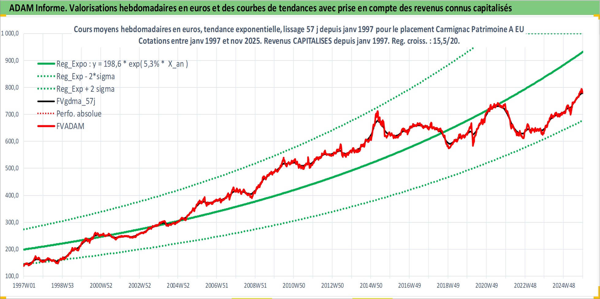 Site dédié aux investisseursPage dédiée sur site financeAnalyse des valorisations hebdomadaires du fonds Carmignac Patrimoine A EUR Acc. Cet actif est cote en EUR. Les valorisations couvrent les semaines 1997W01 a 2025W48. Les revenus de cet actif financier sont pris en compte depuis la semaine 1997W01. La note globale ESG de cet actif est estimee a 8.0 (apres rebasage entre 0 et 20).