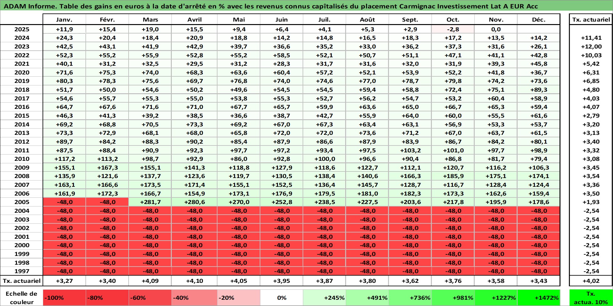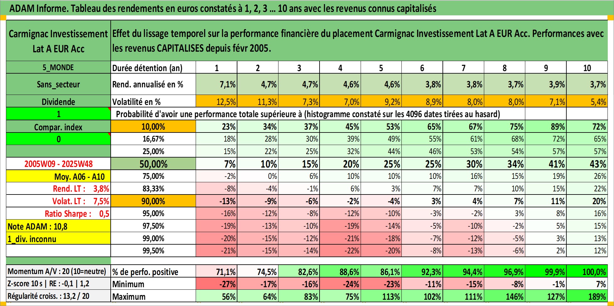 Dernière perfo 10 ans en %