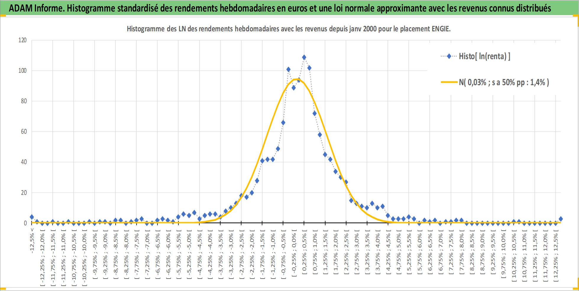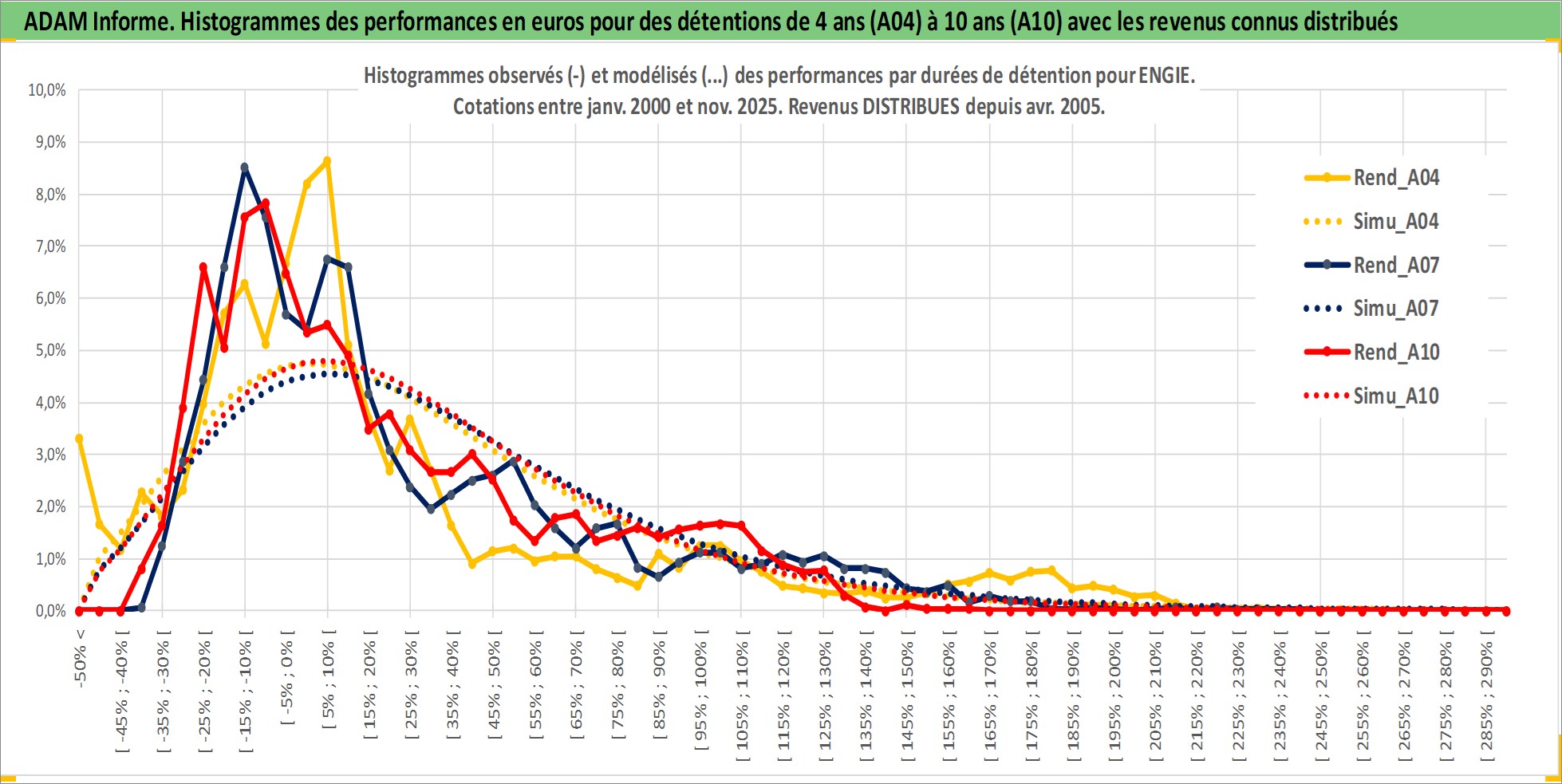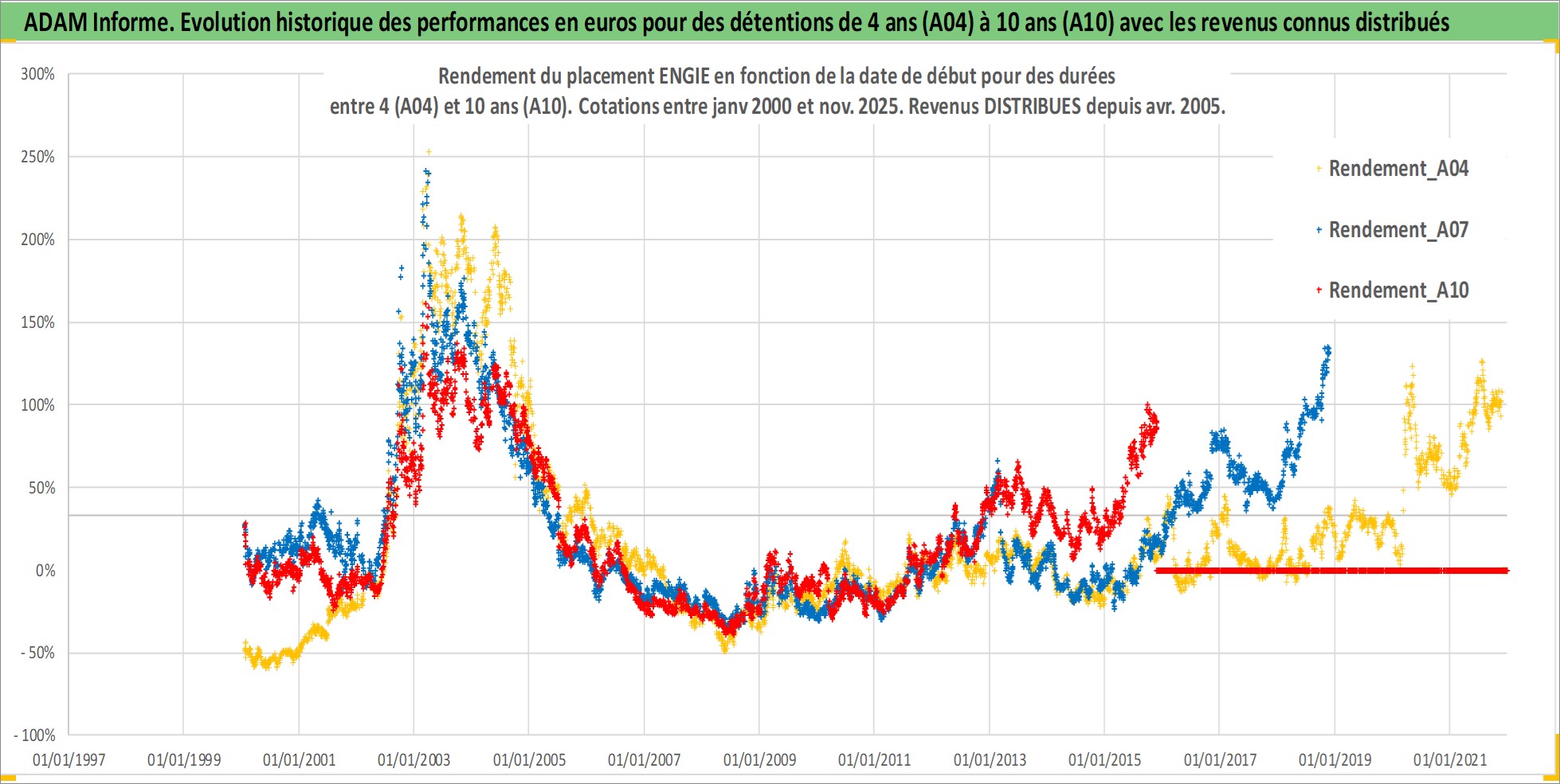 Site dédié aux investisseursPage dédiée sur site financeAnalyse des valorisations hebdomadaires de l'action ENGIE. Cet actif est cote en EUR. Les valorisations couvrent les semaines 2000W01 a 2025W48. Les revenus de cet actif financier sont pris en compte depuis la semaine 2005W14. La note globale ESG de cet actif est estimee a 6.0 (apres rebasage entre 0 et 20).