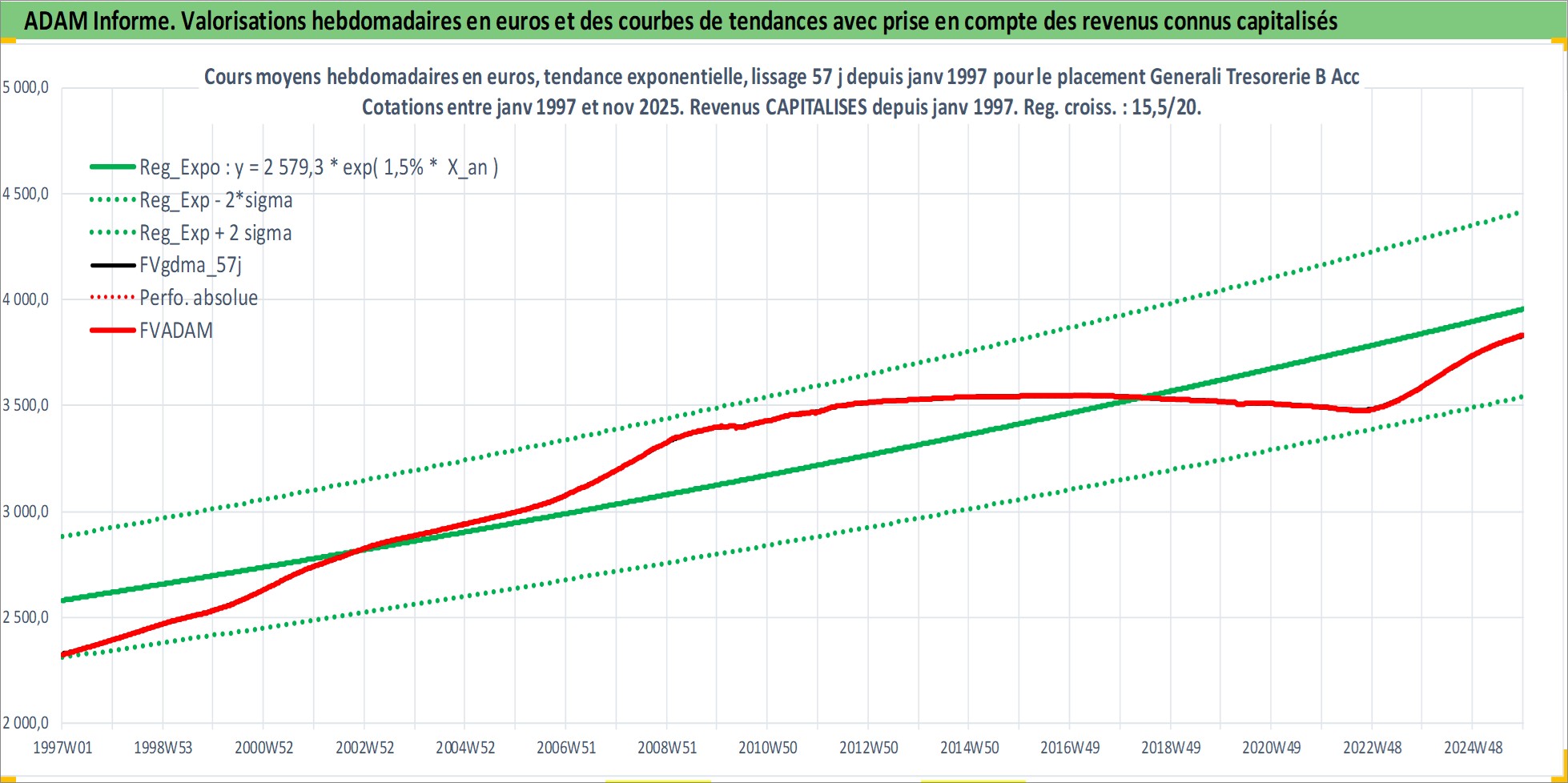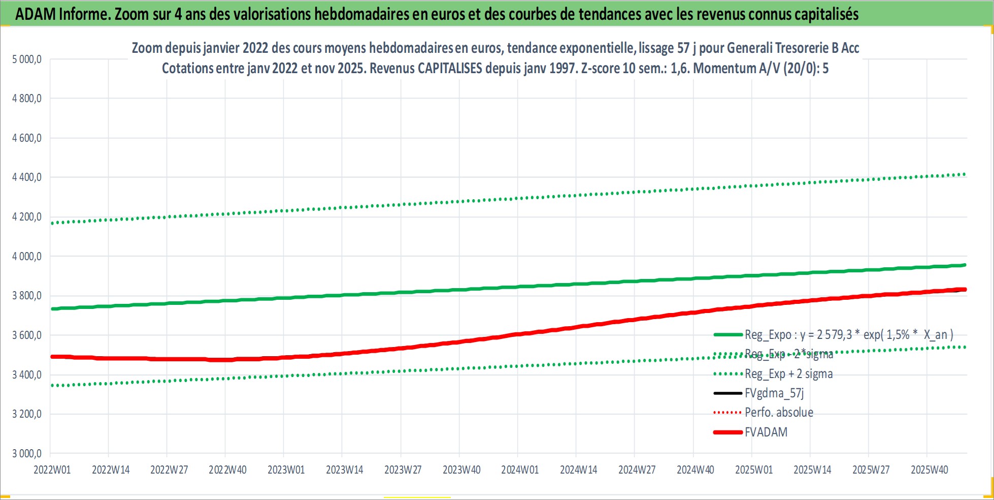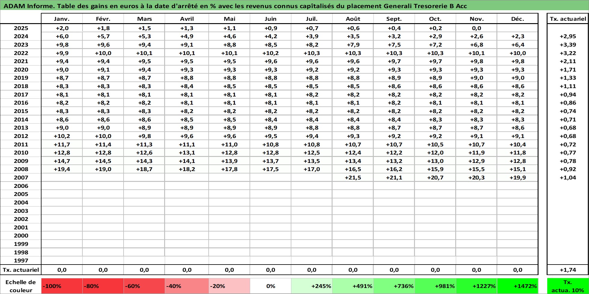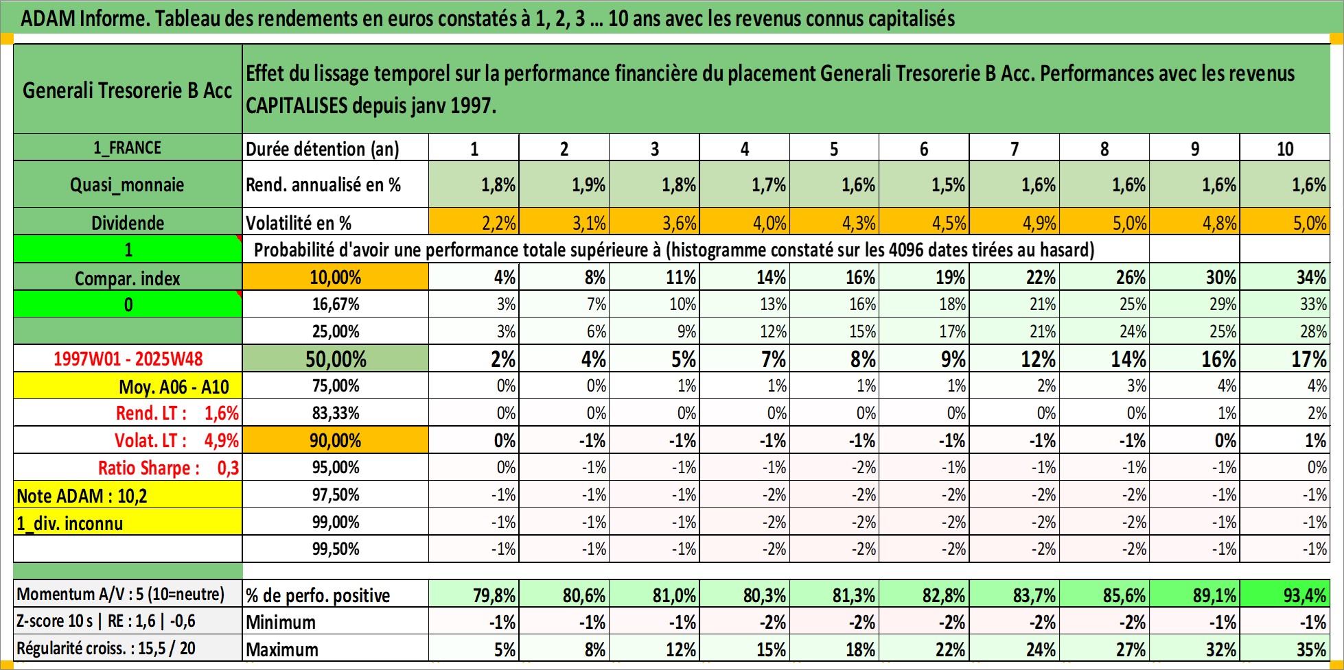 Site dédié aux investisseursPage dédiée sur site financeAnalyse des valorisations hebdomadaires du fonds Generali Tresorerie B Acc. Cet actif est cote en EUR. Les valorisations couvrent les semaines 1997W01 a 2025W48. Les revenus de cet actif financier sont pris en compte depuis la semaine 1997W01. La note ESG de cet actif n'est pas connue.