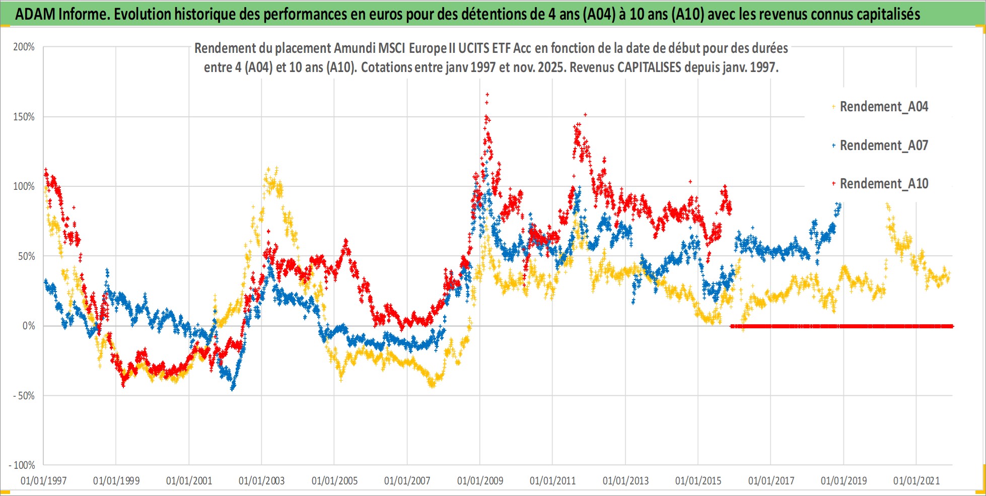 Site dédié aux investisseursPage dédiée sur site financeAnalyse des valorisations hebdomadaires du fonds Amundi MSCI Europe II UCITS ETF Acc. Cet actif est cote en EUR. Les valorisations couvrent les semaines 1997W01 a 2025W48. Les revenus de cet actif financier sont pris en compte depuis la semaine 1997W01. La note ESG de cet actif n'est pas connue.