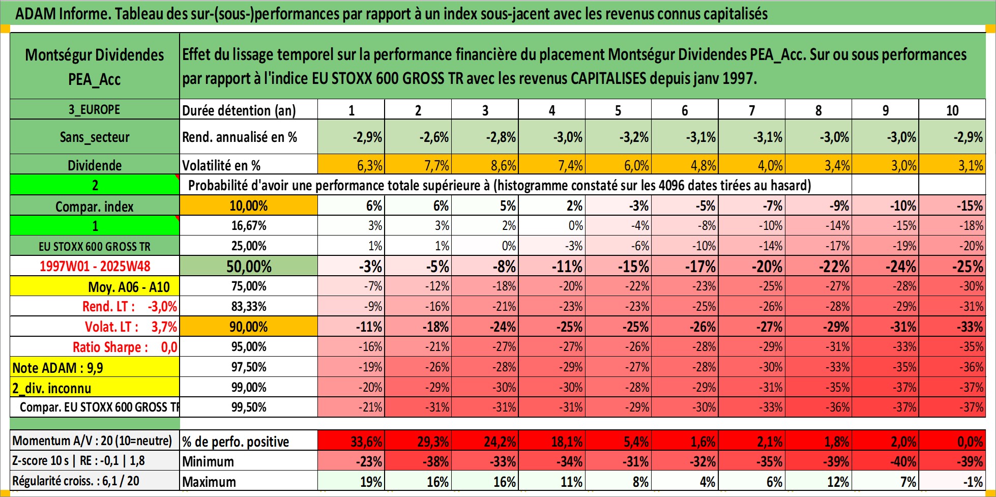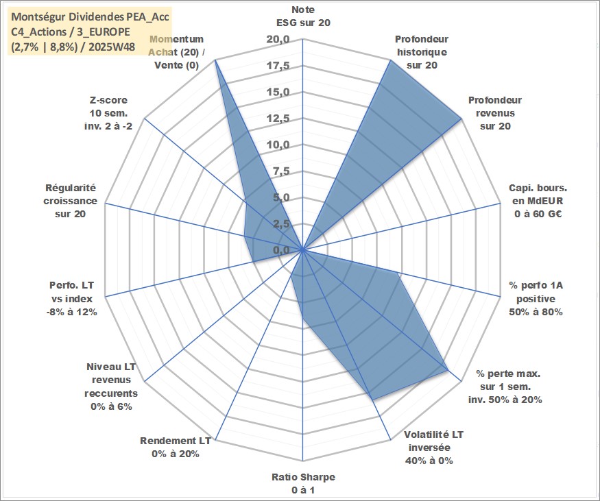 Site dédié aux investisseursPage dédiée sur site financeAnalyse des valorisations hebdomadaires du fonds Montségur Dividendes PEA_Acc. Cet actif est cote en EUR. Les valorisations couvrent les semaines 1997W01 a 2025W48. Les revenus de cet actif financier sont pris en compte depuis la semaine 1997W01. La note ESG de cet actif n'est pas connue.