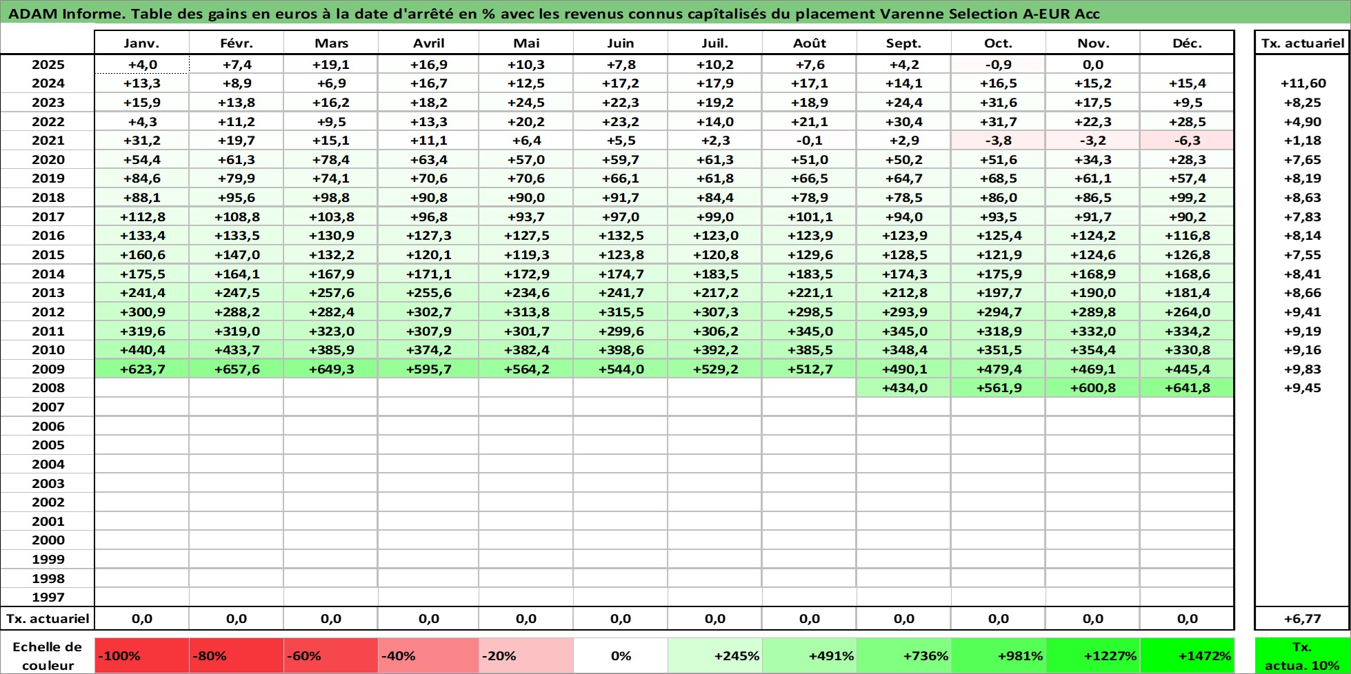 Dernière perfo 10 ans en %