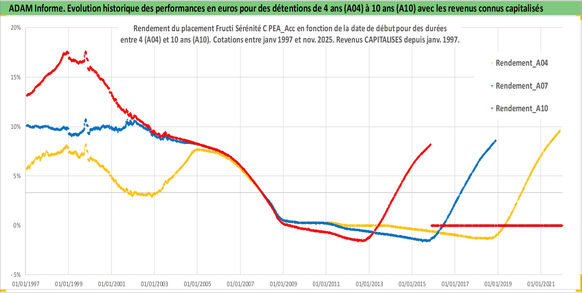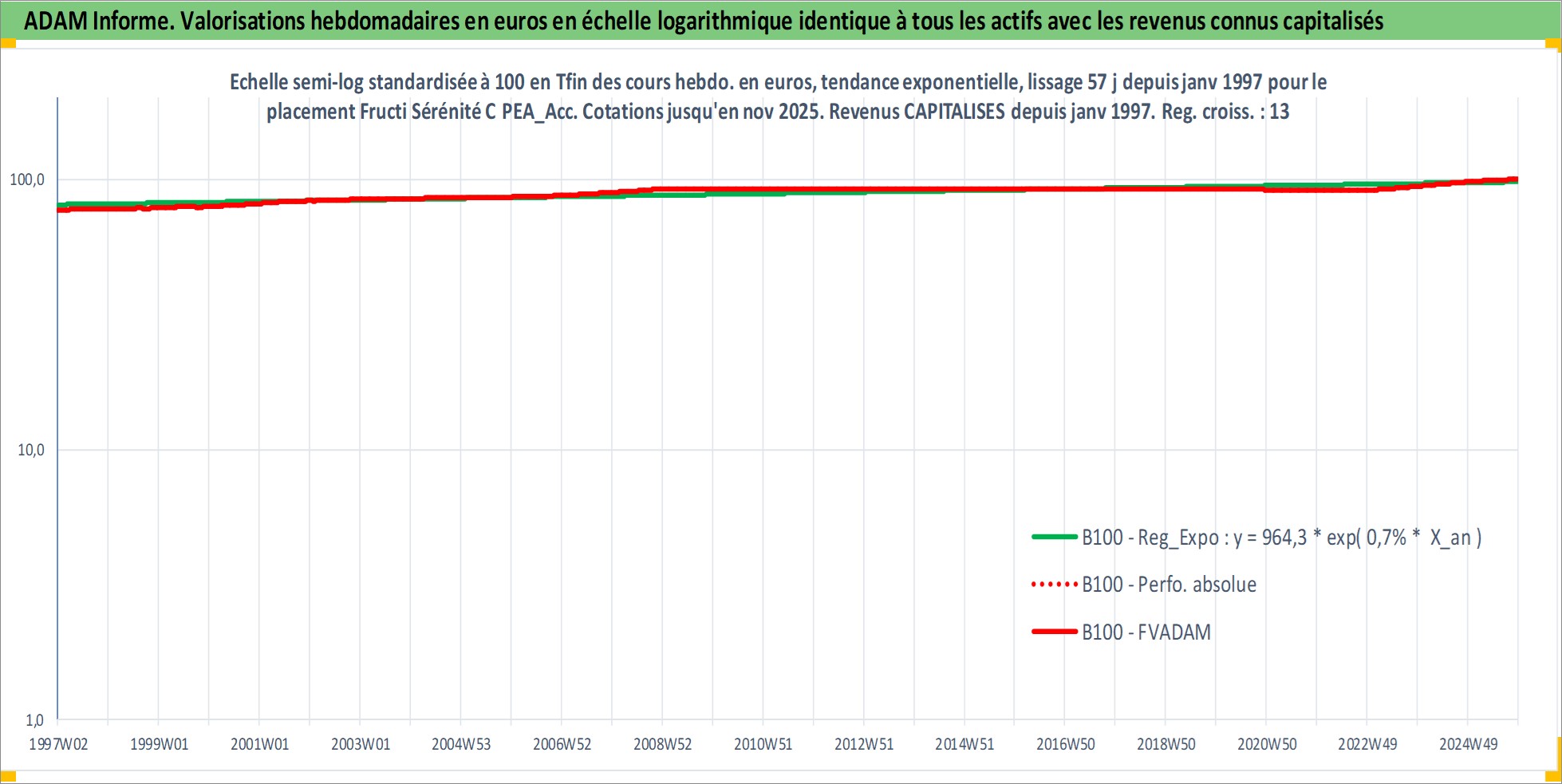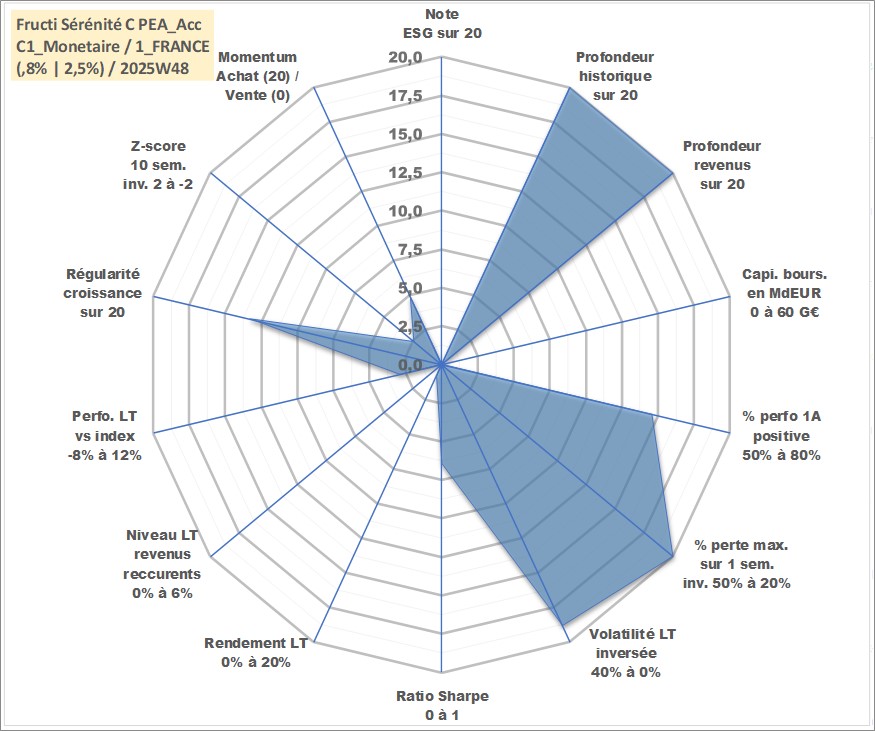 Site dédié aux investisseursPage dédiée sur site financeAnalyse des valorisations hebdomadaires du fonds Fructi Sérénité C PEA_Acc. Cet actif est cote en EUR. Les valorisations couvrent les semaines 1997W01 a 2025W48. Les revenus de cet actif financier sont pris en compte depuis la semaine 1997W01. La note ESG de cet actif n'est pas connue.