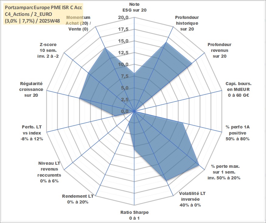 Site dédié aux investisseursPage dédiée sur site financeAnalyse des valorisations hebdomadaires du fonds Portzamparc Europe PME ISR C Acc. Cet actif est cote en EUR. Les valorisations couvrent les semaines 2002W47 a 2025W48. Les revenus de cet actif financier sont pris en compte depuis la semaine 2002W47. La note globale ESG de cet actif est estimee a 8.0 (apres rebasage entre 0 et 20).