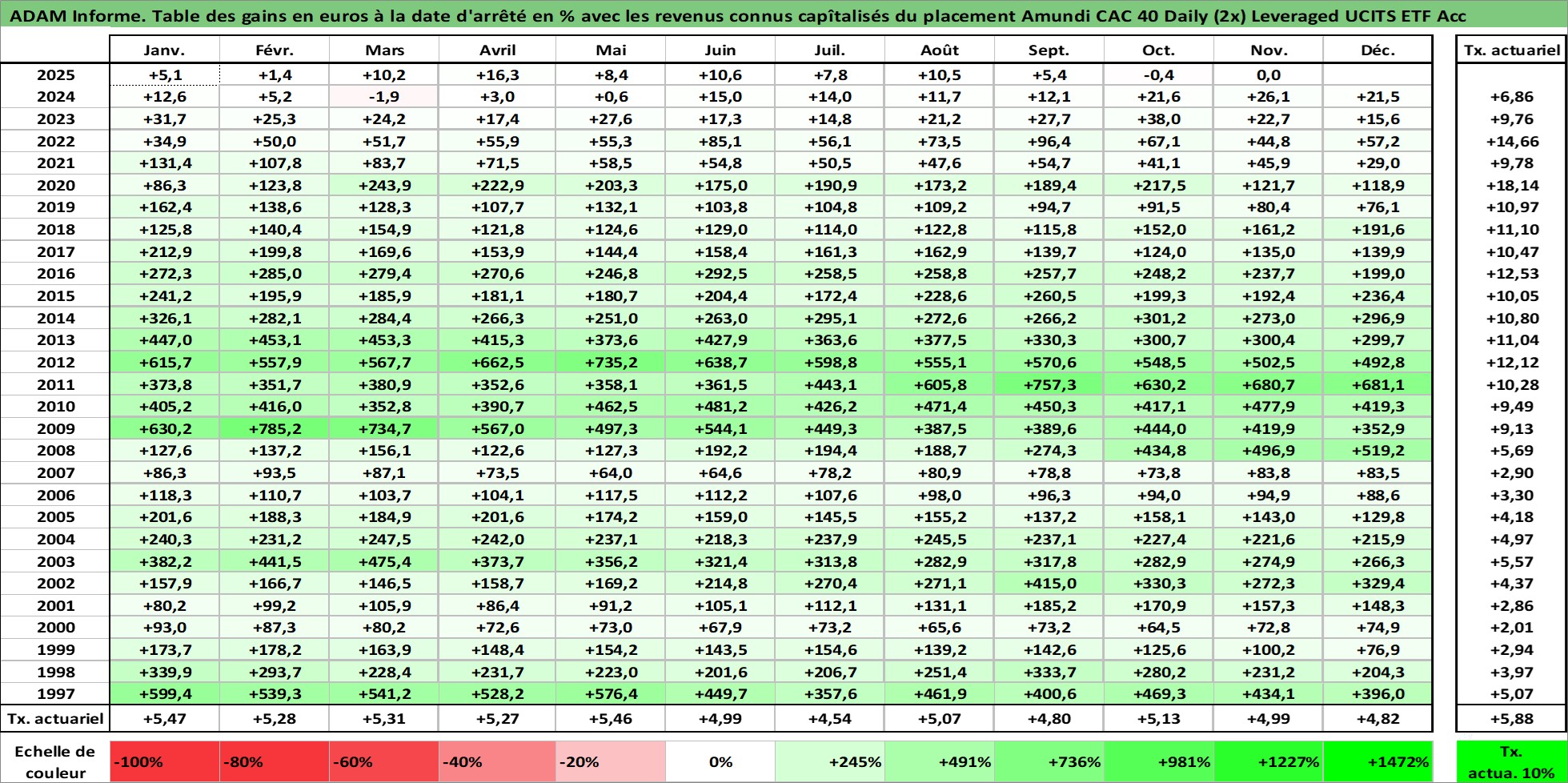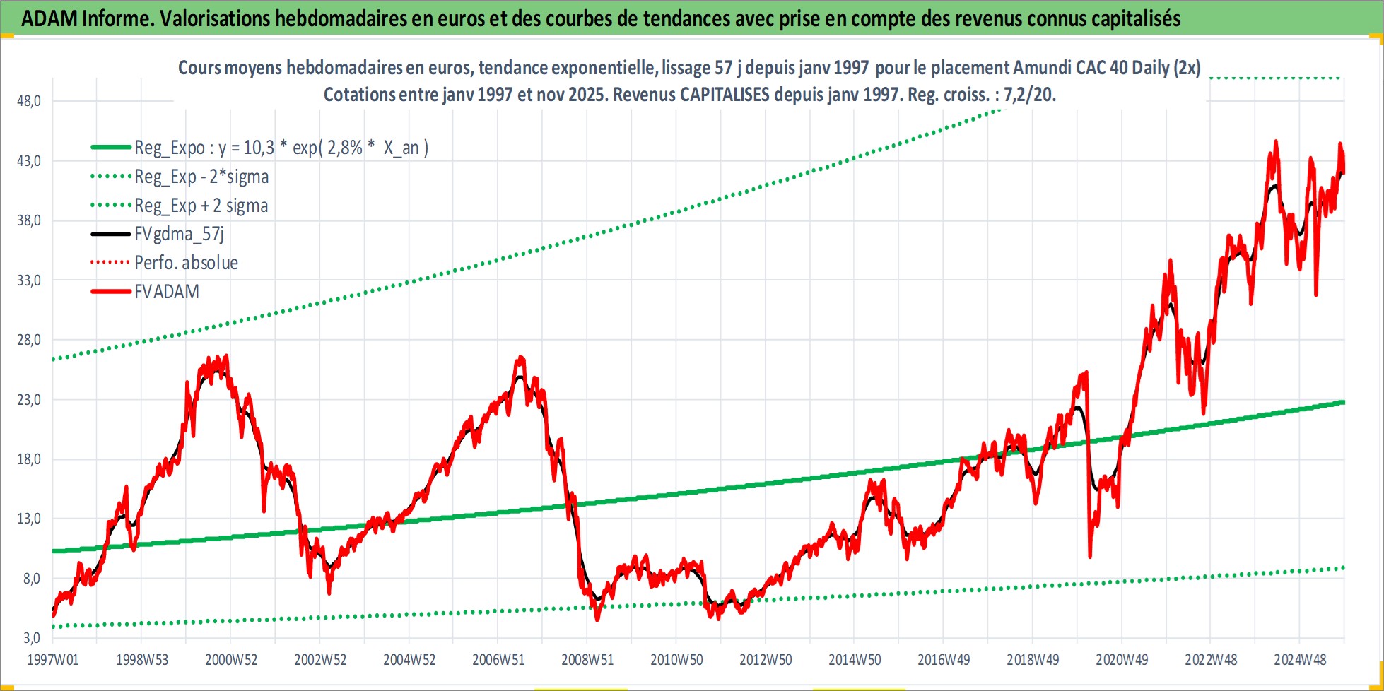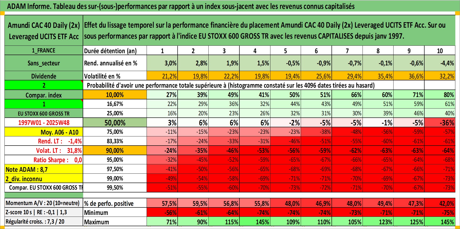Site dédié aux investisseursPage dédiée sur site financeAnalyse des valorisations hebdomadaires du fonds Amundi CAC 40 Daily (2x) Leveraged UCITS ETF Acc. Cet actif est cote en EUR. Les valorisations couvrent les semaines 1997W01 a 2025W48. Les revenus de cet actif financier sont pris en compte depuis la semaine 1997W01. La note ESG de cet actif n'est pas connue.