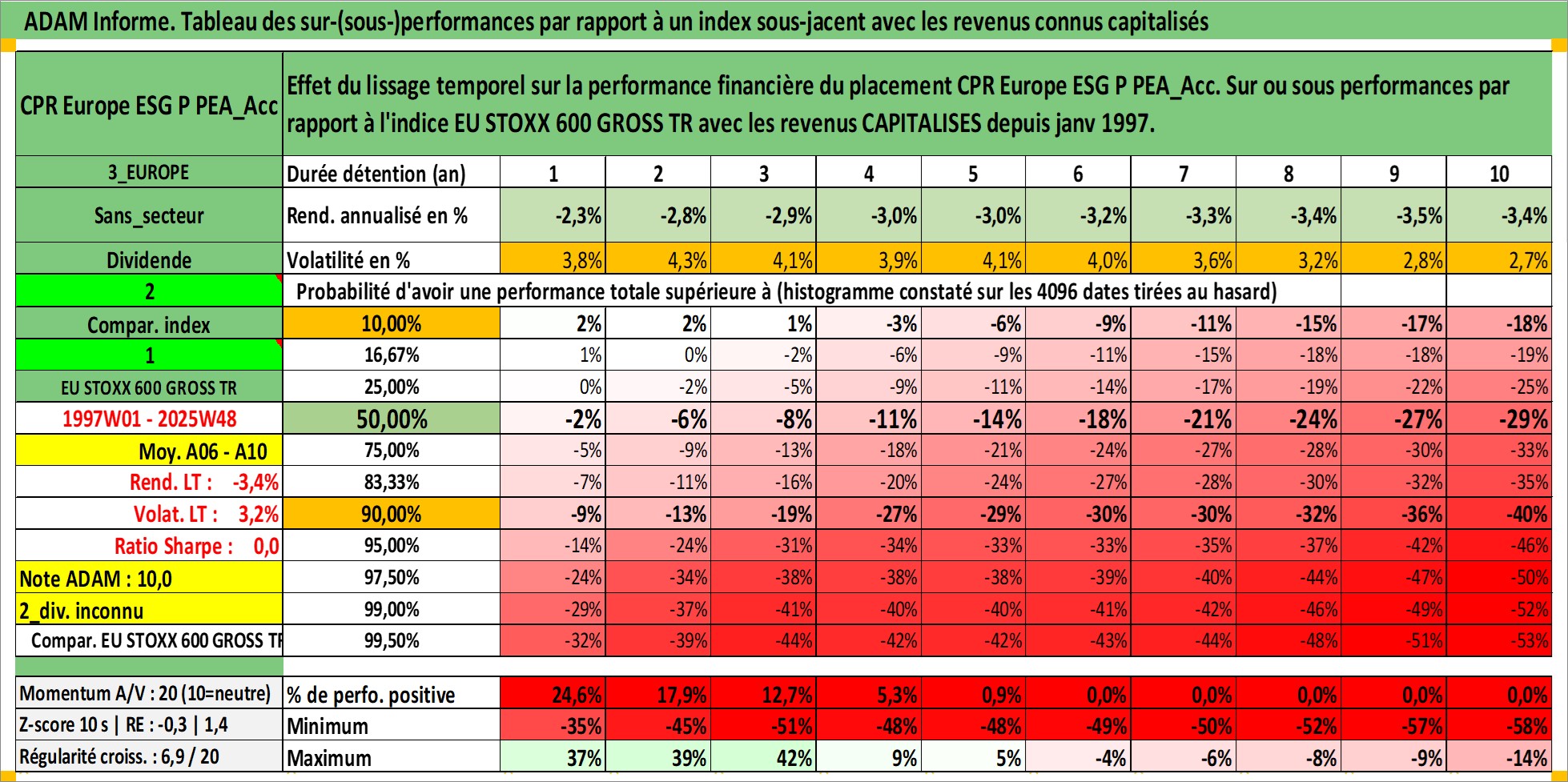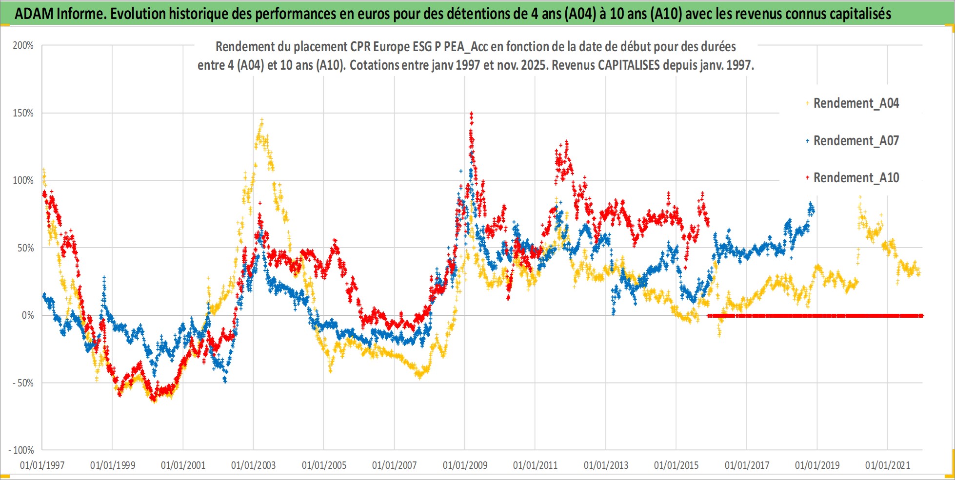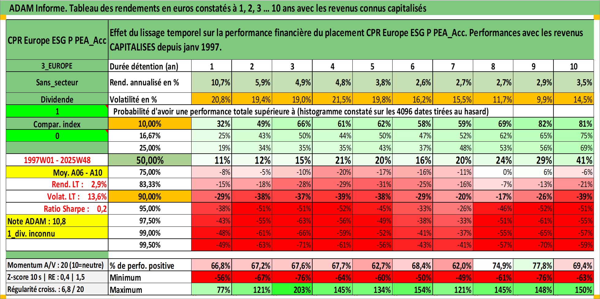 Site dédié aux investisseursPage dédiée sur site financeAnalyse des valorisations hebdomadaires du fonds CPR Europe ESG P PEA_Acc. Cet actif est cote en EUR. Les valorisations couvrent les semaines 1997W01 a 2025W48. Les revenus de cet actif financier sont pris en compte depuis la semaine 1997W01. La note ESG de cet actif n'est pas connue.