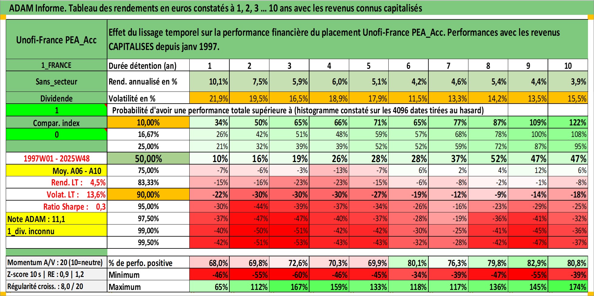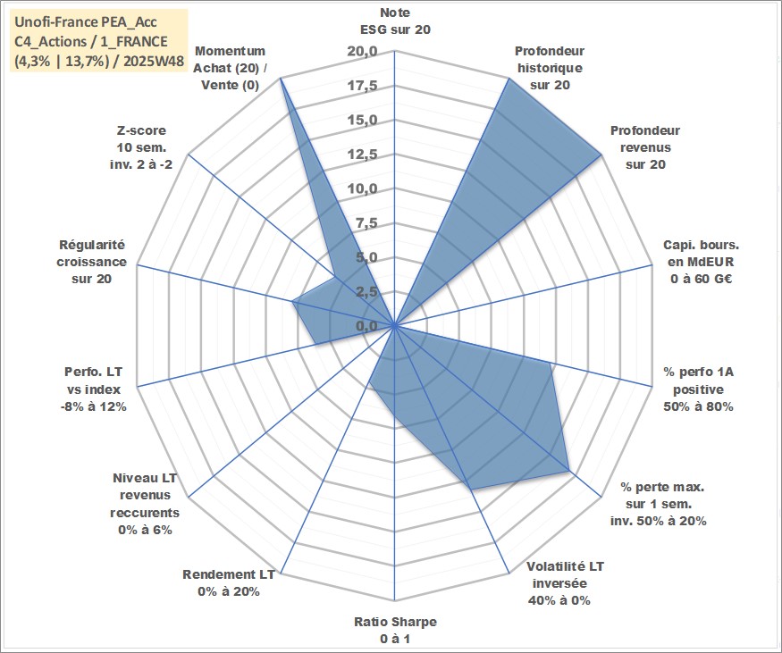 Site dédié aux investisseursPage dédiée sur site financeAnalyse des valorisations hebdomadaires du fonds Unofi-France PEA_Acc. Cet actif est cote en EUR. Les valorisations couvrent les semaines 1997W01 a 2025W48. Les revenus de cet actif financier sont pris en compte depuis la semaine 1997W01. La note ESG de cet actif n'est pas connue.