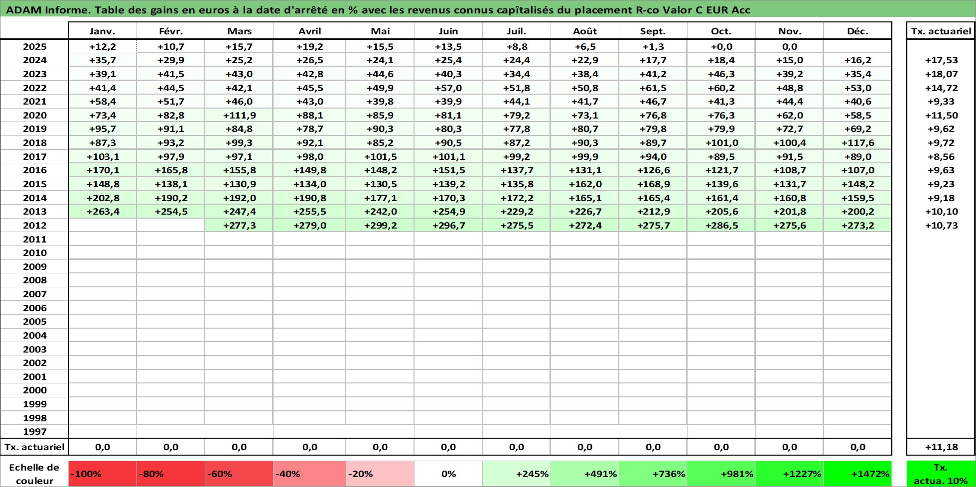 Site dédié aux investisseursPage dédiée sur site financeAnalyse des valorisations hebdomadaires du fonds R-co Valor C EUR Acc. Cet actif est cote en EUR. Les valorisations couvrent les semaines 1997W01 a 2025W48. Les revenus de cet actif financier sont pris en compte depuis la semaine 1997W01. La note ESG de cet actif n'est pas connue.