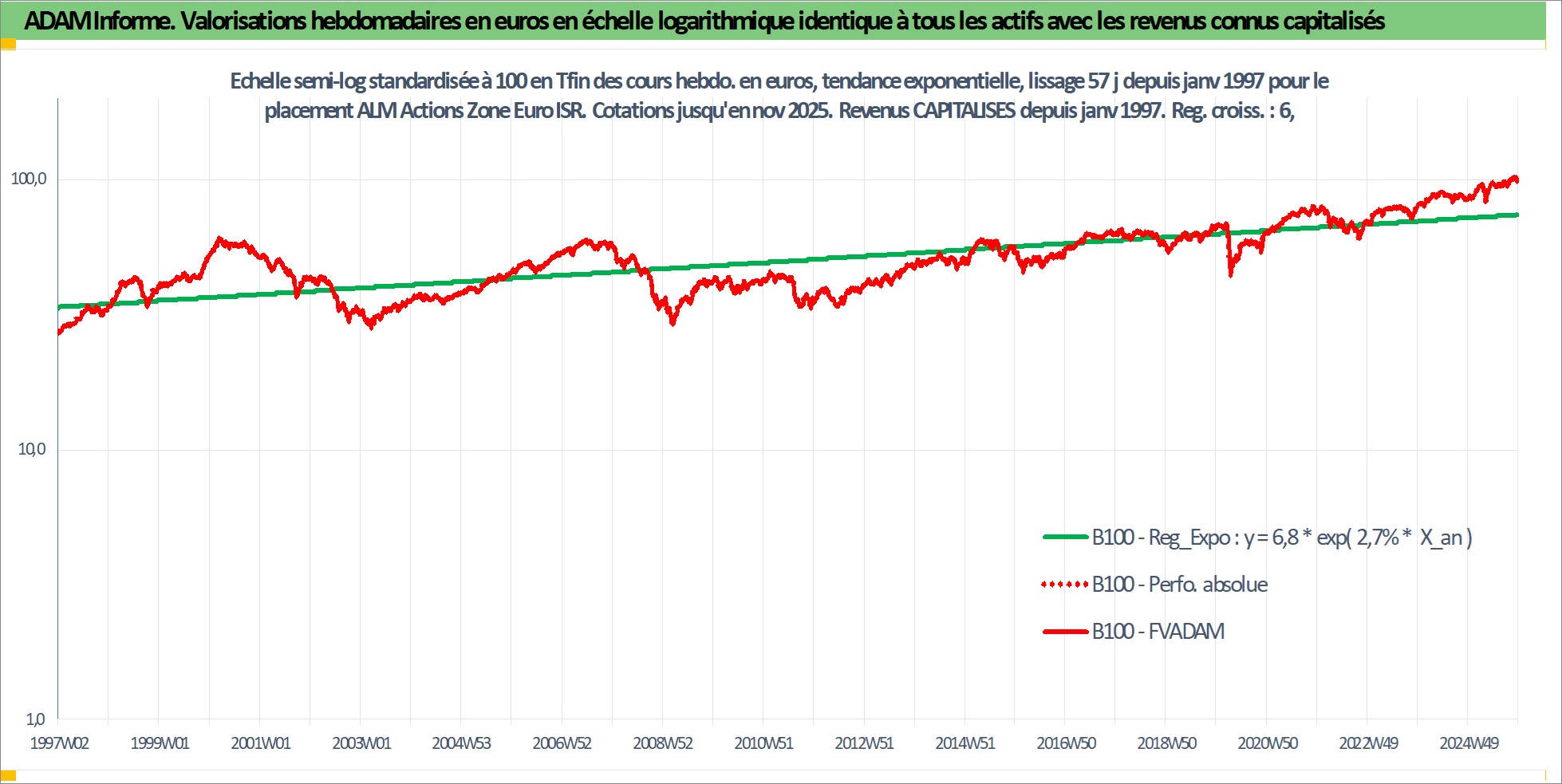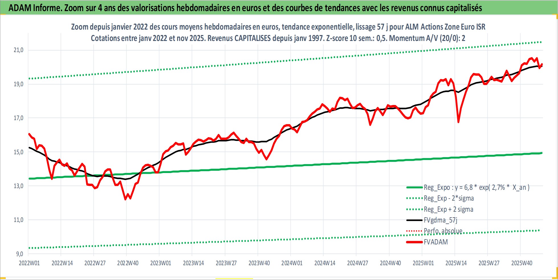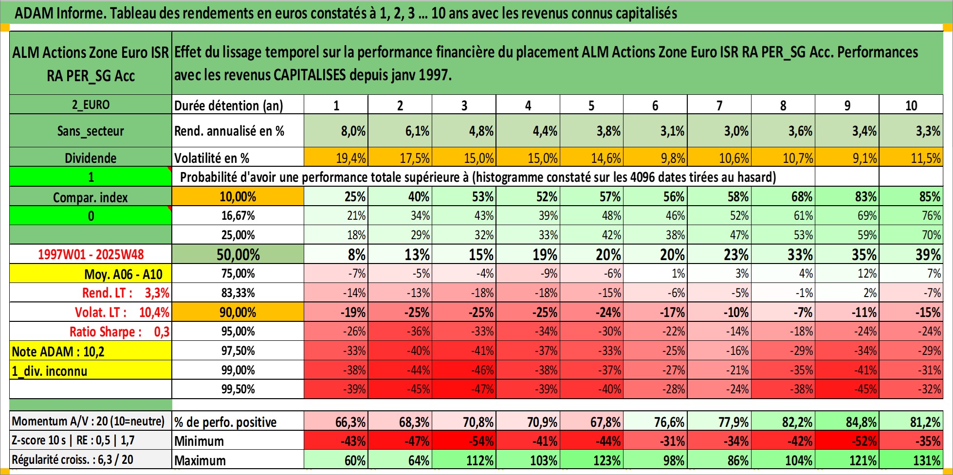 Site dédié aux investisseursPage dédiée sur site financeAnalyse des valorisations hebdomadaires du fonds ALM Actions Zone Euro ISR RA PER_SG Acc. Cet actif est cote en EUR. Les valorisations couvrent les semaines 1997W01 a 2025W48. Les revenus de cet actif financier sont pris en compte depuis la semaine 1997W01. La note globale ESG de cet actif est estimee a 10.0 (apres rebasage entre 0 et 20).