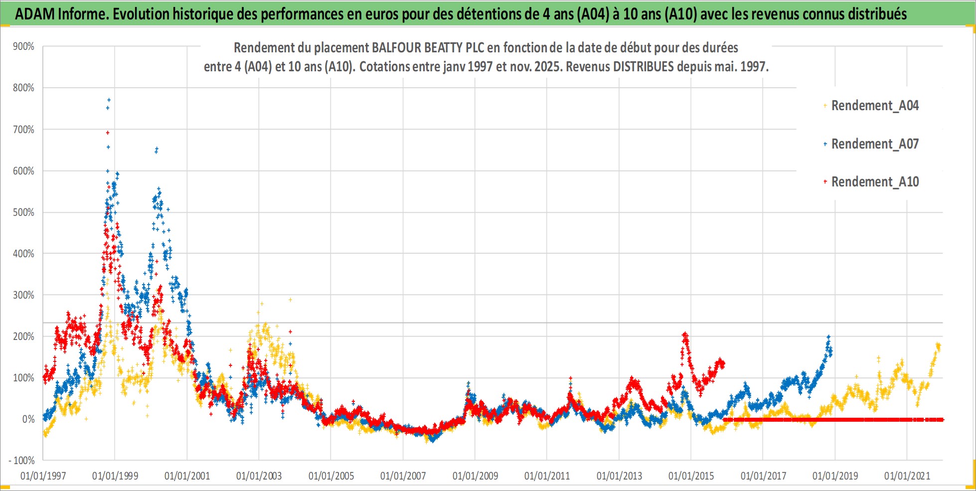 Site dédié aux investisseursPage dédiée sur site financeAnalyse des valorisations hebdomadaires de l'action BALFOUR BEATTY PLC. Cet actif est cote en GBX. Les valorisations sont en contrevaleur EURO et couvrent les semaines 1997W01 a 2025W48. Les revenus de cet actif financier sont pris en compte depuis la semaine 1997W19. La note ESG de cet actif n'est pas connue.