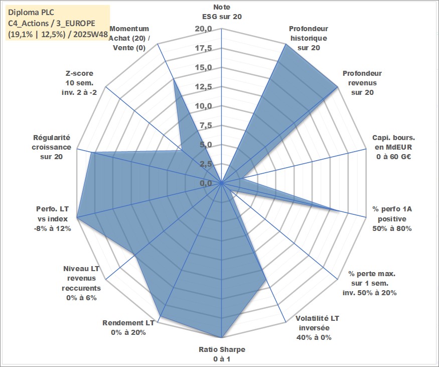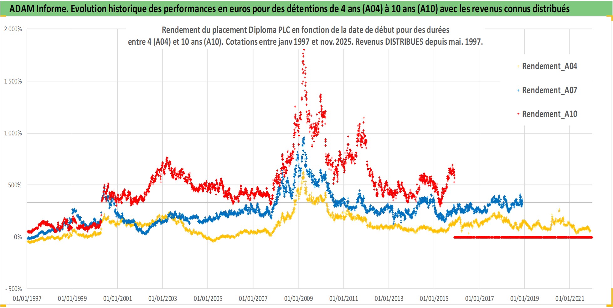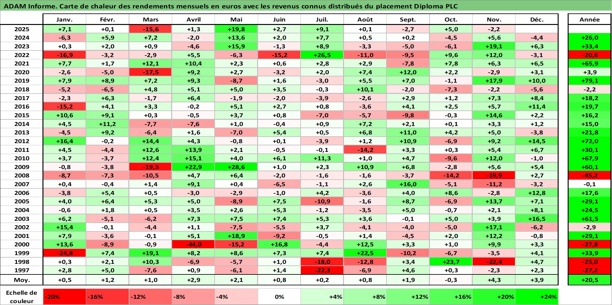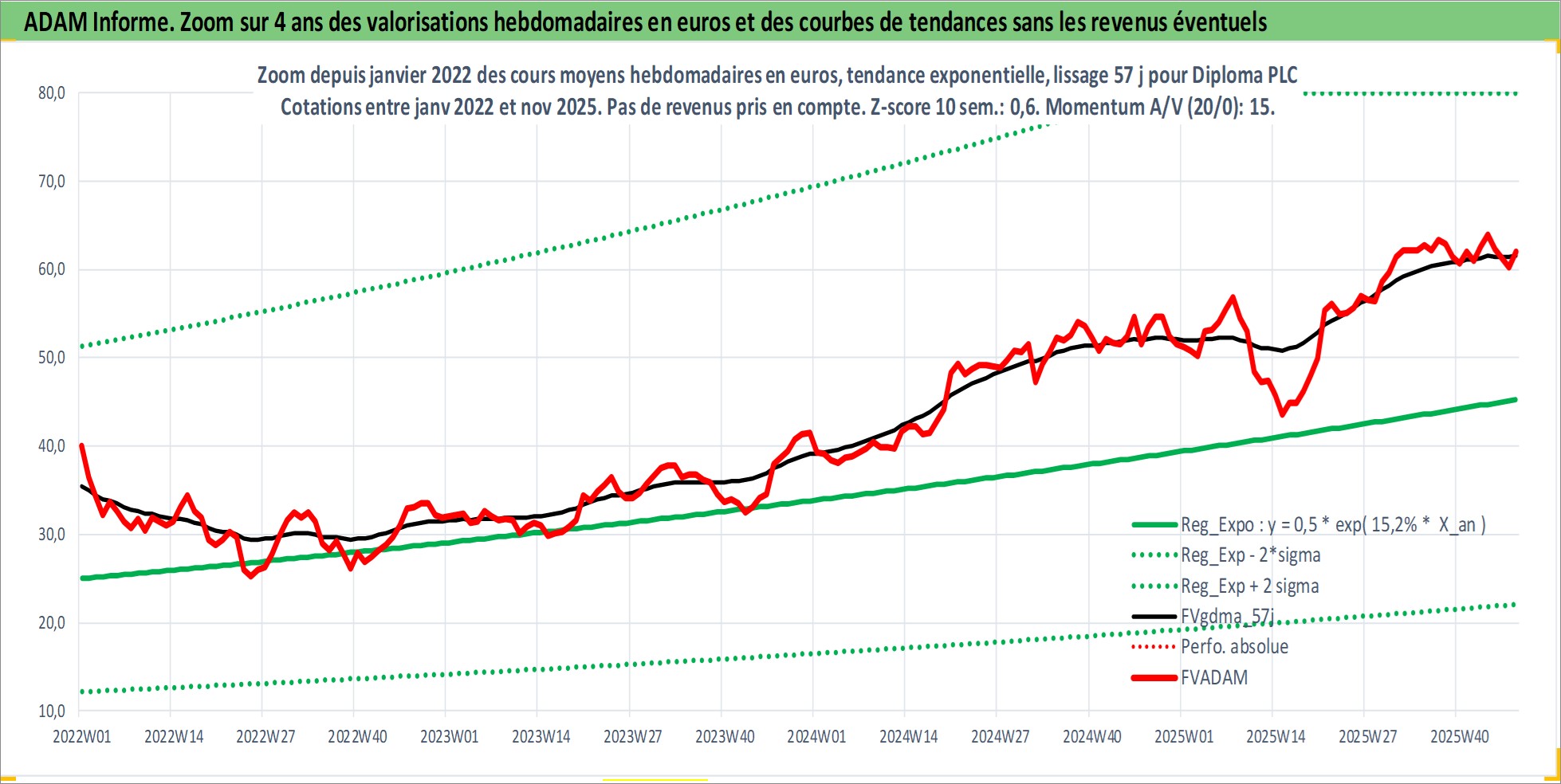 Site dédié aux investisseursPage dédiée sur site financeAnalyse des valorisations hebdomadaires de l'action Diploma PLC. Cet actif est cote en GBX. Les valorisations sont en contrevaleur EURO et couvrent les semaines 1997W01 a 2025W48. Les revenus de cet actif financier sont pris en compte depuis la semaine 1997W21. La note ESG de cet actif n'est pas connue.