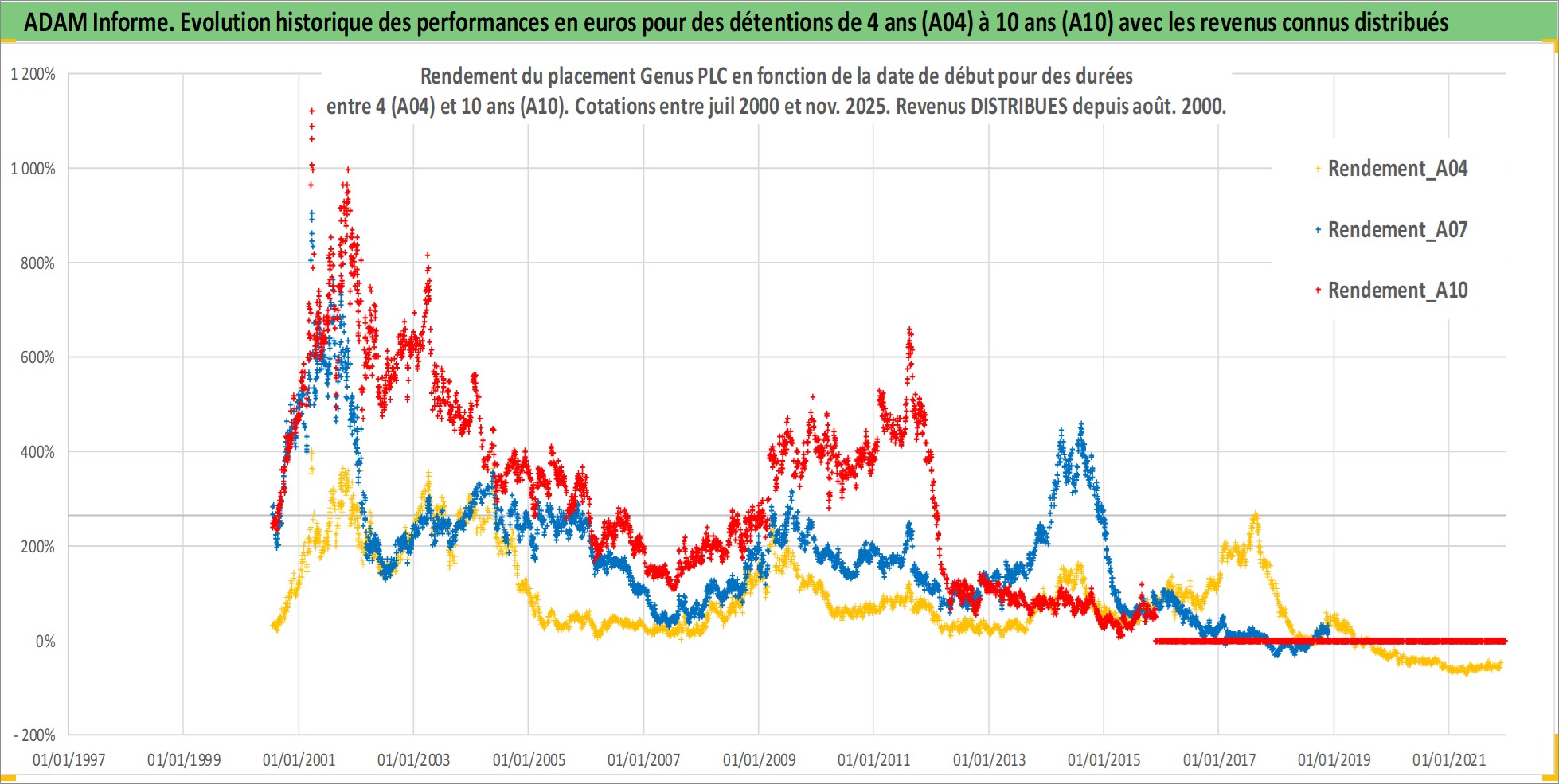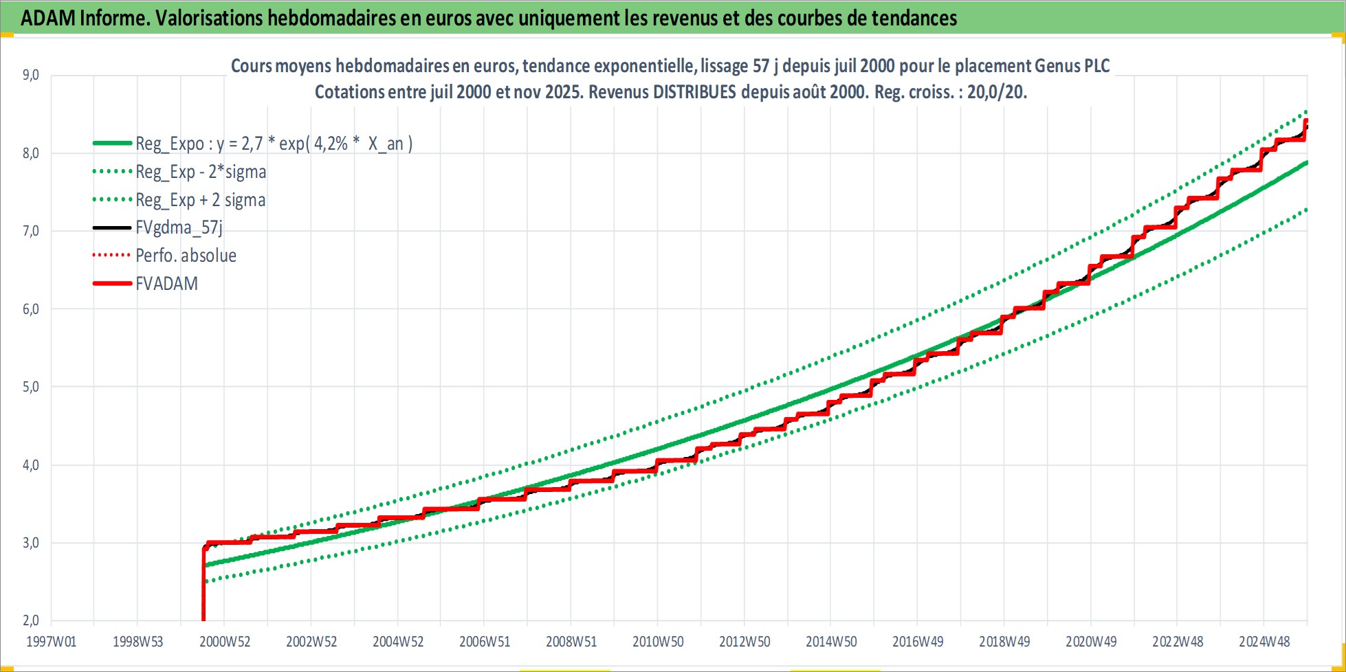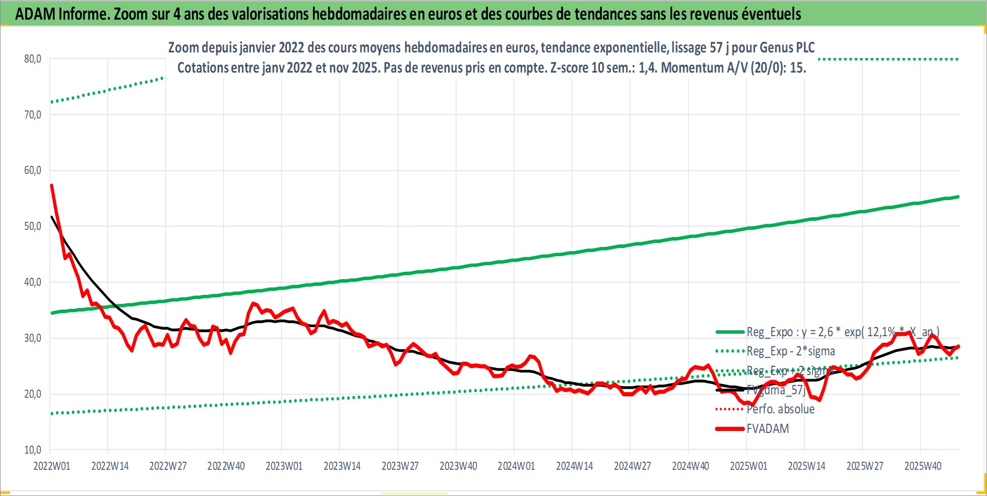 Site dédié aux investisseursPage dédiée sur site financeAnalyse des valorisations hebdomadaires de l'action Genus PLC. Cet actif est cote en GBX. Les valorisations sont en contrevaleur EURO et couvrent les semaines 2000W27 a 2025W48. Les revenus de cet actif financier sont pris en compte depuis la semaine 2000W32. La note ESG de cet actif n'est pas connue.